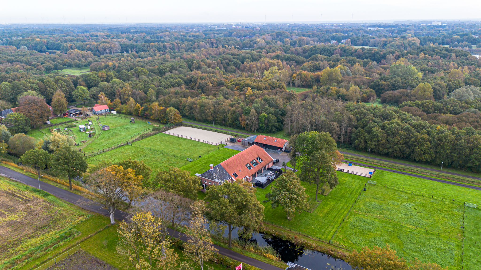 * 13528 m² eigen grond met weilanden, longeer- en paardenbak
