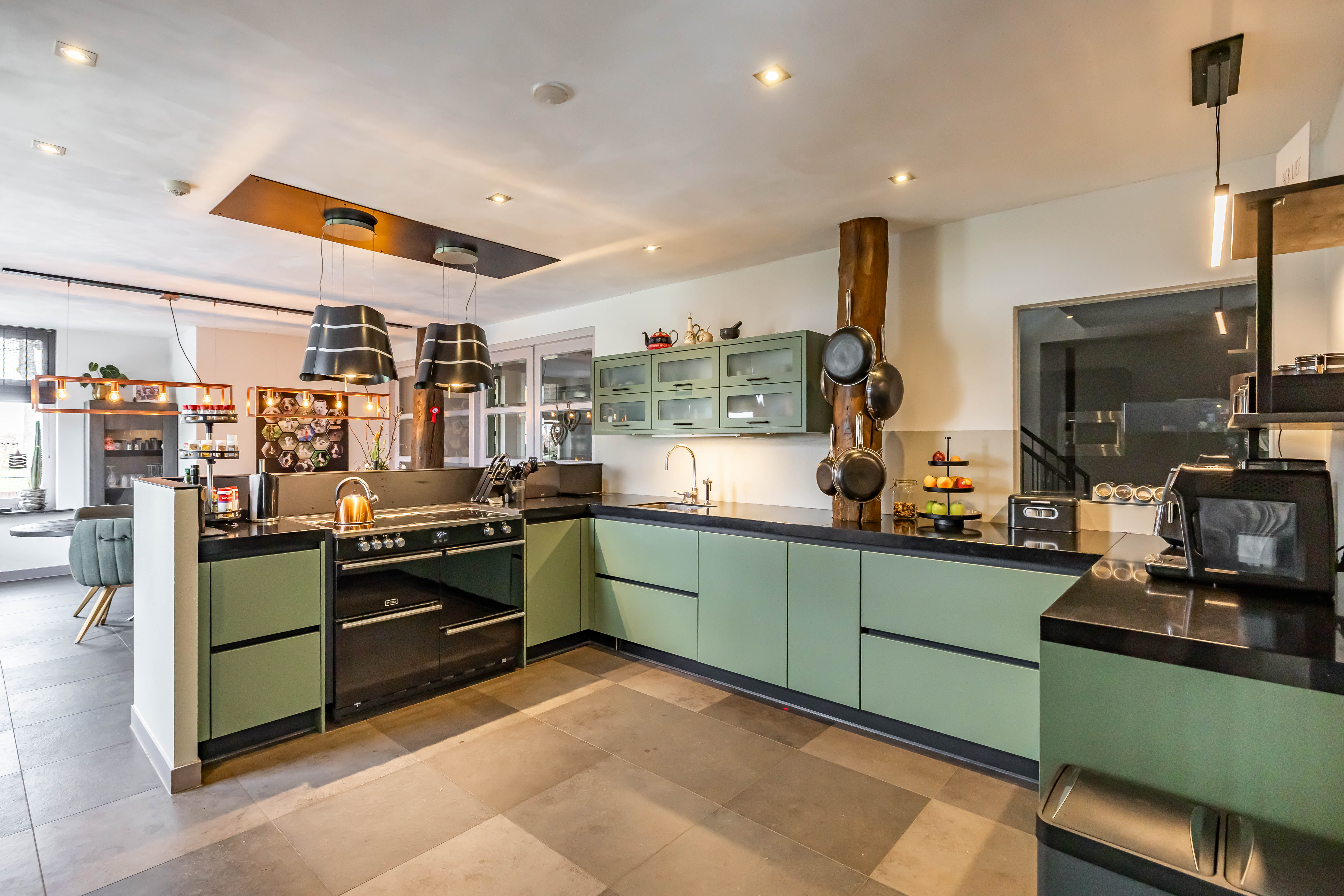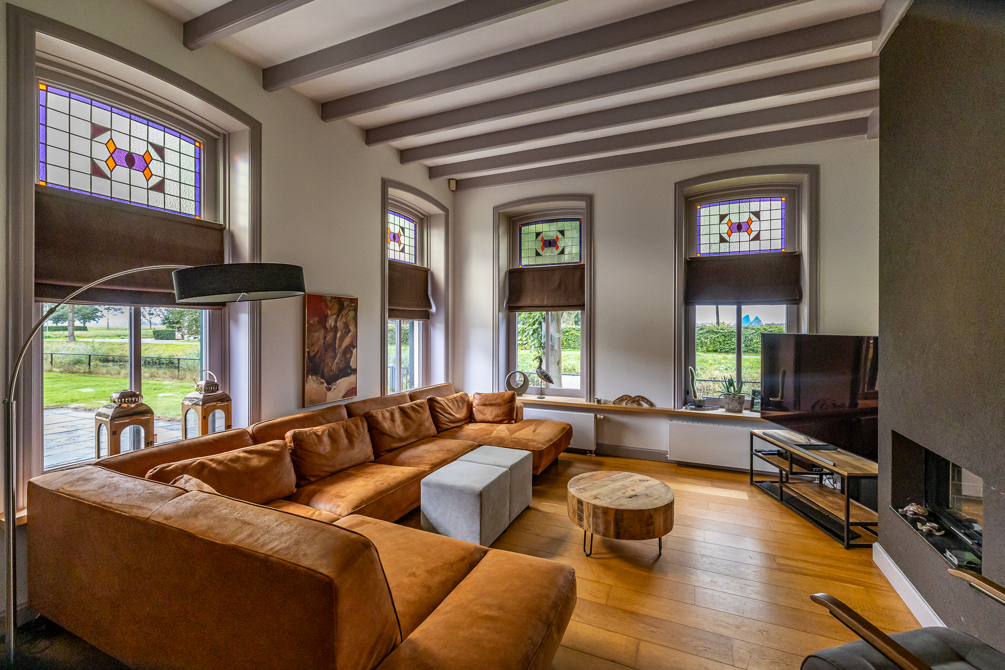 Het allermooiste van dit bijzondere huis is de heerlijke woonsfeer. Ieder lid van het gezin heeft zijn eigen slaap- en werkplek en er is een uitermate gezellige samenkomplek in de, prachtig verbouwde deel. Mooie gebinten sieren dit unieke vertrek.