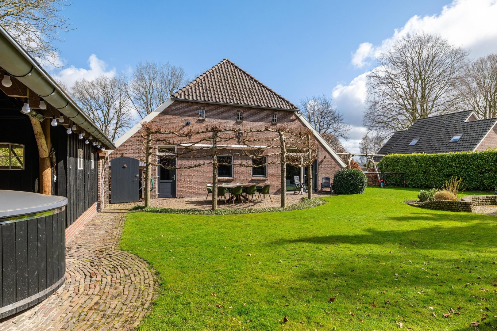 De bij deze woonboerderij behorende tuin is prettig groot maar beheersbaar in onderhoud er zijn meerdere terrassen voor zon en voor schaduw. De ultieme terugtrekplek is het mooie buitenverblijf. Hier kunt u tot in de late uurtjes genieten van al het moois om u heen. De grote schuur/garage met carport biedt heerlijk de ruimte om te klussen of voor ruimte vragende hobby’s. Boven de schuur bevindt zich een grote, goed te gebruiken zolder.