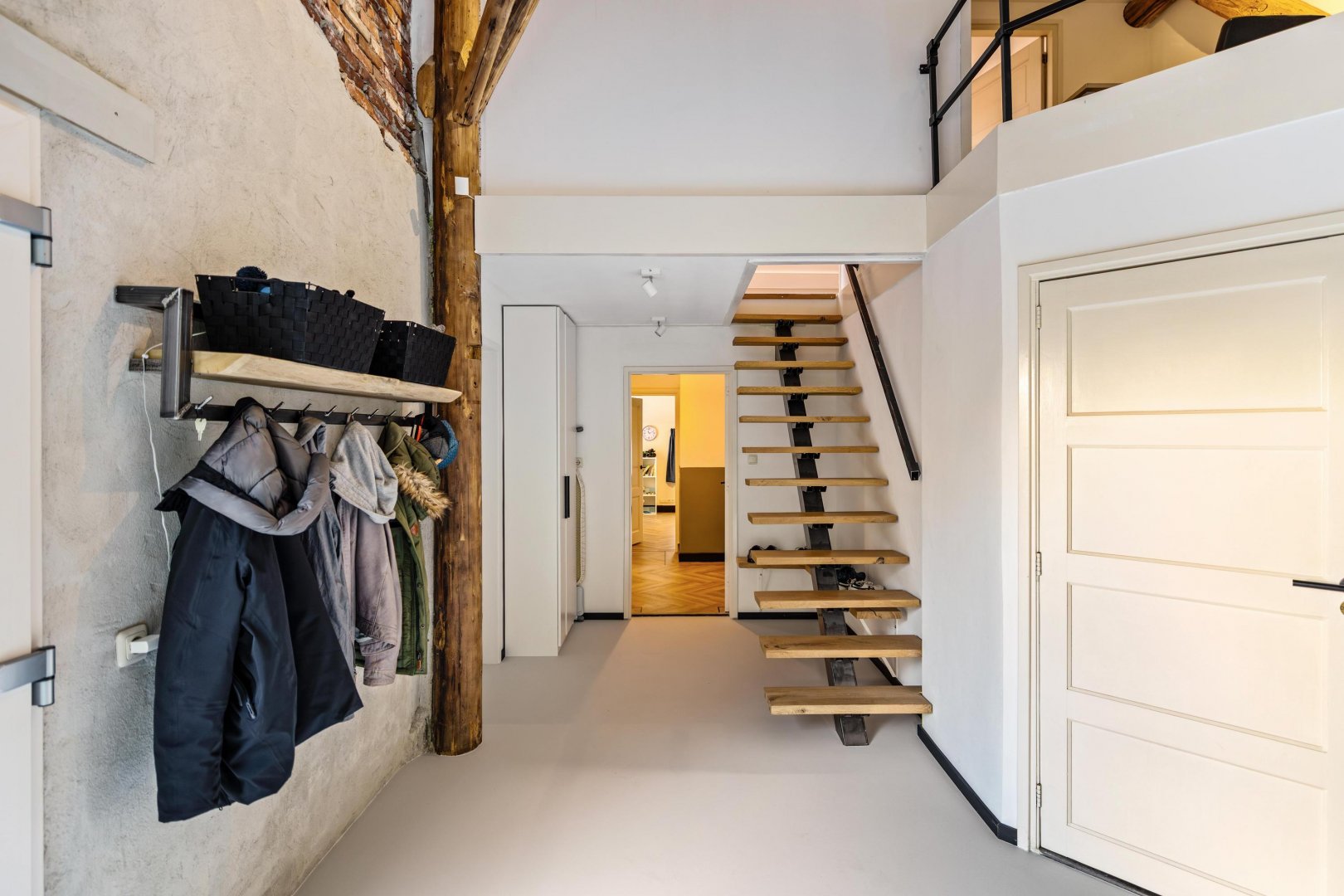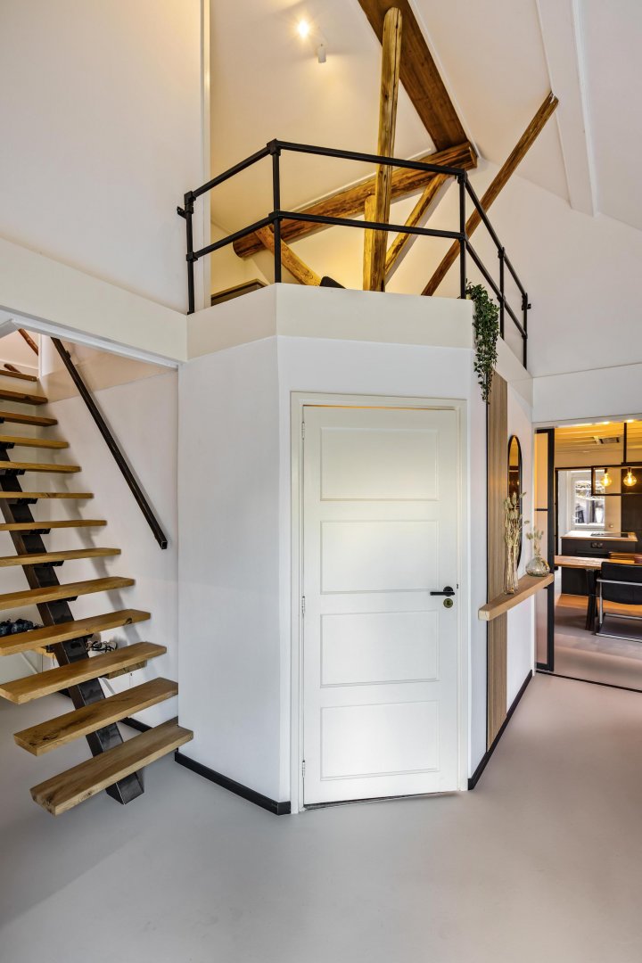 Via de trap bereikt u de vide met een studie/werkplek en toegang tot de bovenverdieping.