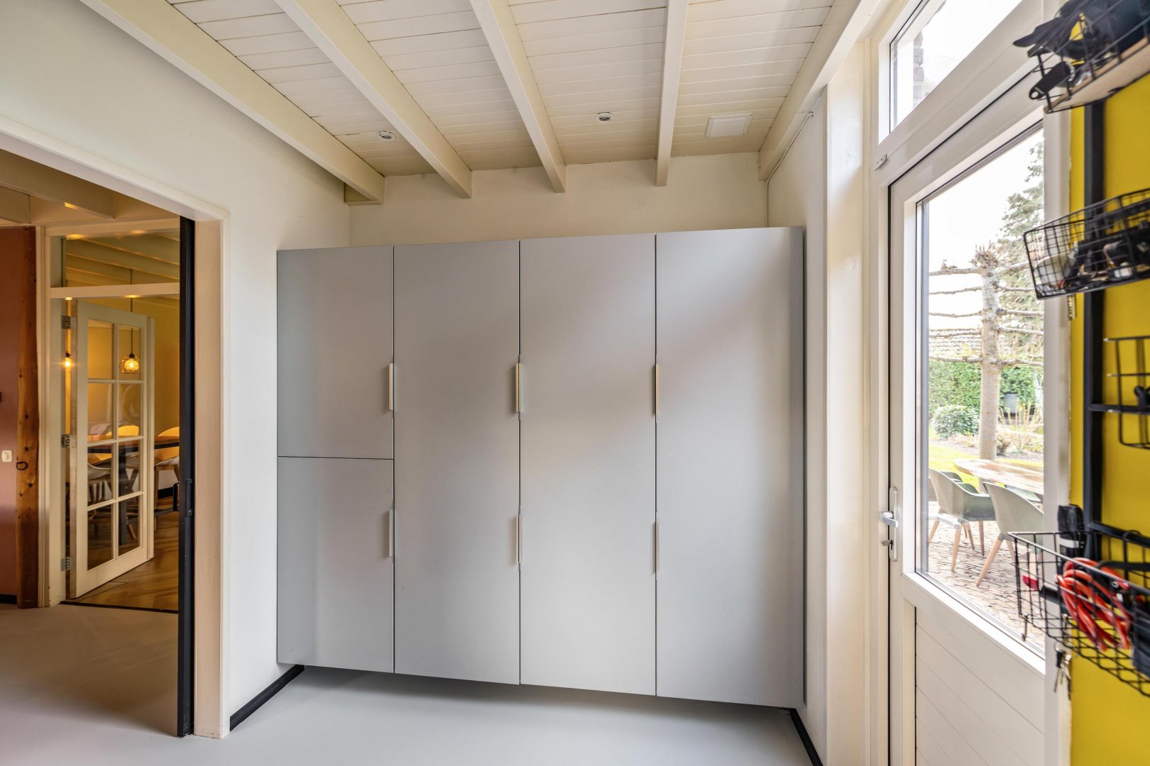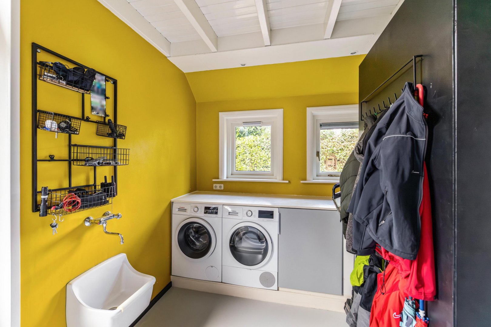 Indeling: zij-entree naar royale hal met toilet en meterkast. Een middels taatsdeuren afgescheiden entree tot de stijlvolle en unieke woonkeuken (2021). Mooie elementen zoals een fraai houten aanrechtblad, goede en degelijke apparatuur waaronder een quooker kraan en een mooie afwerking kenmerken deze verzorgde ruimte. Direct naast de keuken bevindt zich de ruime bijkeuken met toegang tot de tuin. Er is hier een aansluiting voor de wasmachine en de droger.