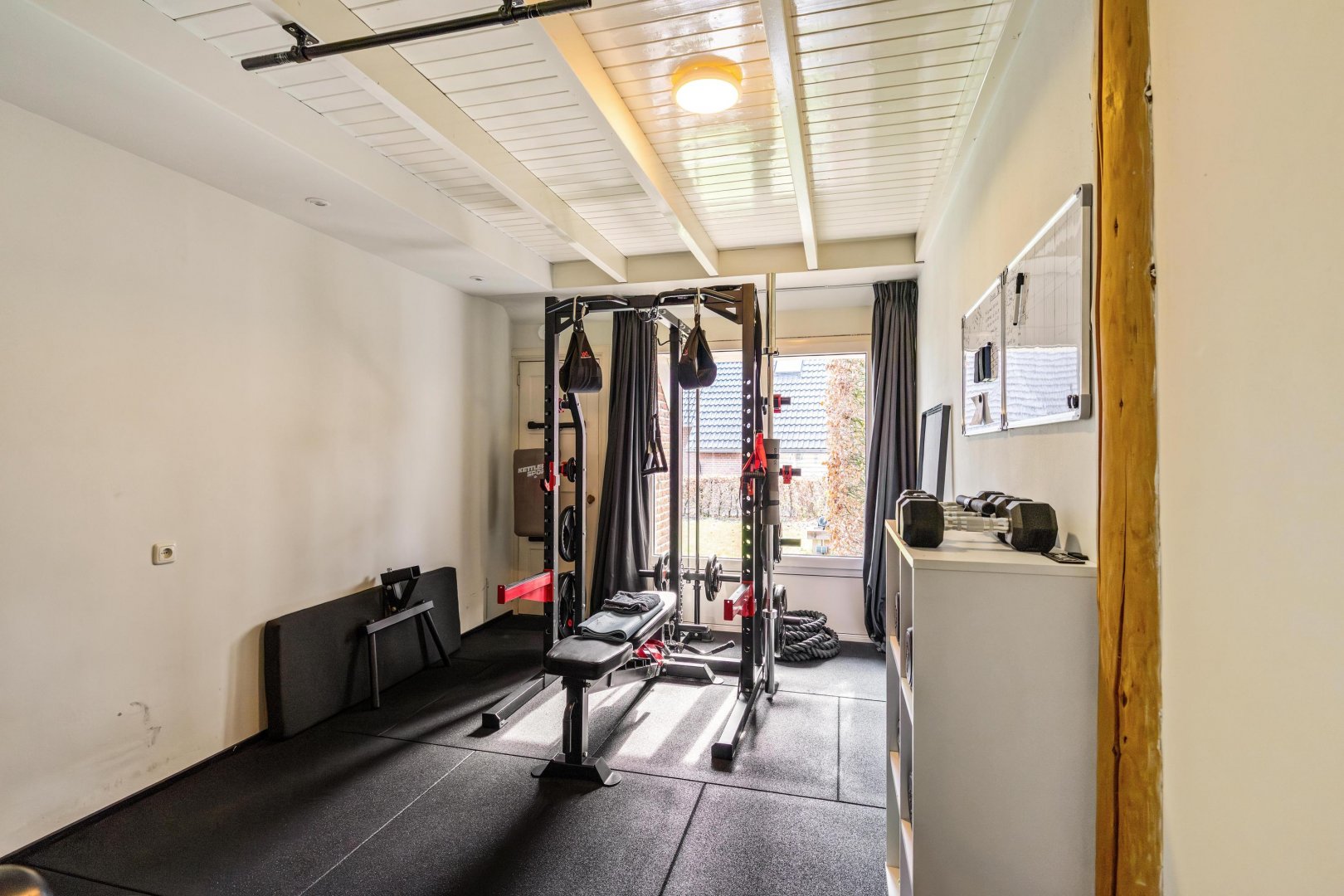 Aangrenzend bevindt zich een fitnesskamer, deze ruimte is eveneens ideaal als speel- en/of studiekamer.