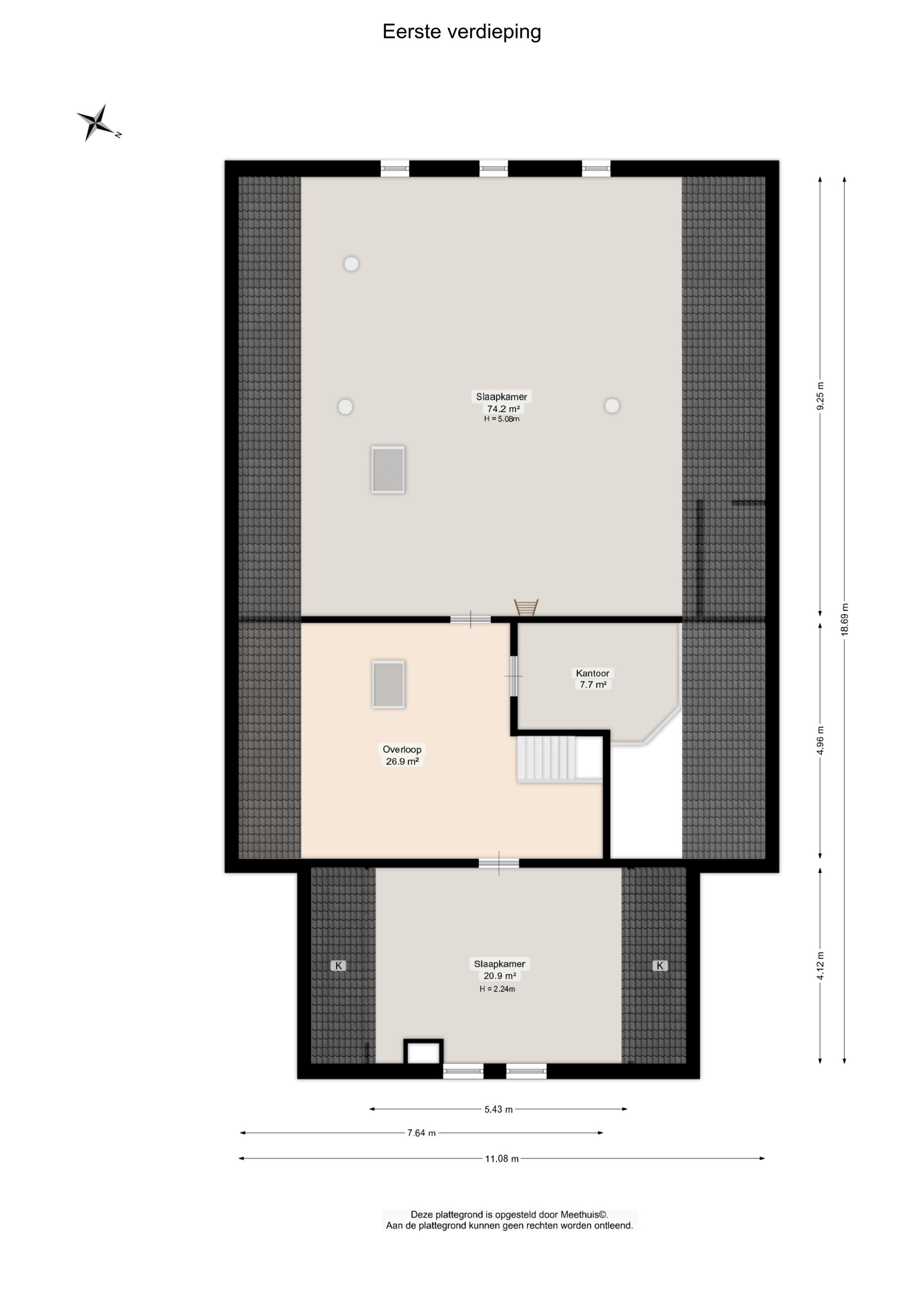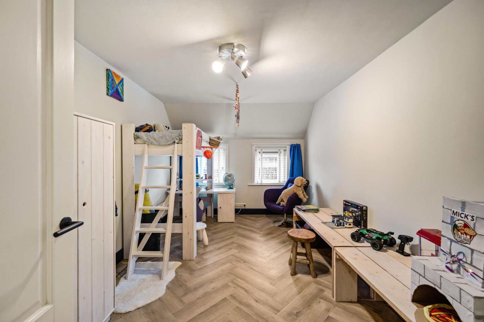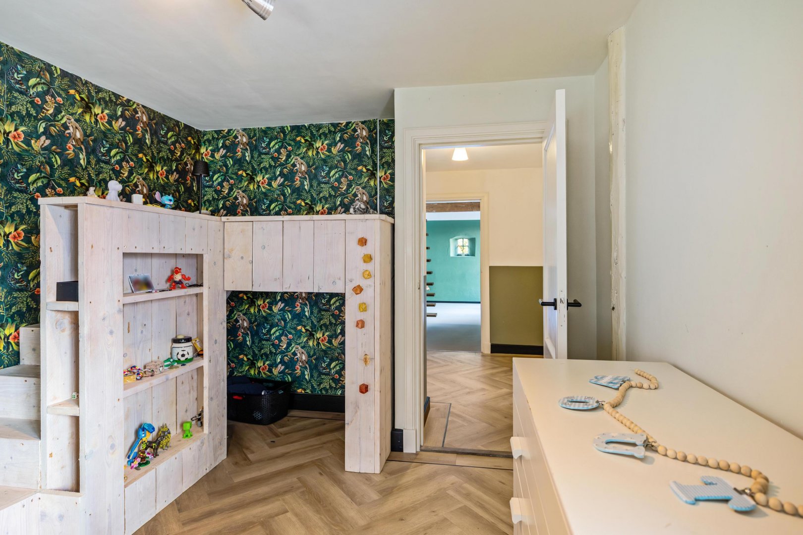 De eerste etage is riant. Hier bevindt zich aan de voorzijde van de boerderij een gezellige slaapkamer en aan de achterzijde een grote multifunctionele ruimte. Een geweldige ruimte om film te kijken of om als tiener je heerlijk terug te trekken met je vrienden.