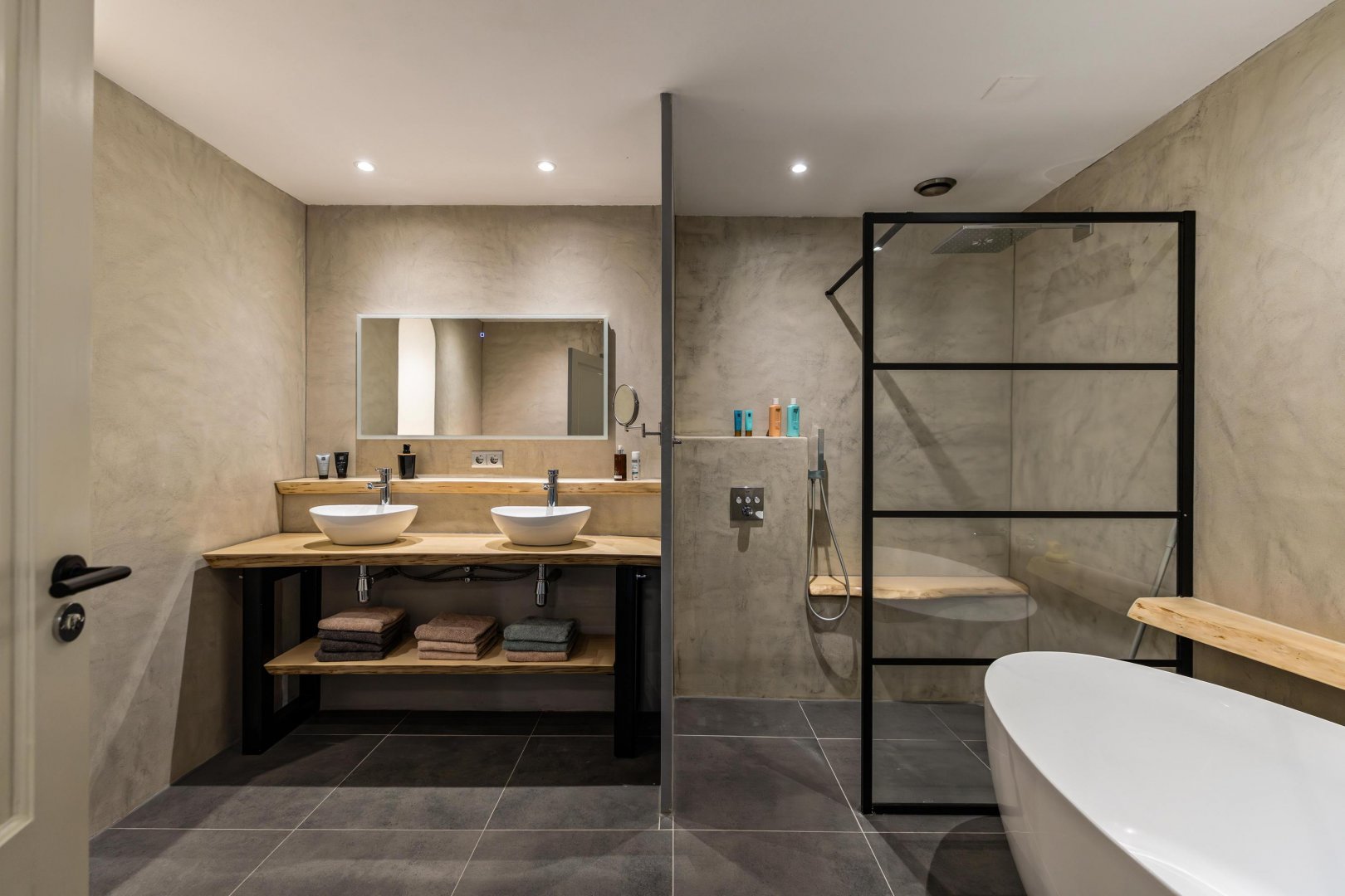 Via een centrale gang door het huis bereikt u 4 slaapvertrekken. Via de gang is er een luxe royale badkamer voorzien van inloopdouche, ligbad, dubbel wastafelmeubel en toilet bereikbaar (2021). De master bedroom heeft veel kastruimte en eigen luxe badkamer voorzien van inloopdouche, ligbad en vaste wastafel.