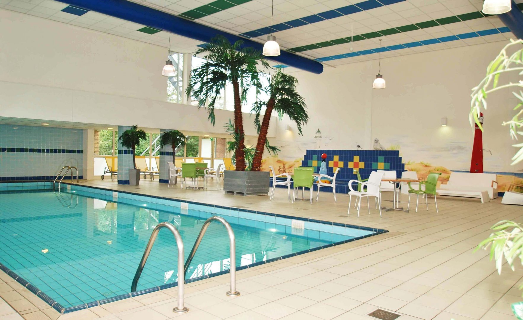 Het op een ruim perceel gelegen complex Vitamaris beschikt over een groot verwarmd binnenzwembad met kinderbad en verschillende sauna’s en relaxruimte met zonnebank. Ook een activiteitenzaal met spelletjestafel, boekenkasten en biljarttafel is beschikbaar. Zelfs een tafeltennisruimte kan op de begane grond gebruikt worden.