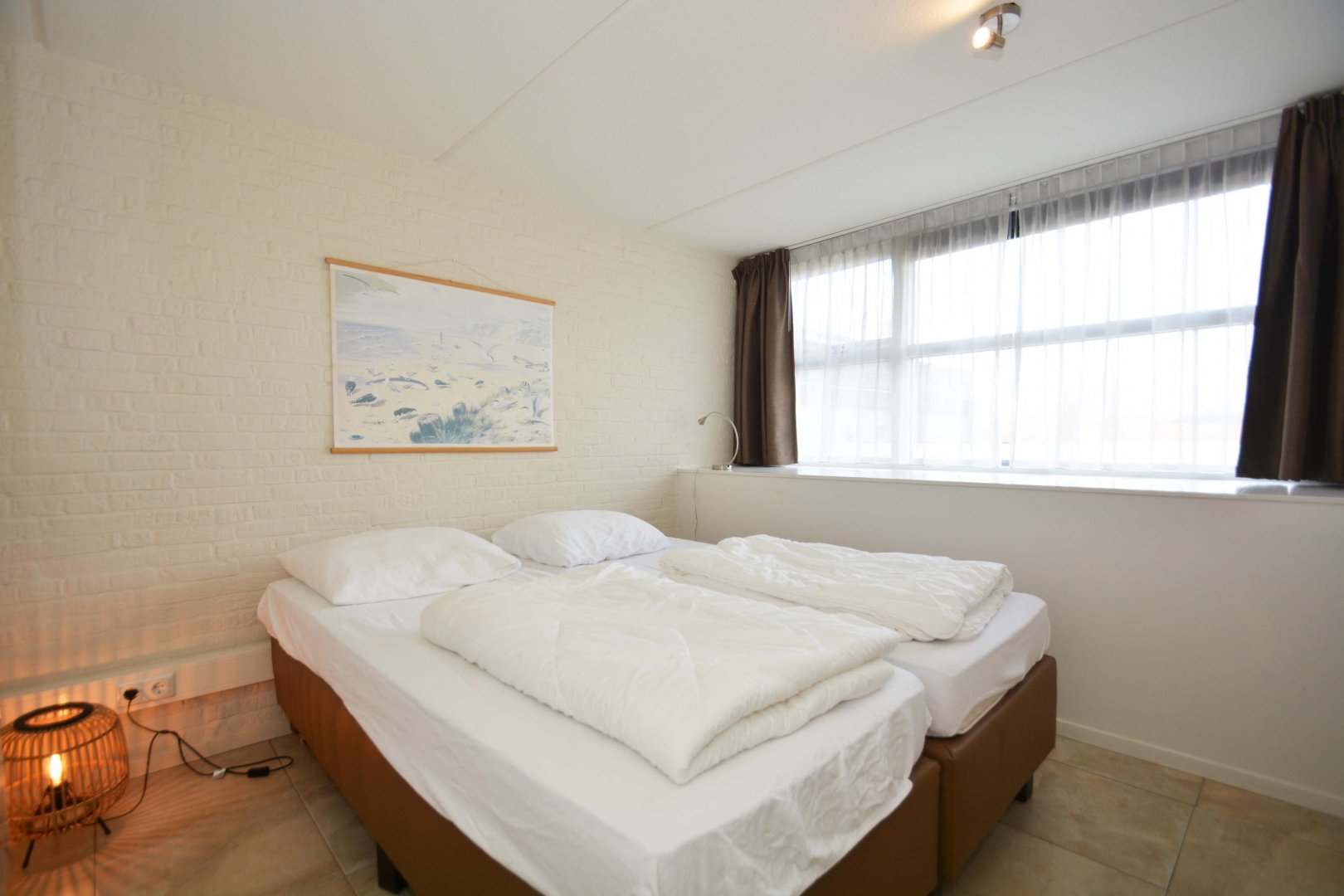 Recreatie-appartement nummer 136 is een modern en luxe accommodatie voor vier personen en beschikt over twee slaapkamers. Het appartement heeft een oppervlakte van circa 57 m2 en is voorzien van een zeer complete keuken (inductiekookplaat, magnetron, koelkast en vaatwasser) en fijne badkamer en separaat toilet. Slaapkamer 1 is uitgevoerd met twee éénpersoonsbedden. De tweede slaapkamer is voorzien van een stapelbed. Middels de trap bereikt u het heerlijke dakterras dat voldoende ruimte biedt voor een loungeset en een eettafel. De ramen zijn overigens voorzien van HR++ beglazing. Gezamenlijke kelderruimte voor de opslag van onder meer fietsen en gebruik van wasmachines en wasdrogers in de waskelder.