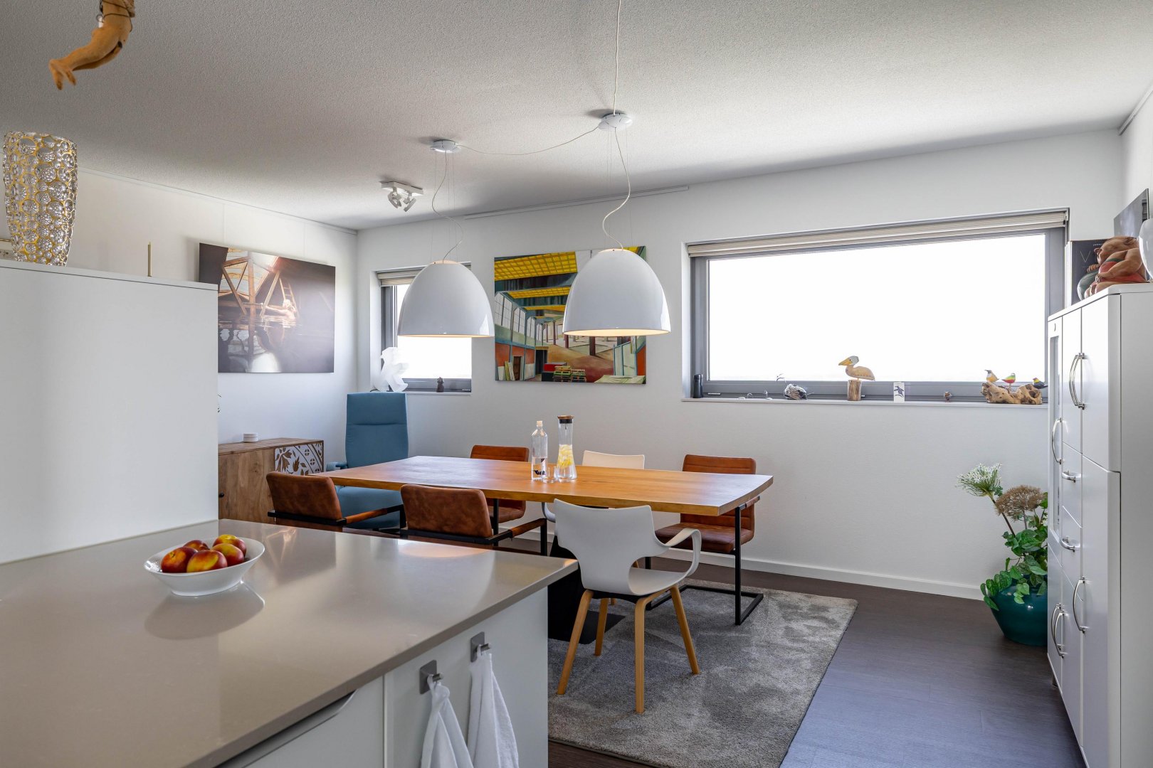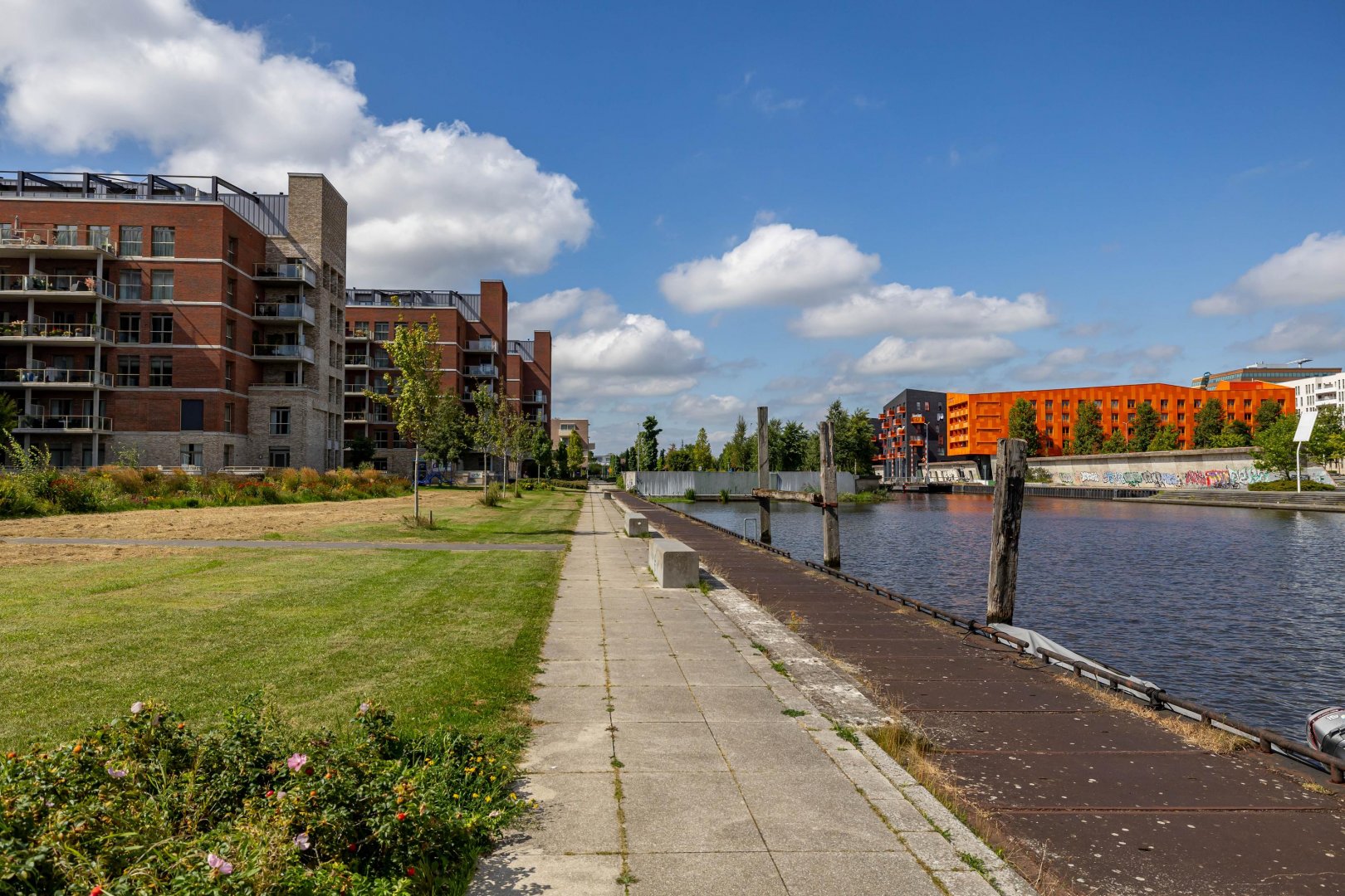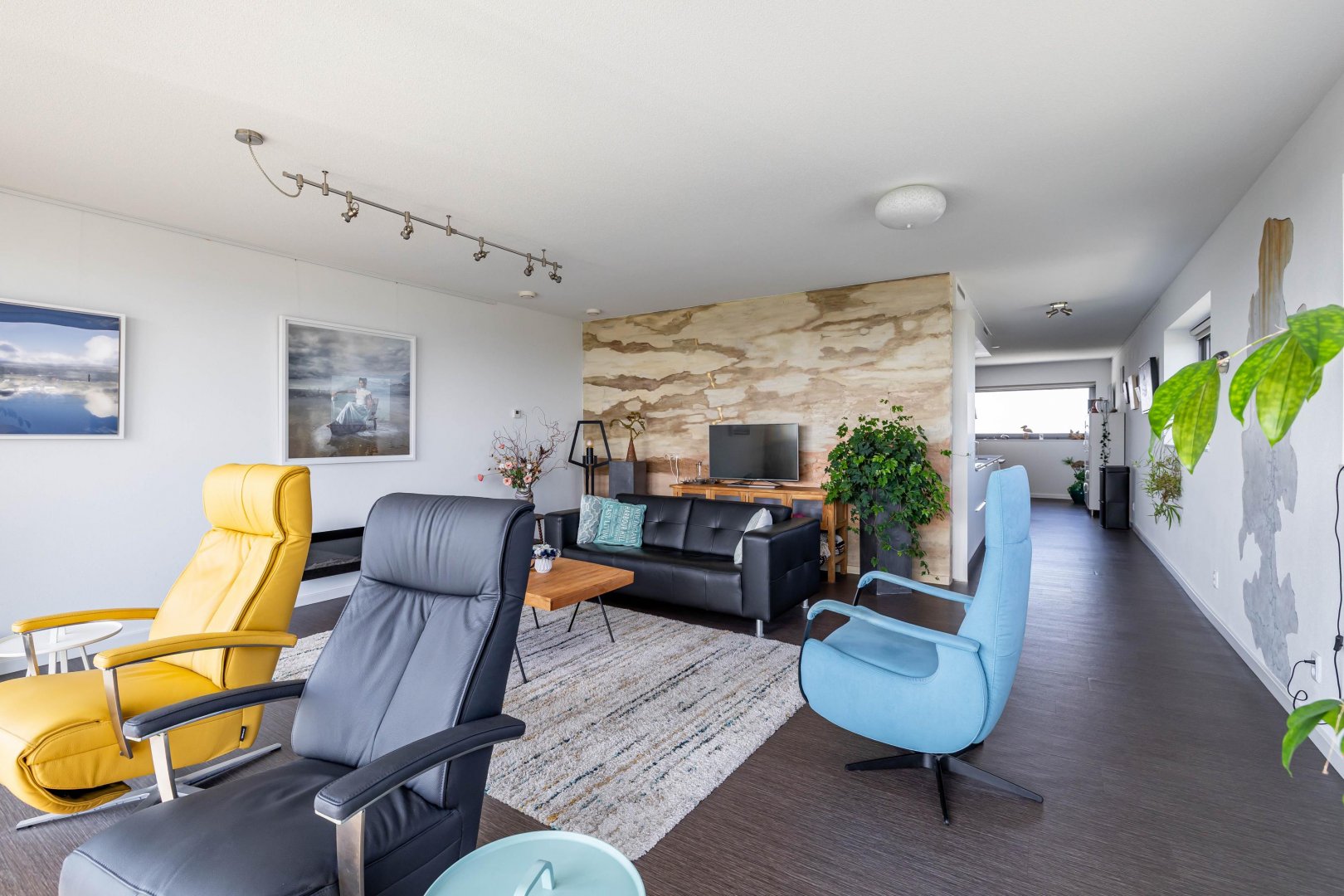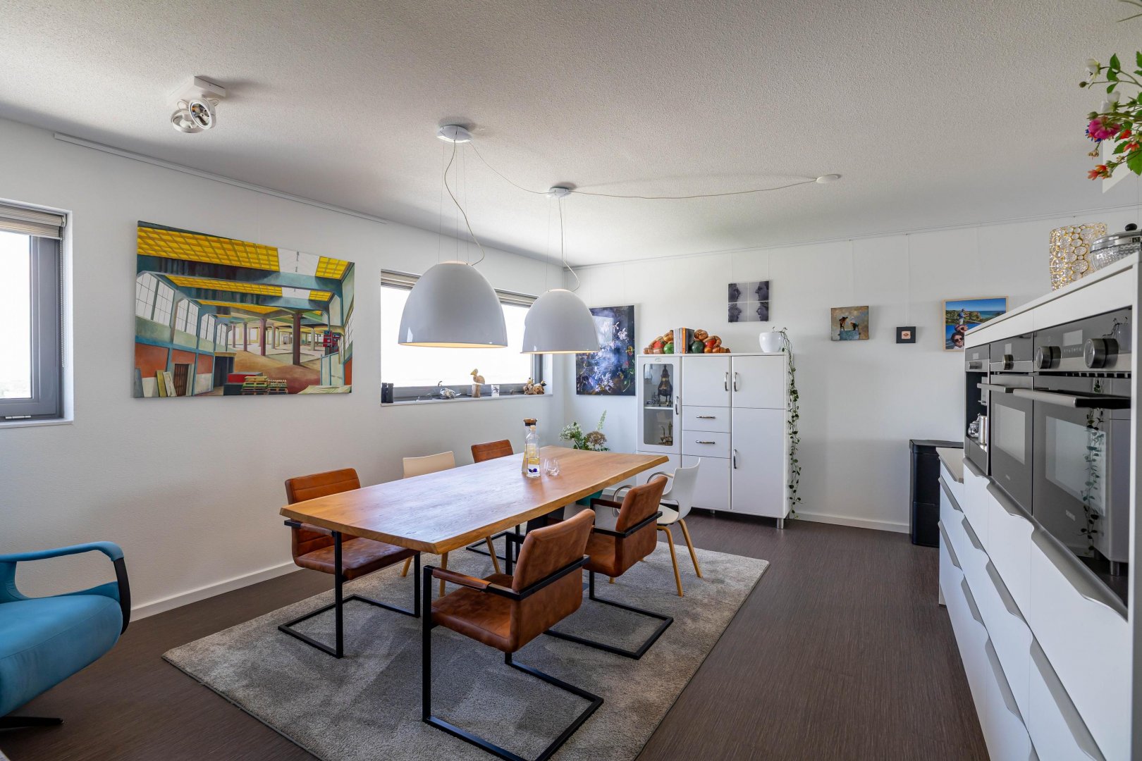 Achter de voordeur treft u een zeer ruim en licht appartement met een speelse indeling. De hoekligging biedt vanuit de eetkamer, keuken, woonkamer, slaapkamers en het terras een prachtig, levendig en gevarieerd uitzicht. Het woonoppervlak van 158 m2 is verdeeld over ruime living, luxe moderne keuken voorzien van alle denkbare inbouwapparatuur en eetkamer, drie slaapkamers/werkkamers, hal, separaat toilet, badkamer met modern sanitair en tot slot een ruime bijkeuken/berging. Zowel vanuit de living als vanuit de twee slaapkamers/werkkamers aan de zuidzijde stapt u het zonnige terras op. De master bedroom is gelegen aan de noordzijde (natuurlijk koel) en heeft veel ruimte voor kasten.