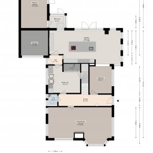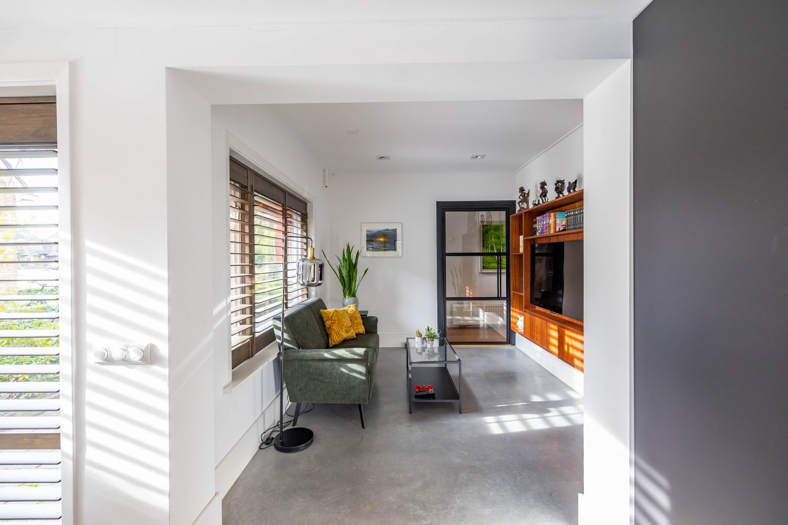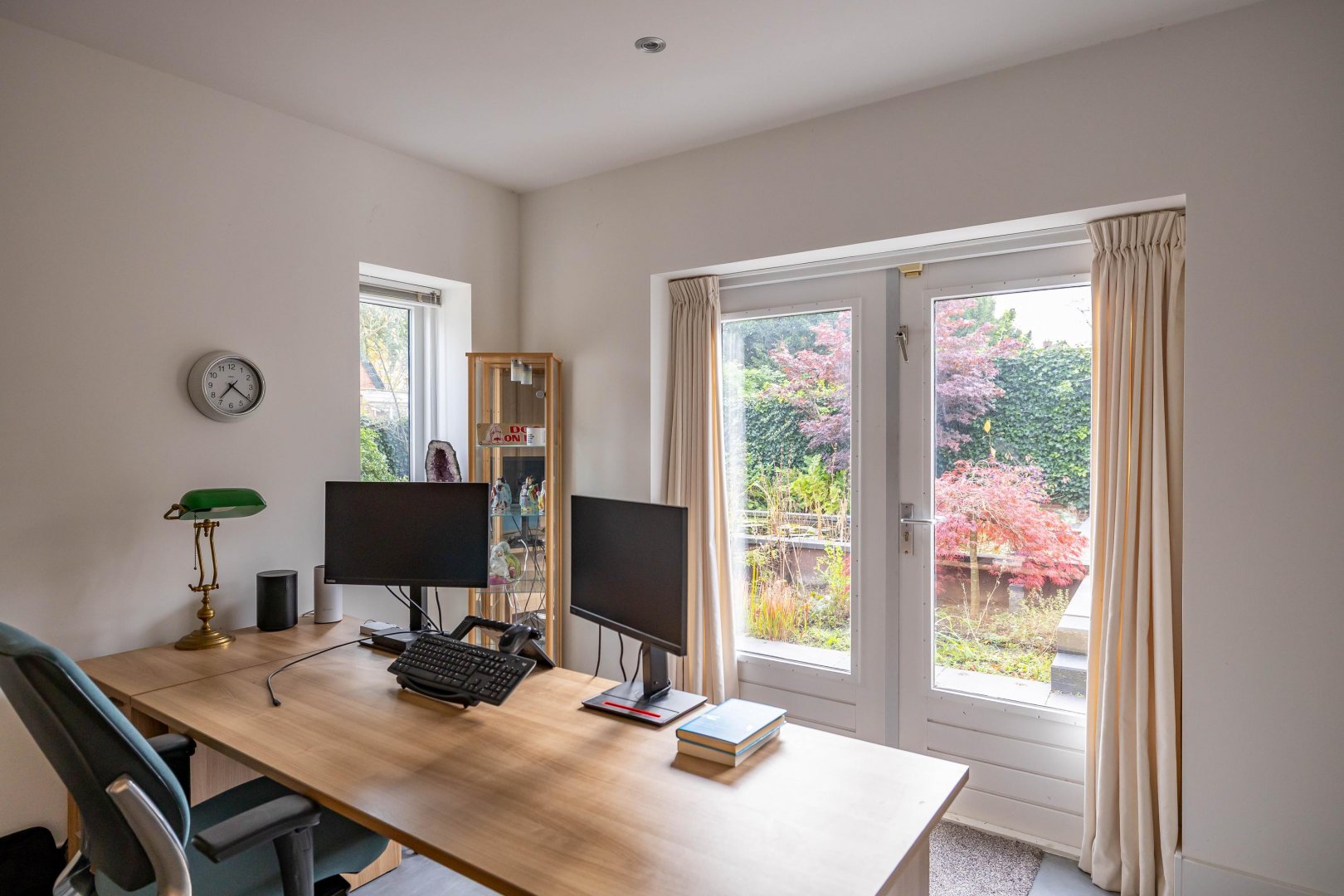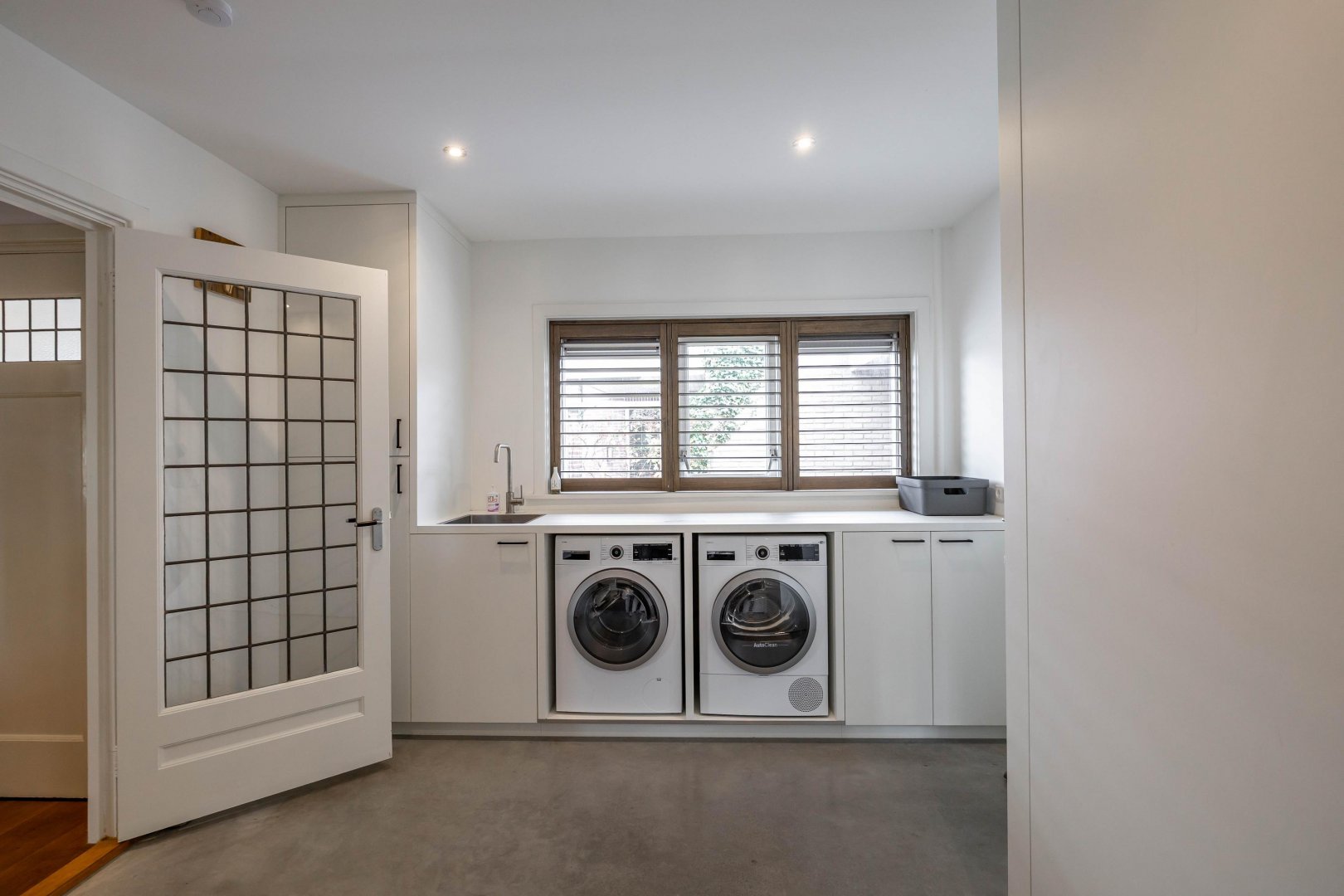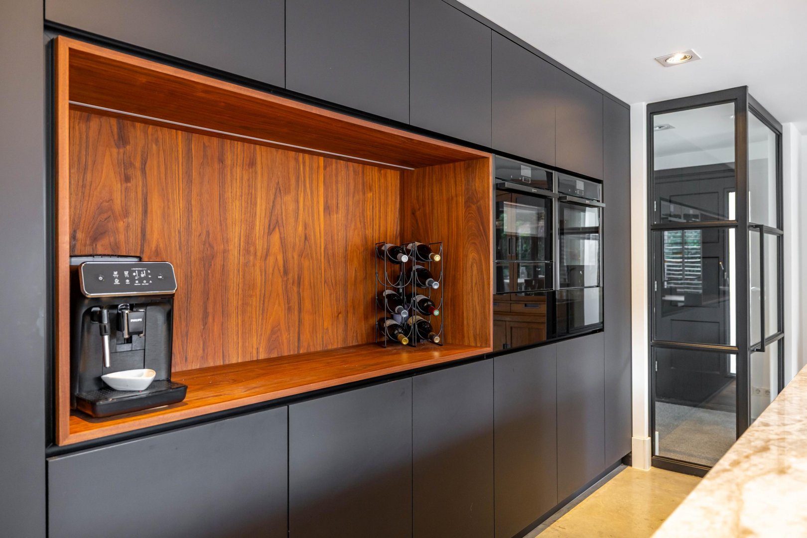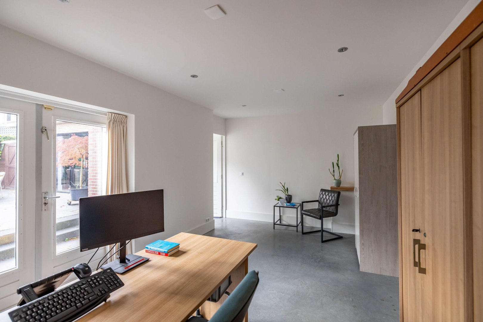 Bij binnenkomst via de entree/hal met stijlvolle trapopgang bereikt u het toilet, de 32 m² ruime woonkamer met gashaard en prachtig parkzicht, de bijkeuken met toegang tot de provisiekelder en voorzien van aansluitingen voor wasmachine en droger, cv-installatie. De woonkeuken is voorzien van een imposant werkeiland en uitgerust met hoogwaardige inbouwapparatuur, een pelletkachel en openslaande deuren naar de achtertuin. Via de zijkant van de woning is een tweede zit/tv kamer toegankelijk. Vanuit de achterhal is de voormalige garage bereikbaar; deze is getransformeerd tot een tuingerichte slaap/werkkamer van circa 20 m² met openslaande deuren en een berging aan de voorzijde met garagedeur. Desgewenst eenvoudig weer terug te brengen naar een garage-functie. Het achterhuis is voorzien van vloerverwarming.