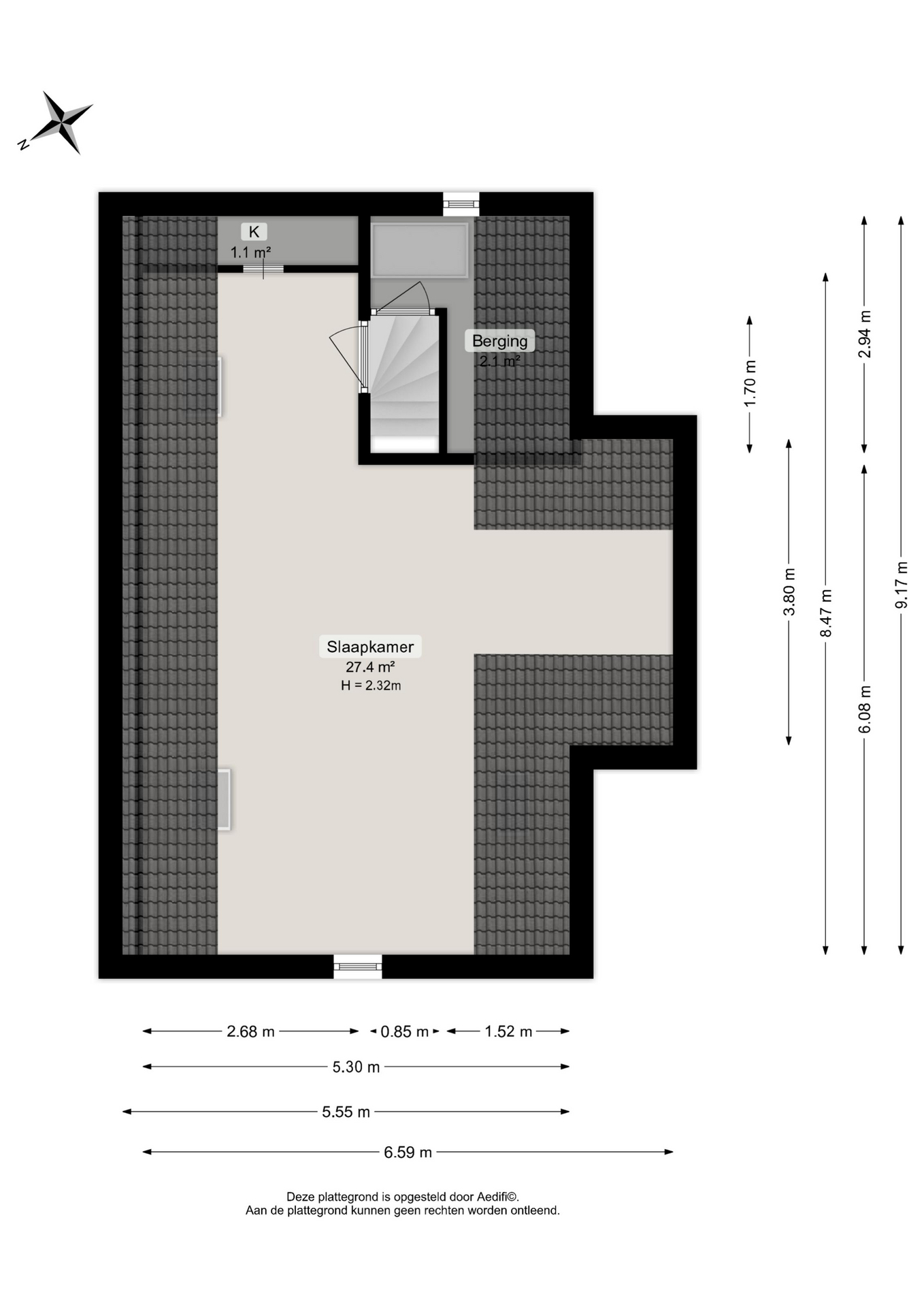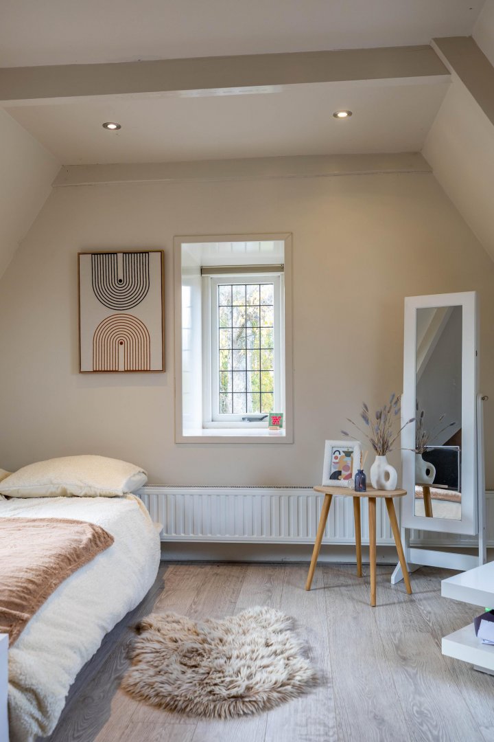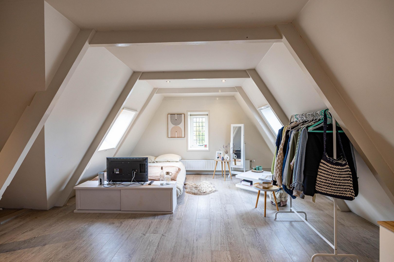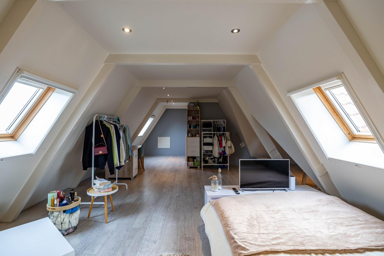 Een zeer royale vierde slaapkamer (ca. 31 m²), voorzien van meerdere dakramen en extra lichtinval — een plek met potentie voor masterbedroom of werkruimte. Tevens is op deze verdieping nog een zolderberging.