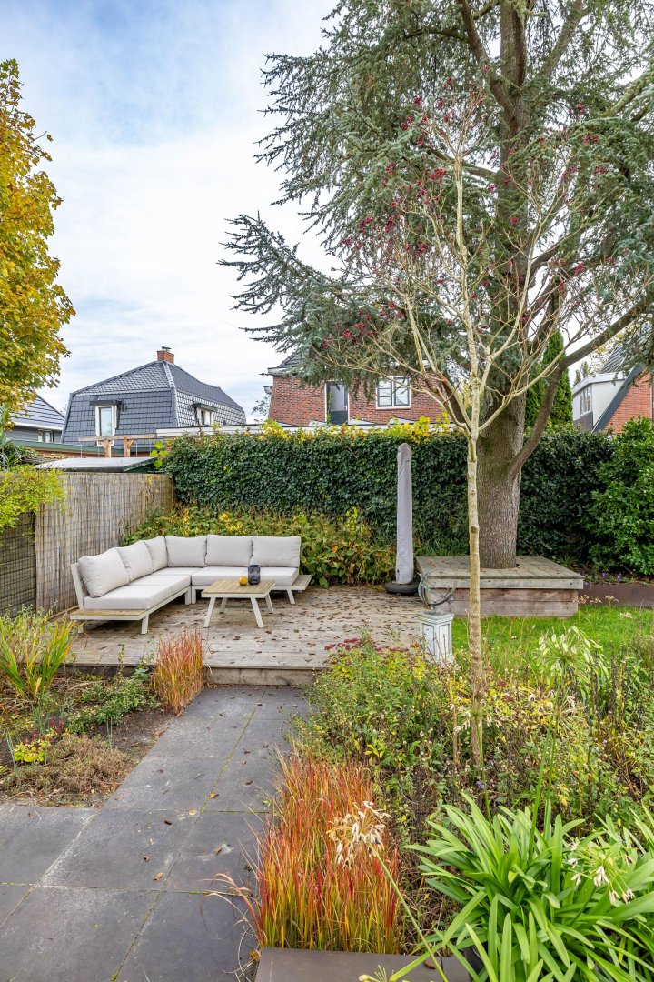 Dit jaren 30 huis is zorgvuldig gerenoveerd en gemoderniseerd – met oog voor detail, behoud van oorspronkelijke sfeer én het gebruik van hoogwaardige materialen. Oude stijl elementen zoals glas-in-lood ramen en een sfeervolle haardpartij vormen het historische vertrekpunt; daartegenover moderne aansluitingen en een onderhoudstoestand die direct instapklaar te noemen is. De royale vrijstaande villa aan de Burgemeester Bartelsstraat 9 biedt een riante woonkamer met uitzicht op de vijver in het park, een tuingerichte, zeer complete woonkeuken, een werkkamer én in totaal vier slaapkamers. De oprit biedt ruimte voor het parkeren van meerdere auto's.