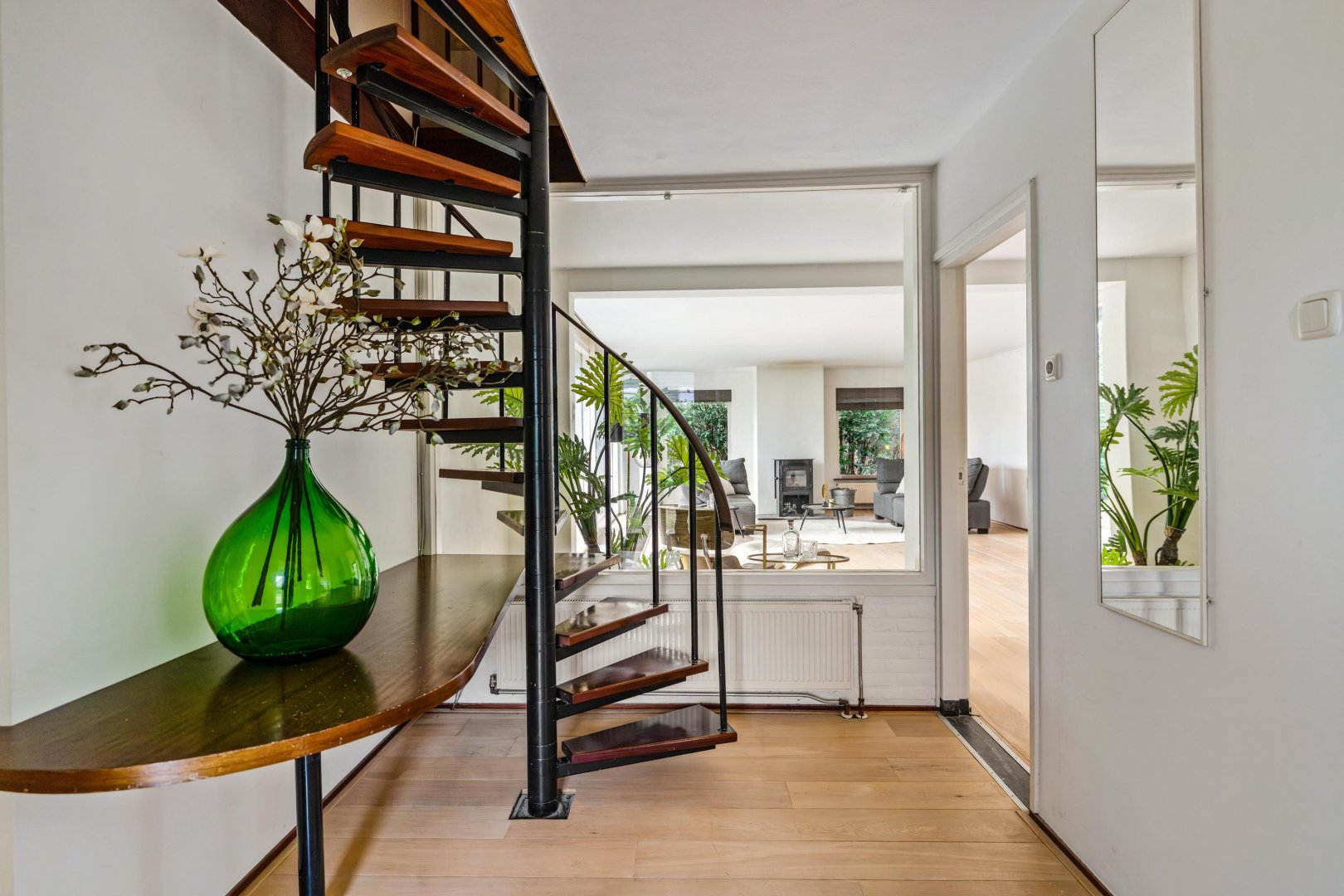 Entree/hal met tochtportaal, garderobe en toilet. De centrale hal met trapopgang naar de verdieping geeft toegang tot zowel het woon als het slaapgedeelte. De Living met open keuken vormt het hart van de woning en straalt comfort en ruimte uit. Grote raampartijen en een schuifpui zorgen voor een prachtige lichtinval en een directe verbinding met de tuin, terwijl de open haard bijdraagt aan een warme en sfeervolle ambiance.
