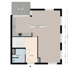 De indeling van het appartement is als volgt: Vanuit de afgesloten gemeenschappelijke hal is het appartement bereikbaar middels het trappenhuis of de lift. De hal met trapopgang biedt toegang tot de ruime woonkamer met open keuken. De woonkamer biedt een fraai uitzicht over de Dorpsstraat. De keuken heeft een moderne uitstraling en is voorzien van diverse inbouwapparatuur, te weten: koelvries combinatie, vaatwasser, oven, wijnklimaatkast, 5 pits gaskookplaat en afzuigkap. Het ruime balkon is middels een schuifpui toegankelijk. Voorts vinden we op deze verdieping nog een meterkast en een badkamer voorzien van toilet, douche en wastafelmeubel.