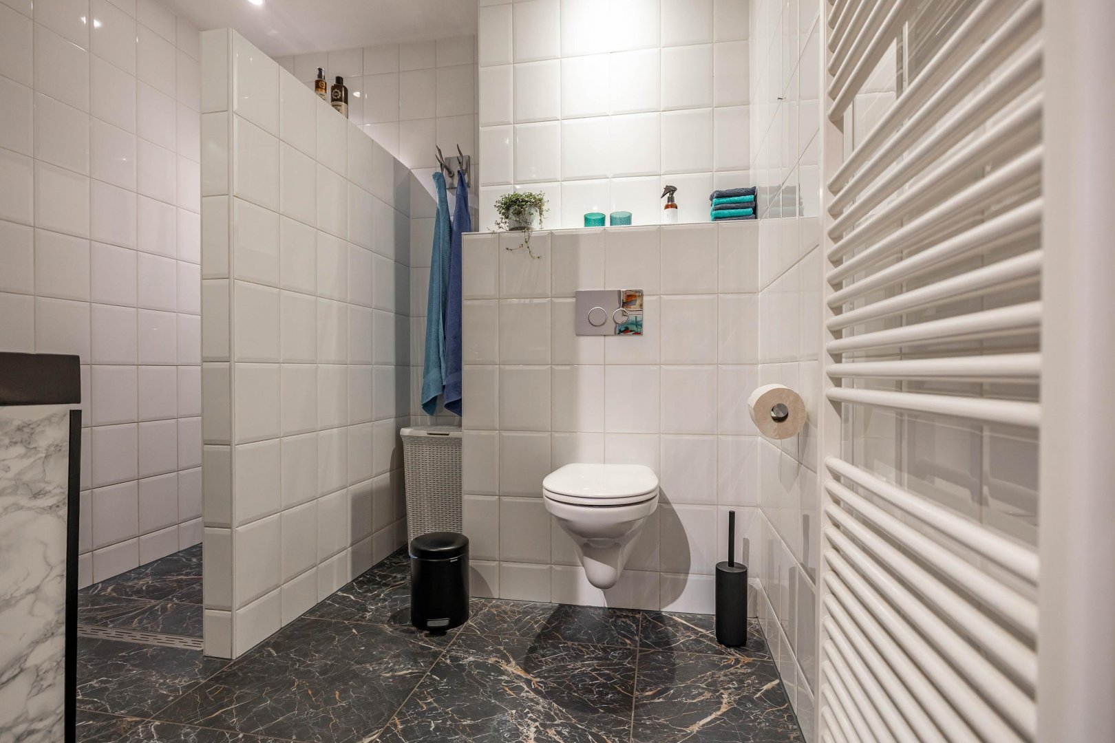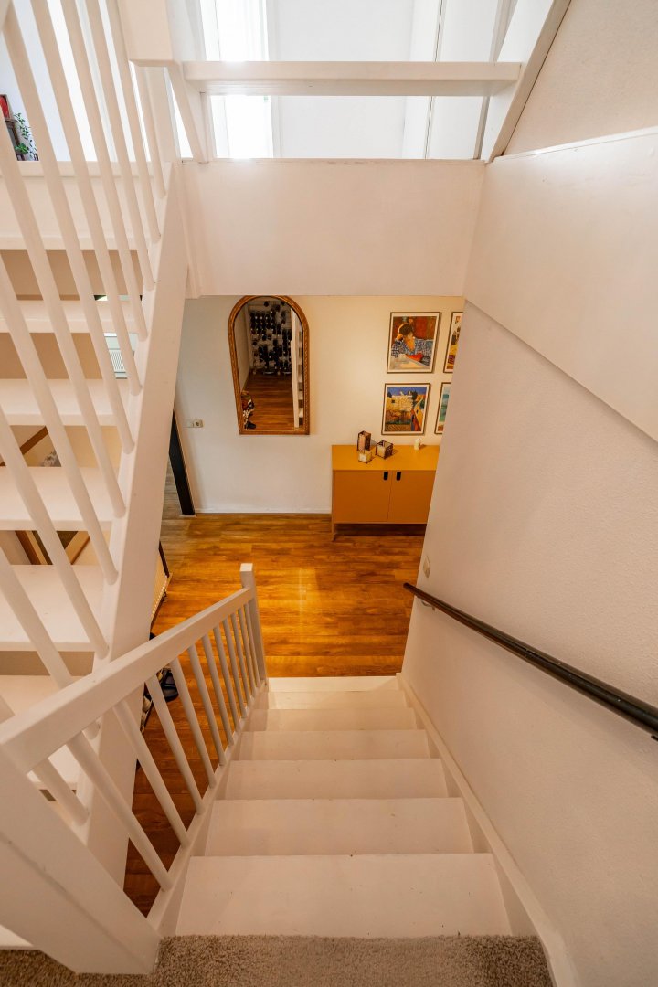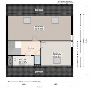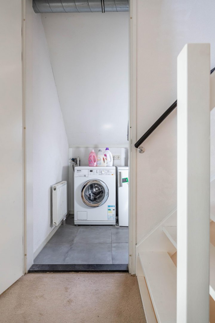 Op de verdieping van dit appartement vinden we een overloop, 2 ruime slaapkamers, een wasruimte en een separaat toilet. De zolderverdieping is thans in gebruik als berging maar deze ruimte zou ook uitstekend dienst kunnen doen als derde slaapkamer. Door de geplaatste dakramen is er voldoende daglicht toetreding.