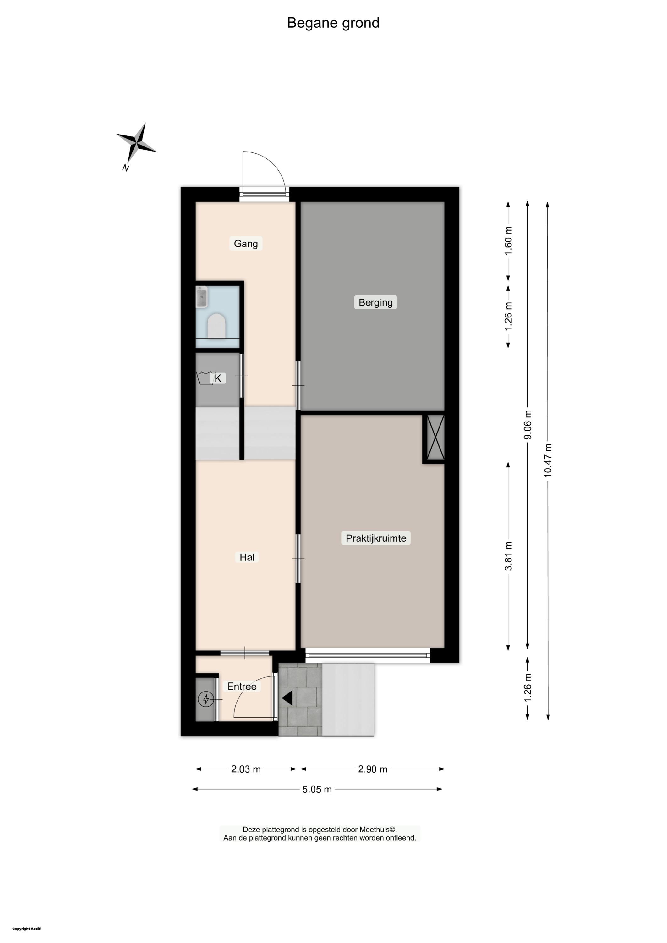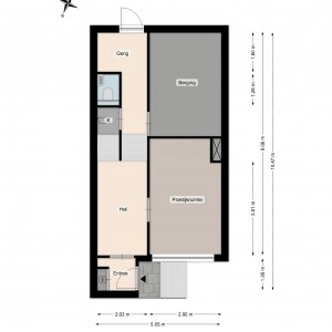 entree, compacte hal, ruime hal met werkkamer (circa 13m² met warm en koud water aansluiting) aan de voorzijde, toilet, inpandige berging (circa 12m²) aan de achterzijde en achteruitgang (inpandig) naar de parkeergarage.