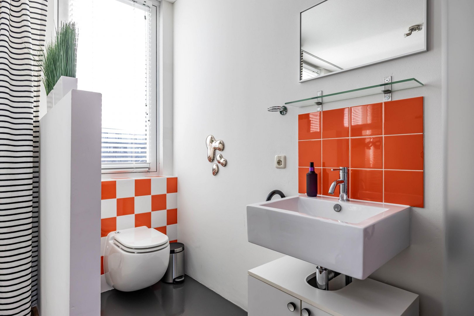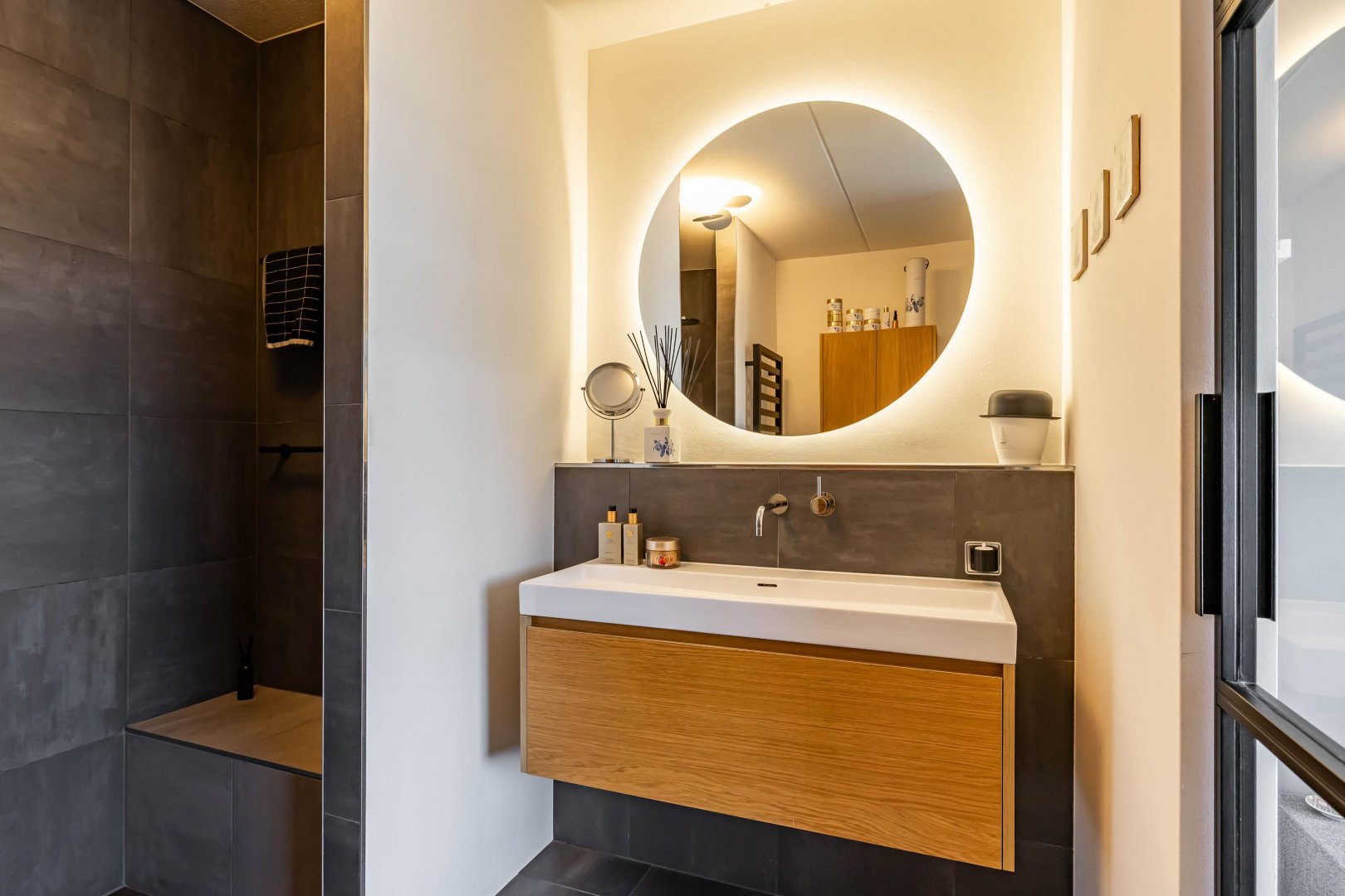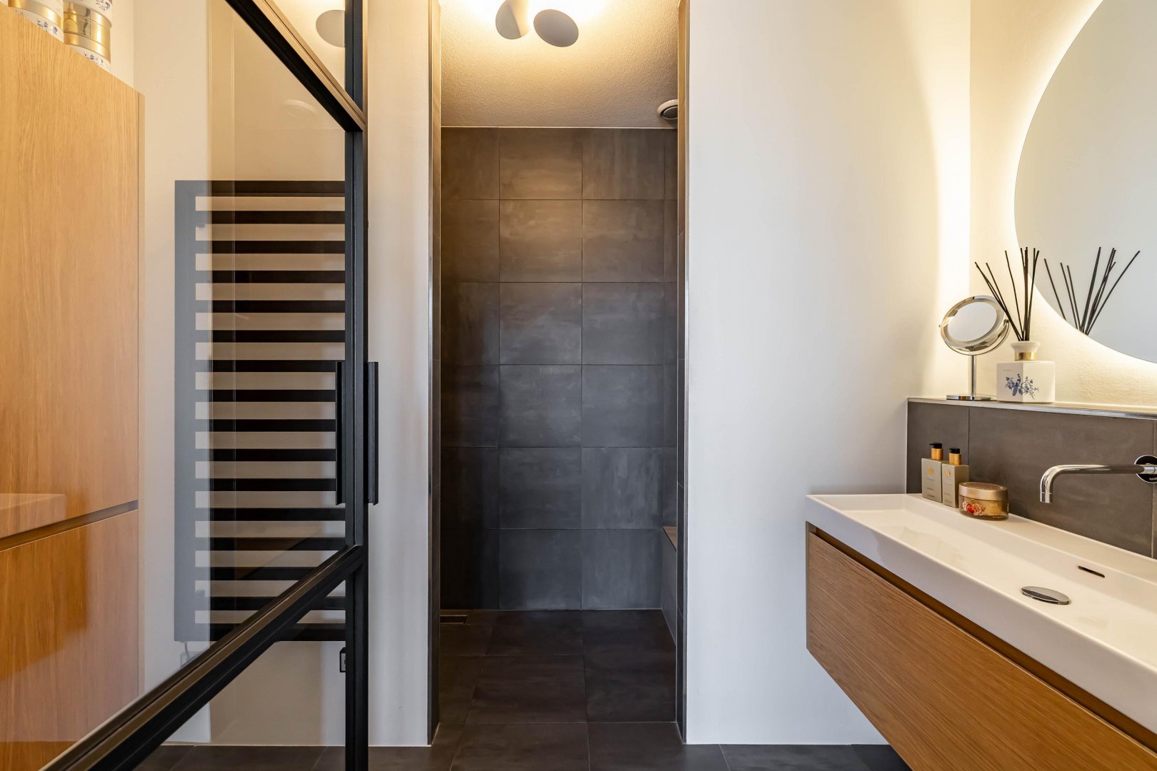 overloop, twee royale slaapkamers van circa 16 en 18m², separaat toilet met wastafeltje. Badkamer -gemoderniseerd in 2022- voorzien van wastafelmeubel, handdoekradiator en inloopdouche met regendouche en sunshower.