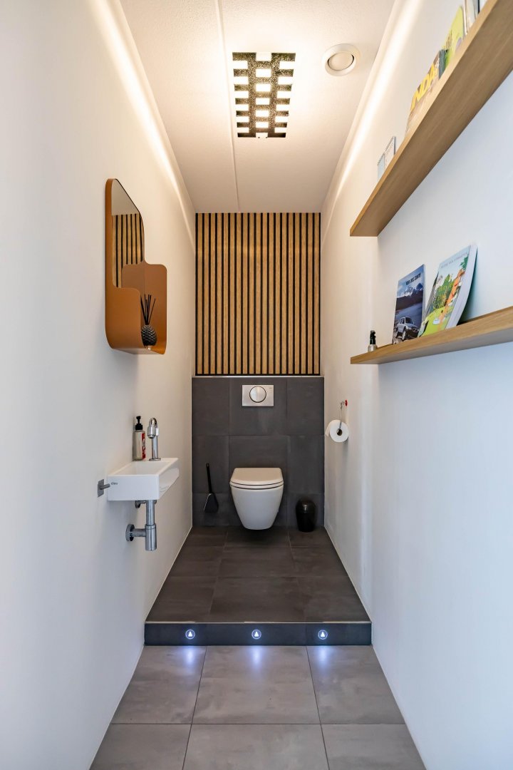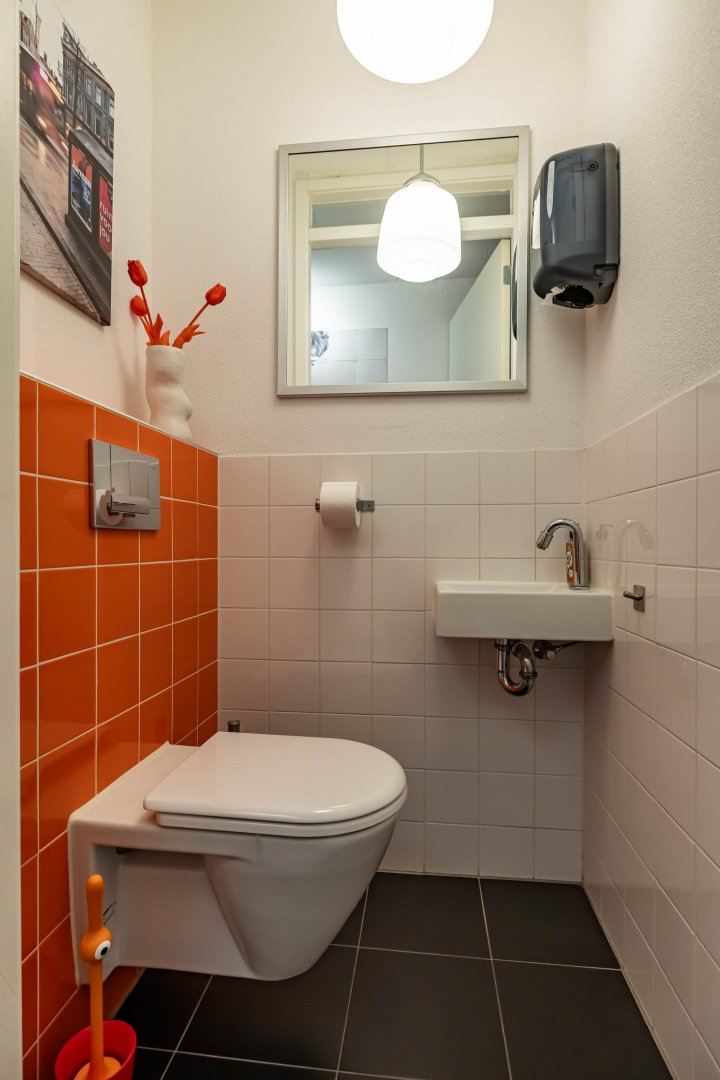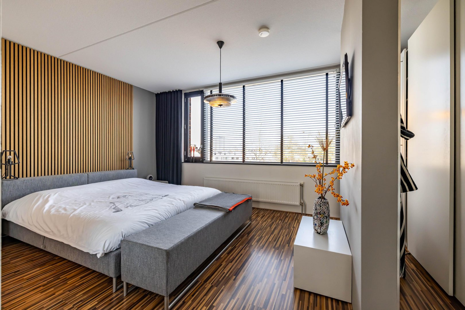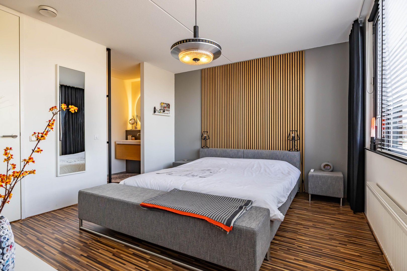 overloop, twee royale slaapkamers van circa 16 en 18m², separaat toilet met wastafeltje. Badkamer -gemoderniseerd in 2022- voorzien van wastafelmeubel, handdoekradiator en inloopdouche met regendouche en sunshower.