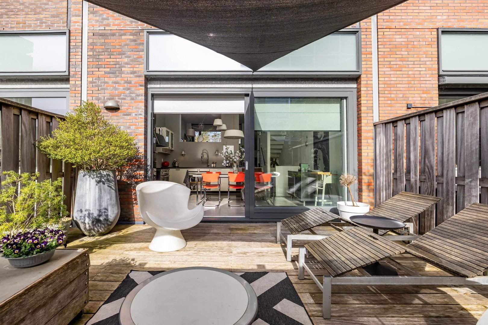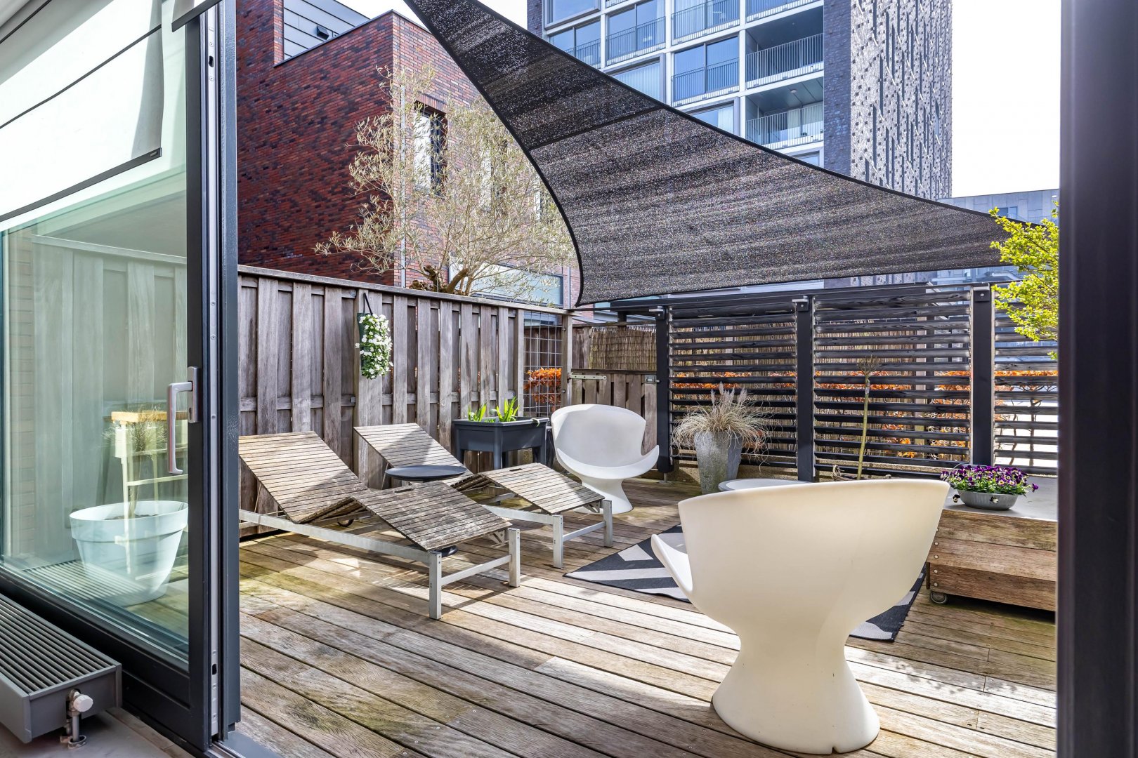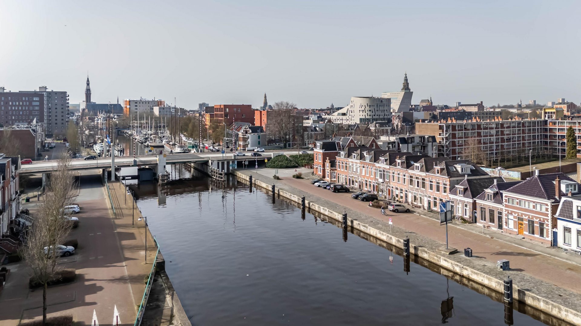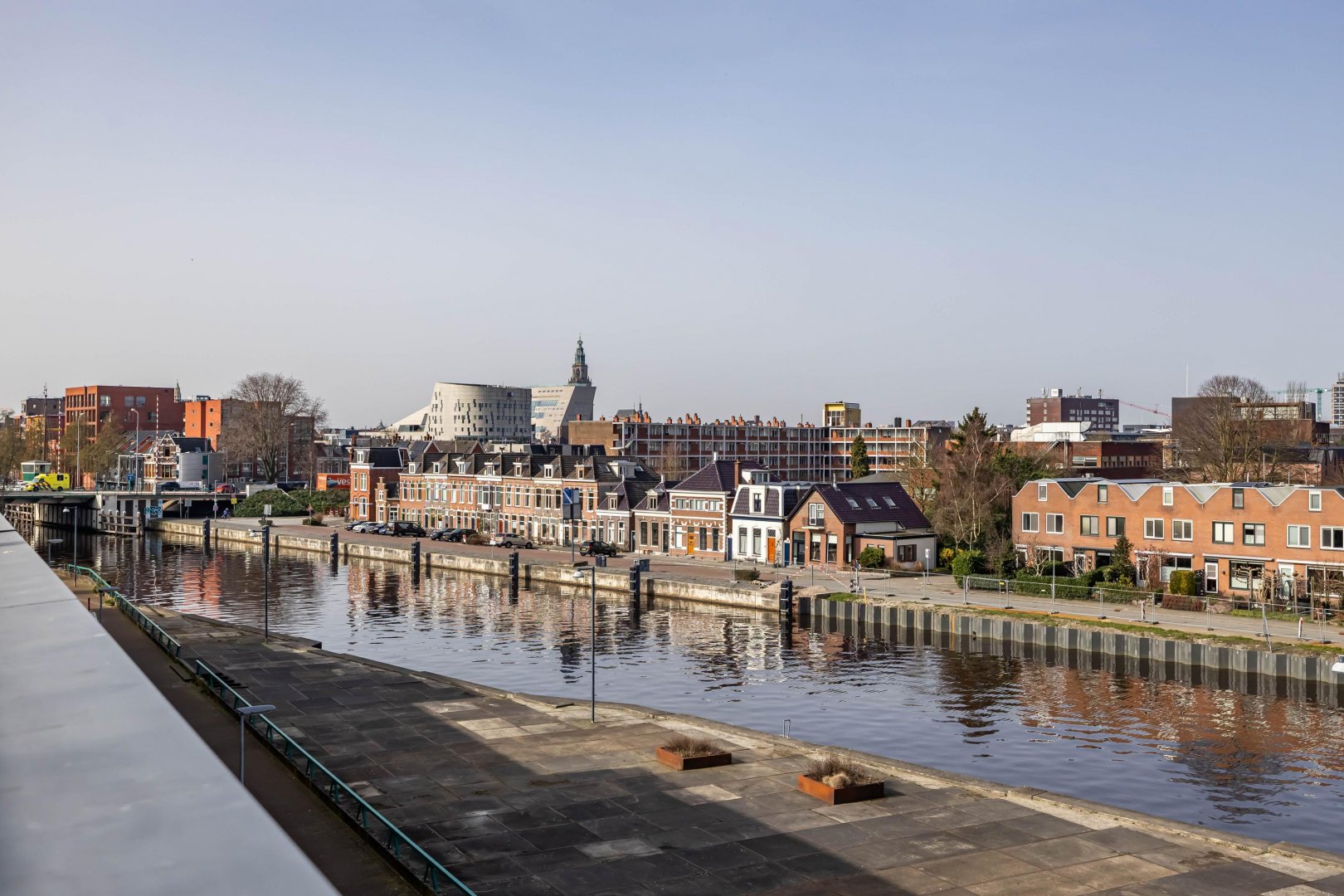 Modern en strak vormgegeven stadsherenhuis aan de kade gelegen van het druk bevaren Eemskanaal!