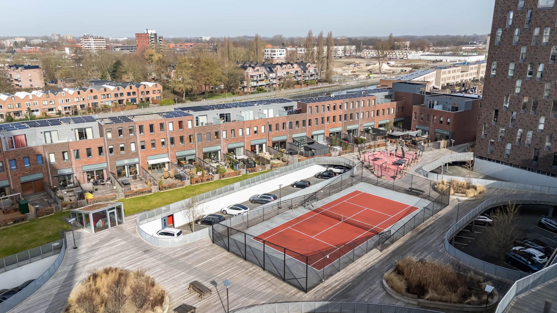 - via de achtertuin toegang tot een groot gemeenschappelijk binnenterrein met vrij gebruik van o.a. een tennisbaan, tuinkassen, speeltuin, gazon en diverse bankjes in deze parkachtige omgeving!;