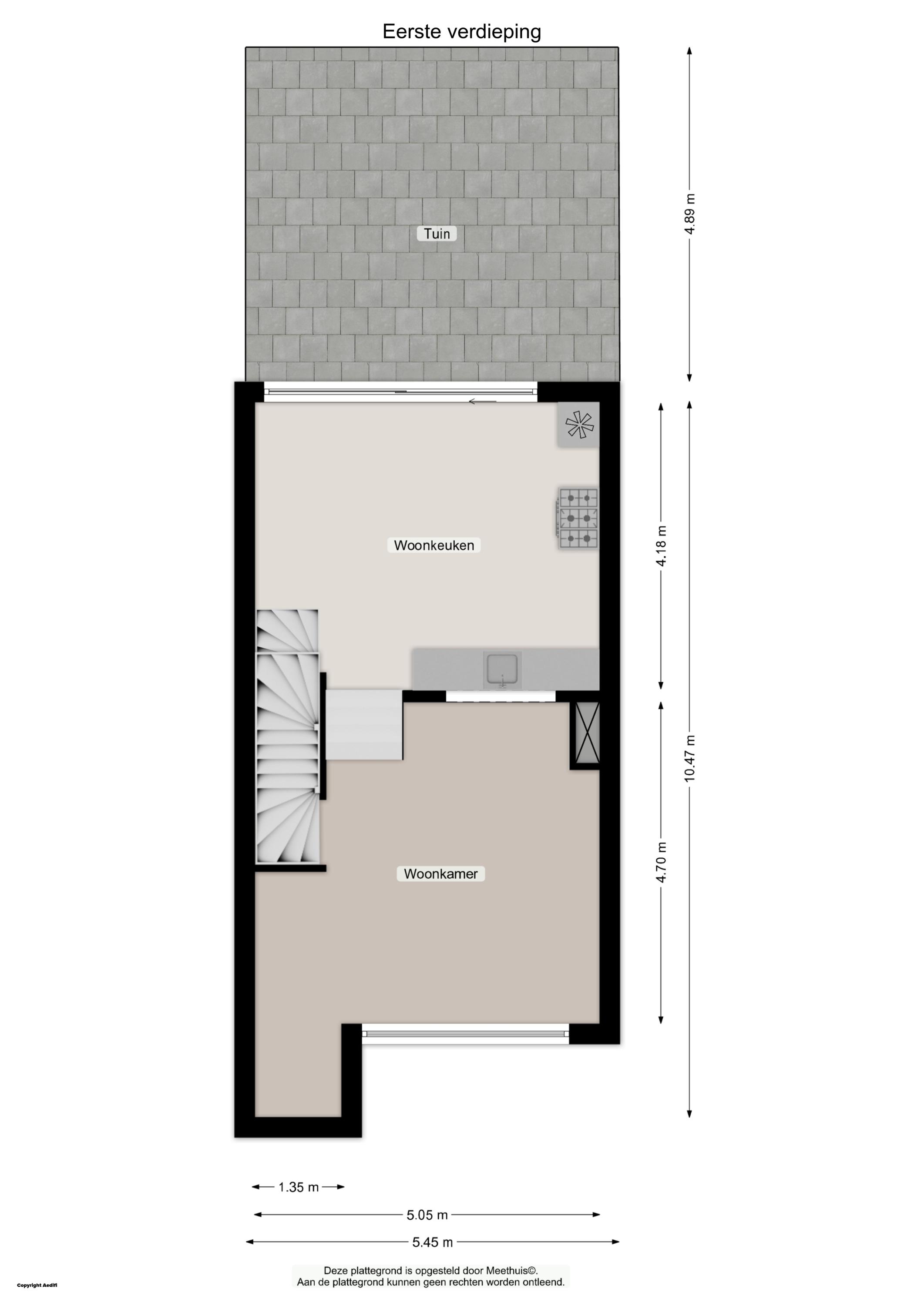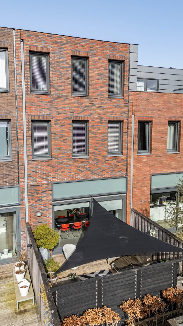 Het woonhuis is gebouwd in 2009, voorzien van een achtertuin op het zuiden en een dakterras op de bovenste verdieping.