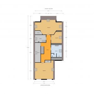 De begane grond is momenteel ingericht met een woonkamer en een werkkamer (inclusief opkamer met daaronder de kelder) in het voorhuis. Dan de riante woonkeuken en bijkeuken in het midden en vervolgens twee slaapkamers, een badkamer en inloopkast aan de achterzijde. Gelukkig is er ook voldoende schuurruimte van voor- naar achterzijde achter de baanderdeuren.