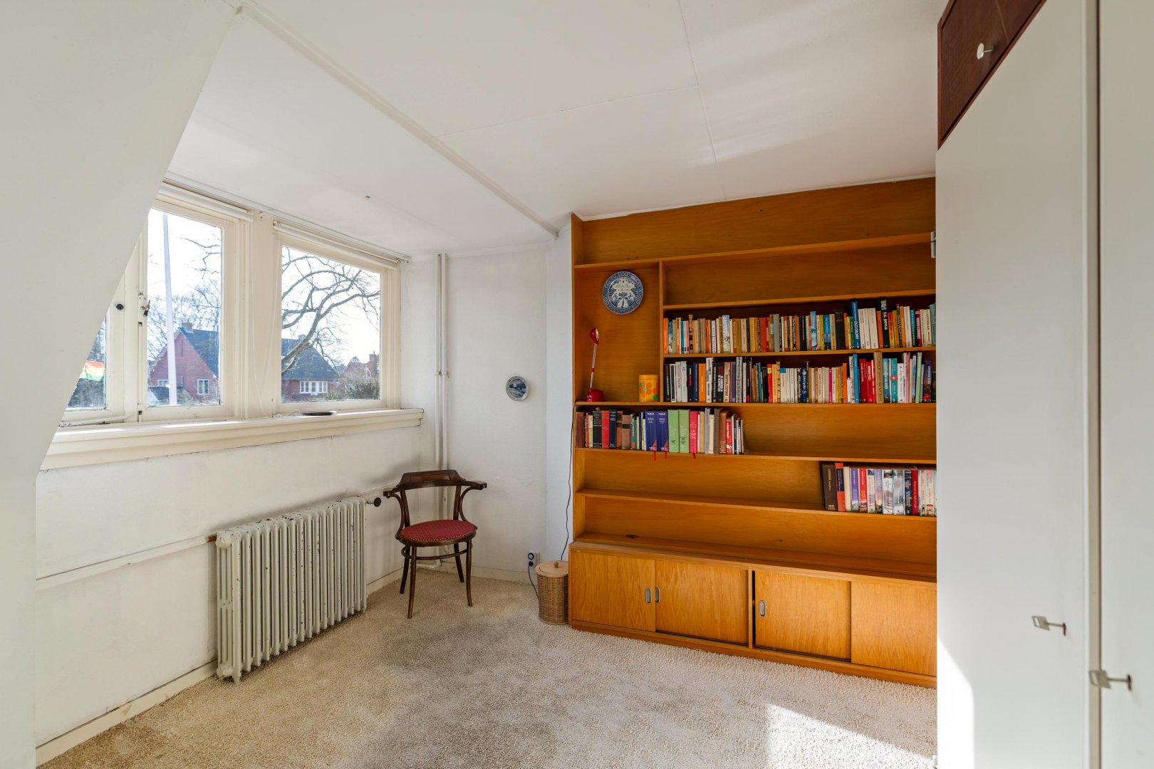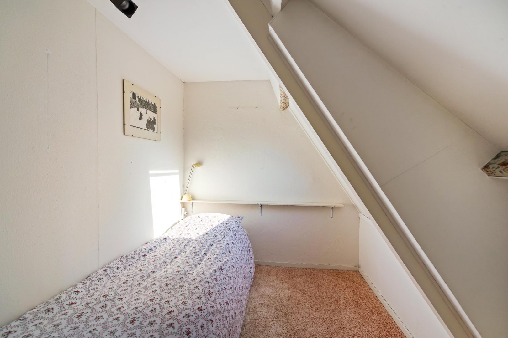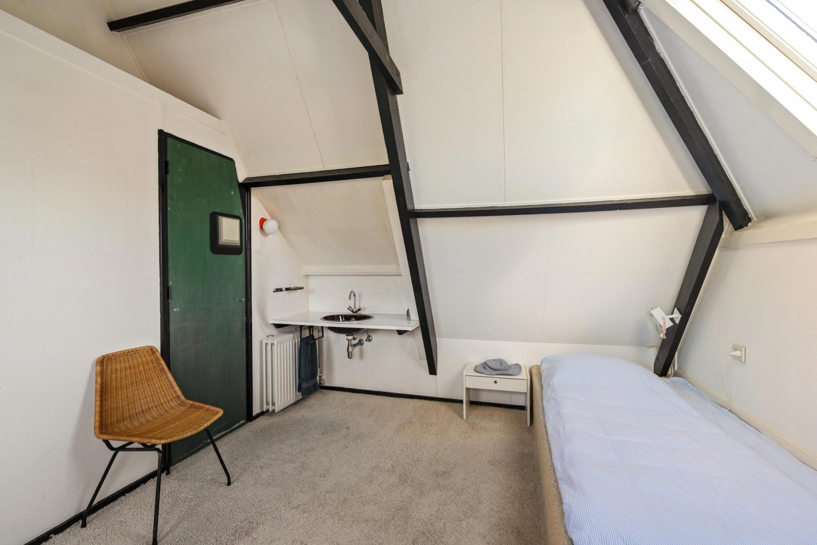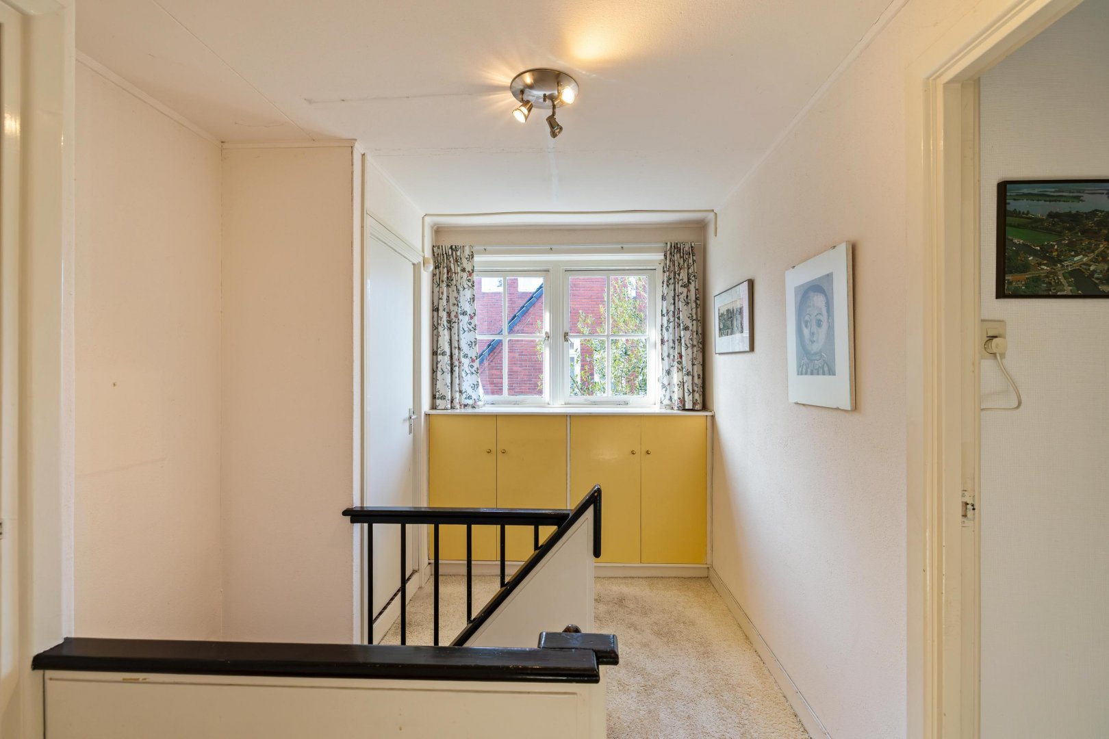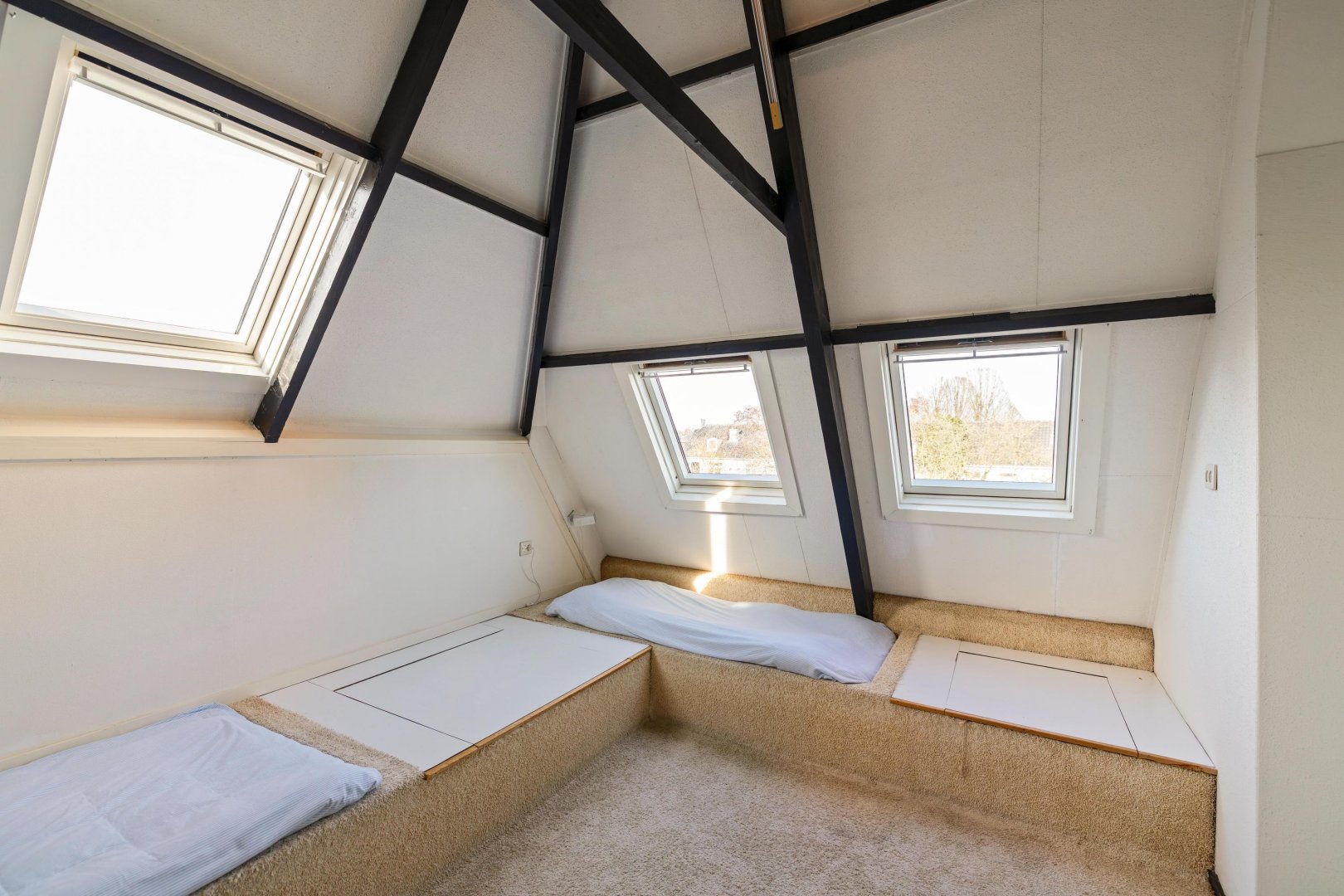 Overloop met bergruimte en twee slaapkamers. Dankzij de aanwezige dakramen zijn deze kamers heerlijk licht.