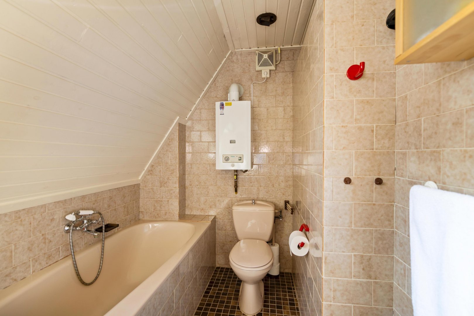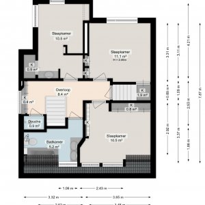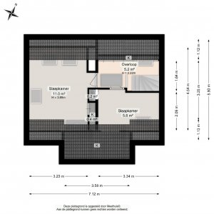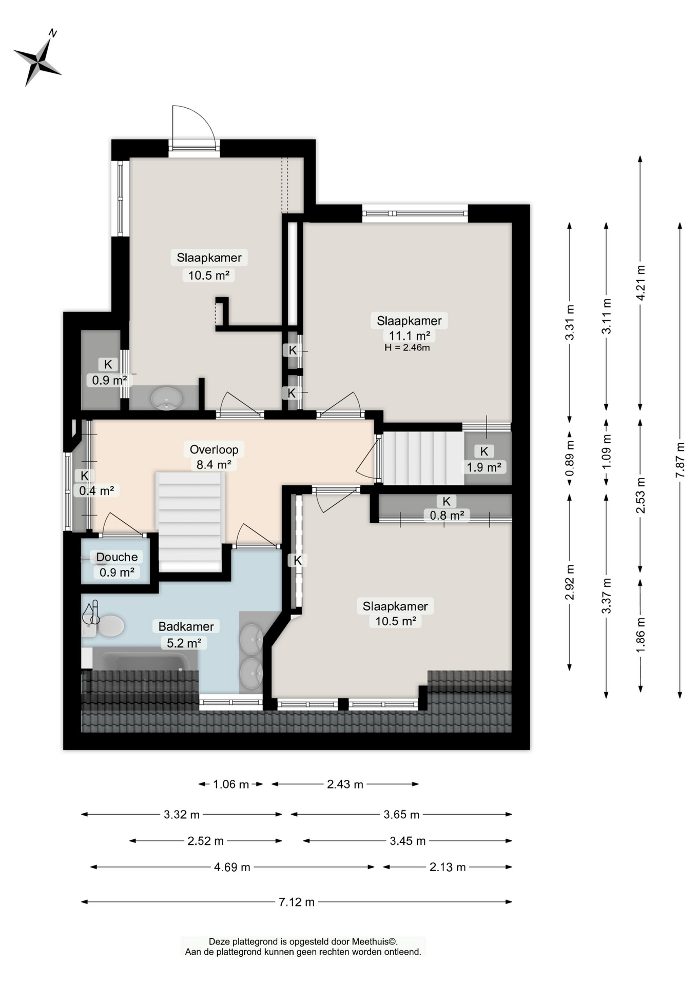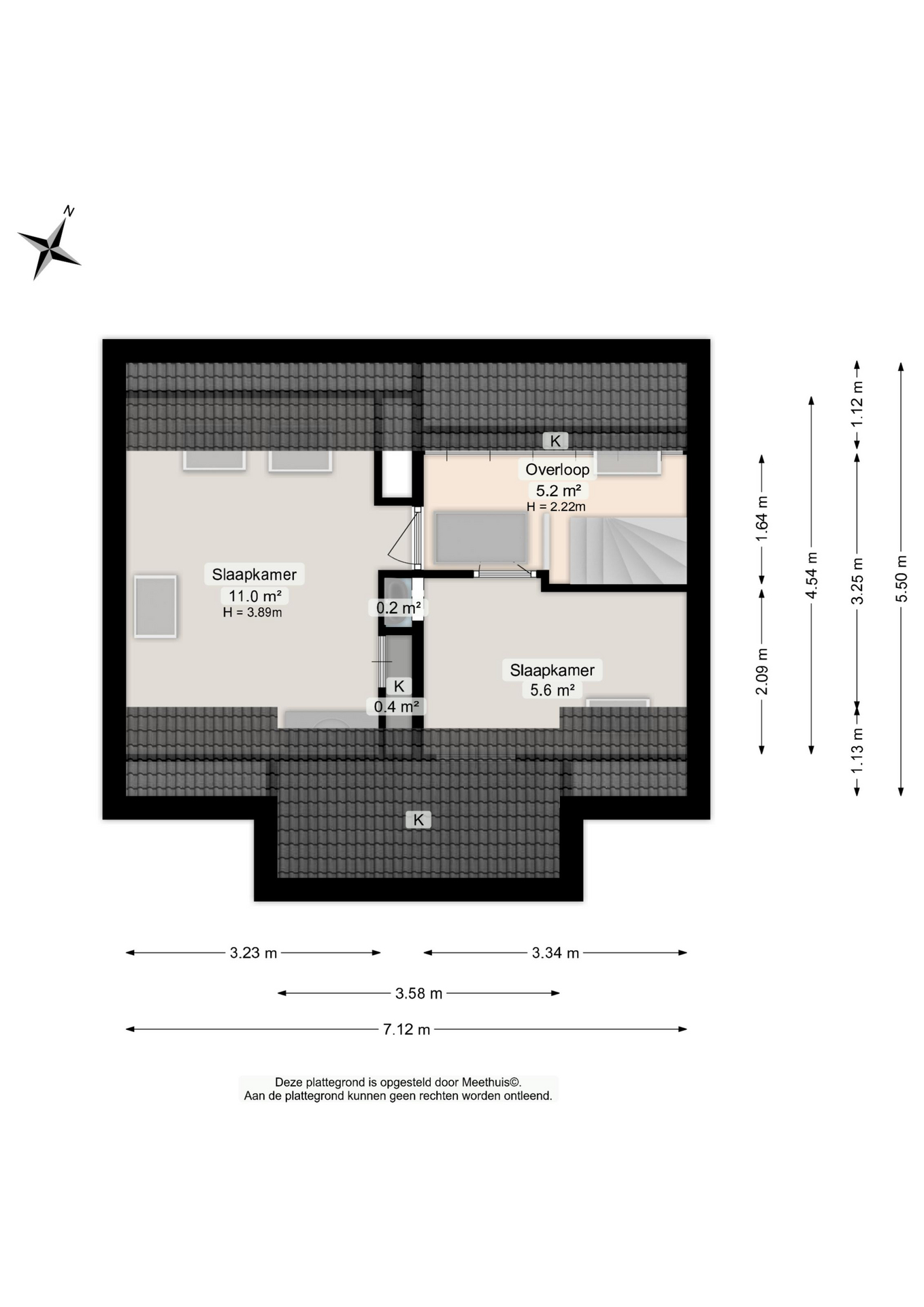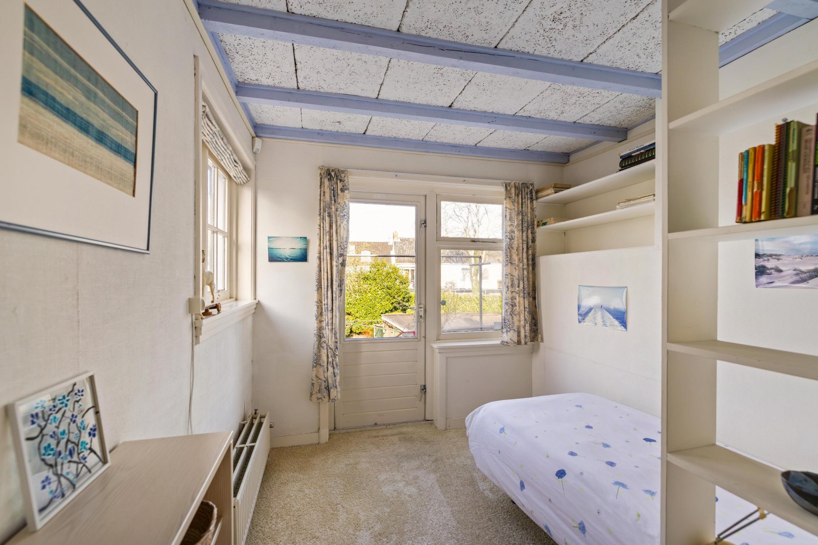 Overloop met bergruimte en twee slaapkamers. Dankzij de aanwezige dakramen zijn deze kamers heerlijk licht.