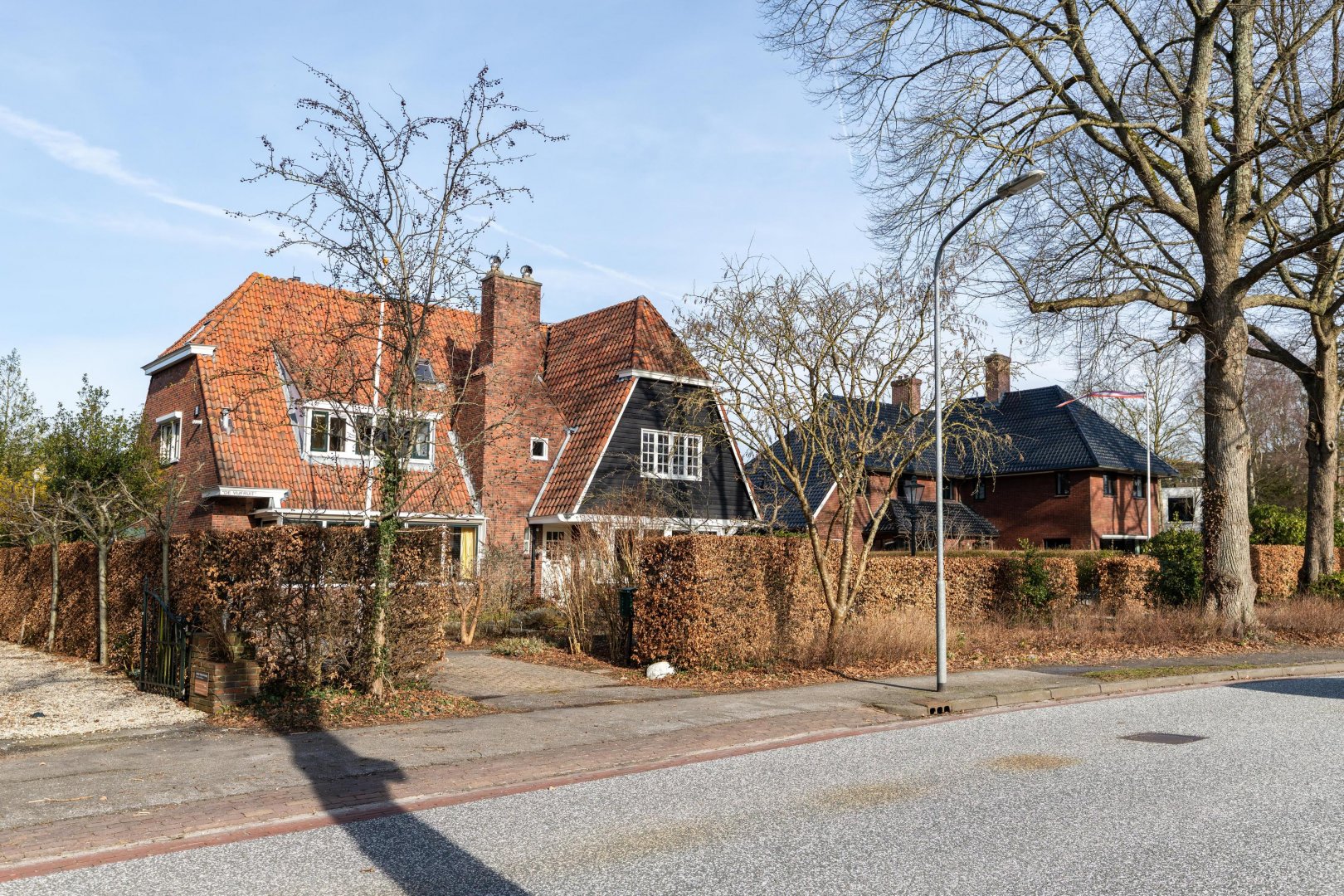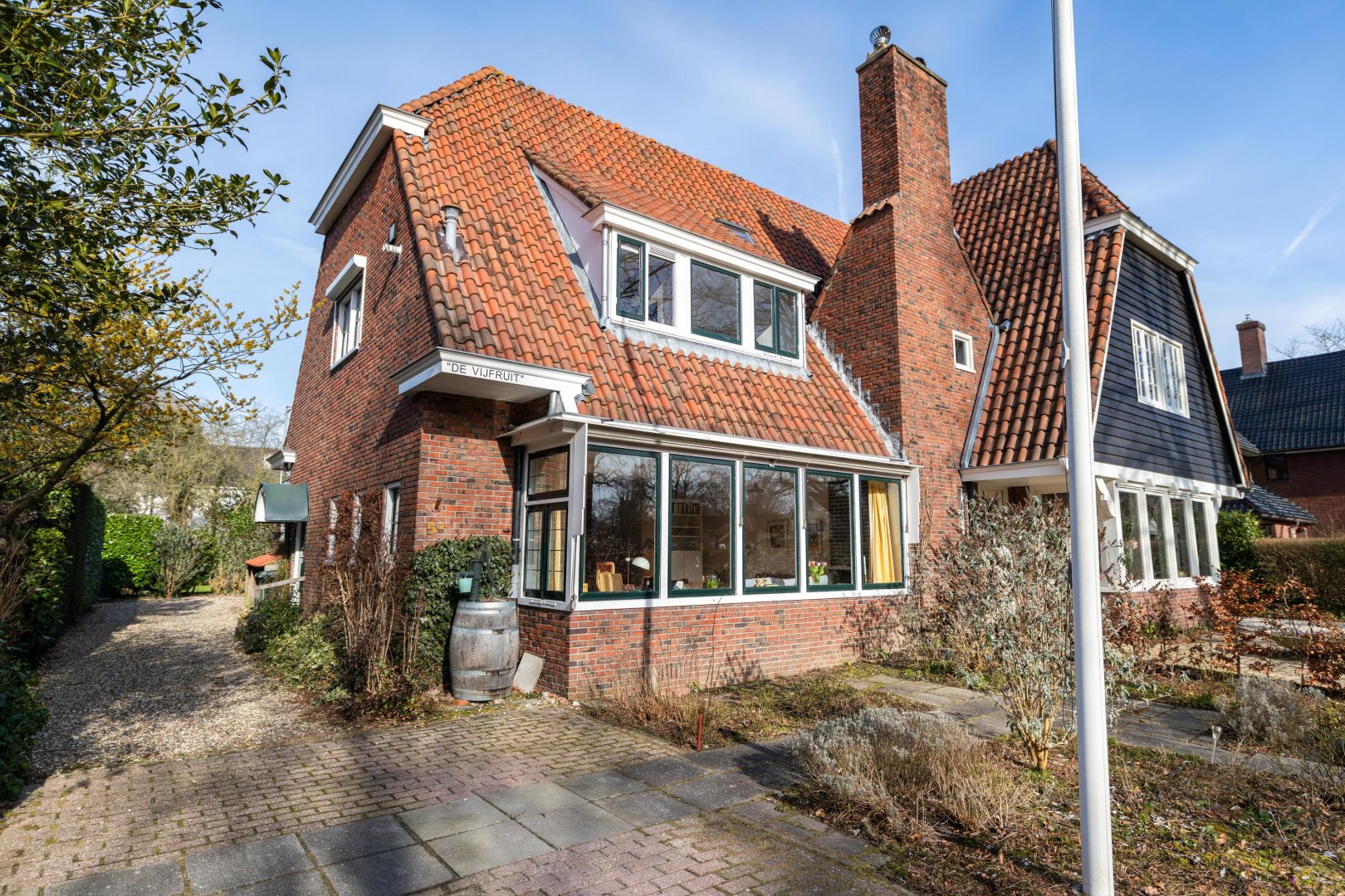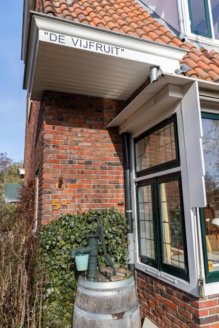 Aan één van de mooiste, lommerrijke lanen in de dorpskern van Haren staat dit karaktervolle half vrijstaande vooroorlogse jaren ’30 huis met de fraaie naam ‘De Vijfruit’. Een robuust gebouwd huis vol authentieke details, gelegen op een ruim perceel met een diepe voortuin, lange oprit, vrijstaande garage/berging en een heerlijk beschutte achtertuin.