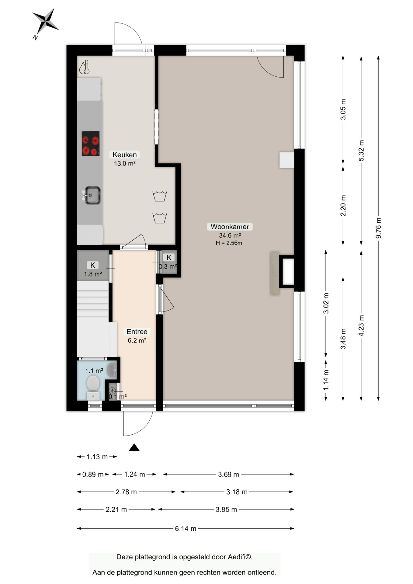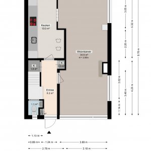 De begane grond verwelkomt u met een entree en hal, voorzien van toilet met fonteintje. De doorzon-woonkamer is opvallend licht dankzij de grote ramen aan beide zijden. Het zonlicht stroomt gul naar binnen en benadrukt de prettige sfeer die dit huis uitademt. Vanuit de eethoek kijkt u uit op het groen van de tuin, waar de middagzon uitnodigt tot ontspanning.