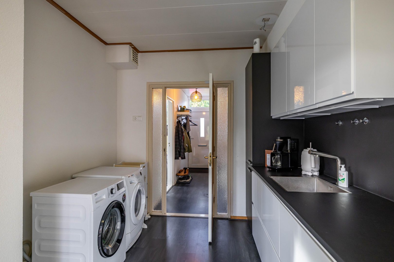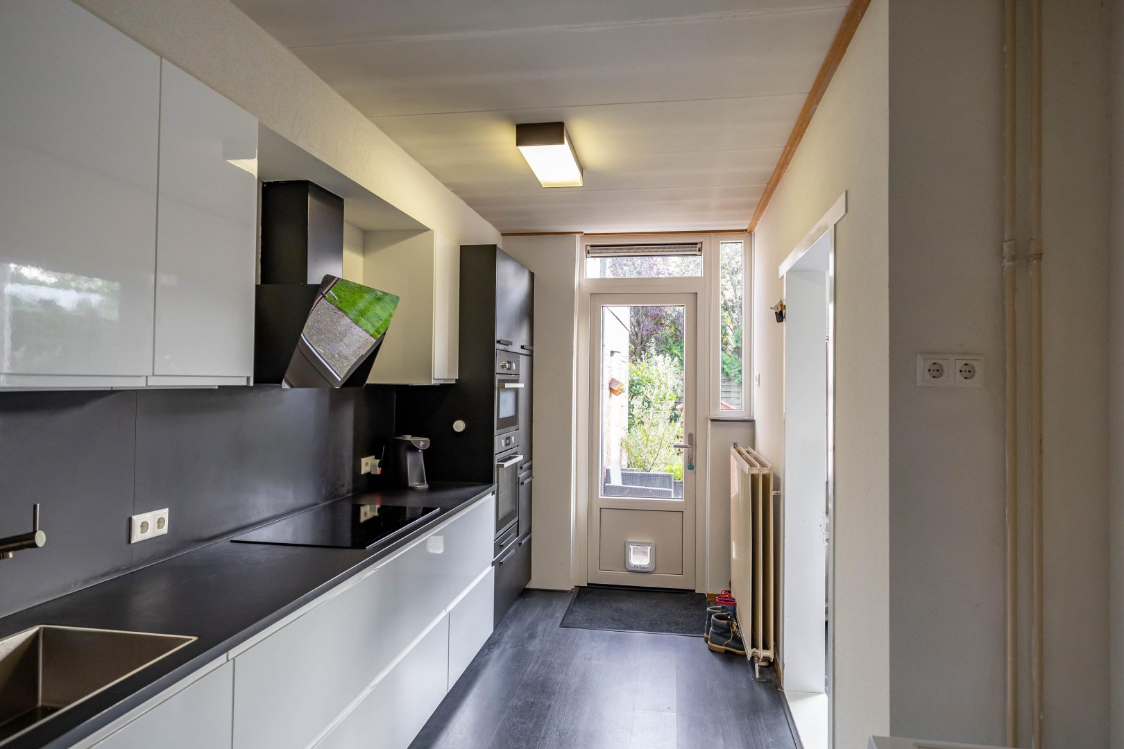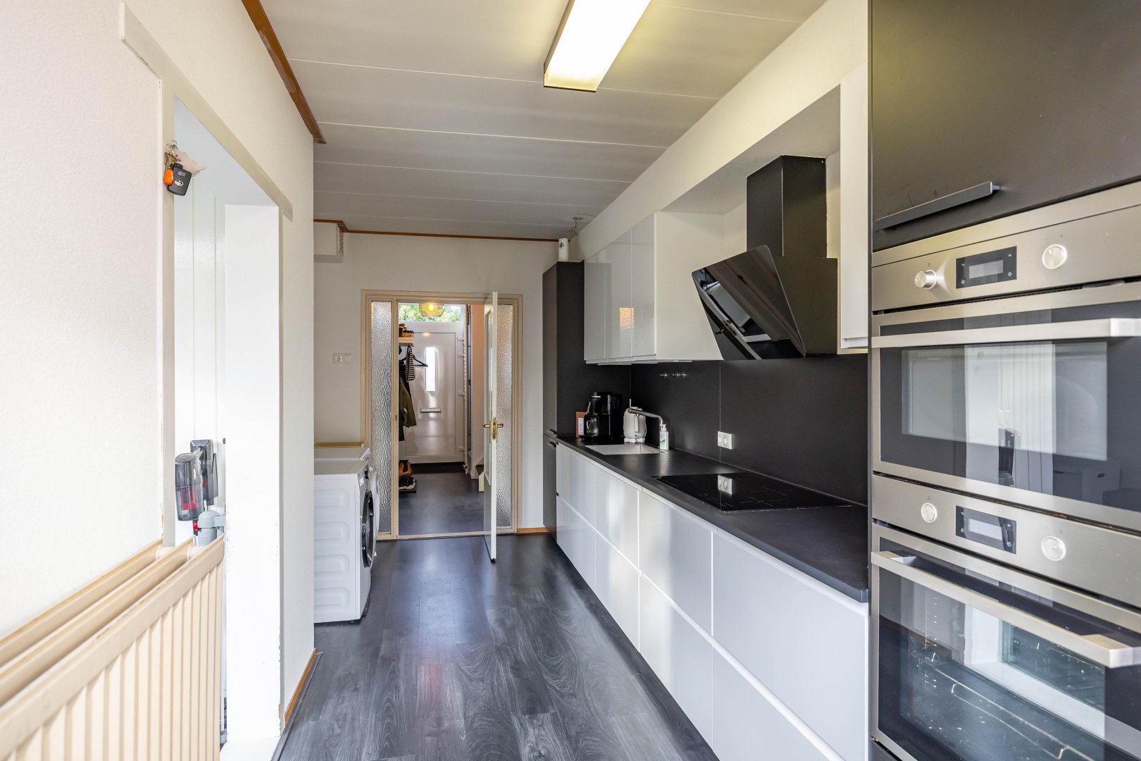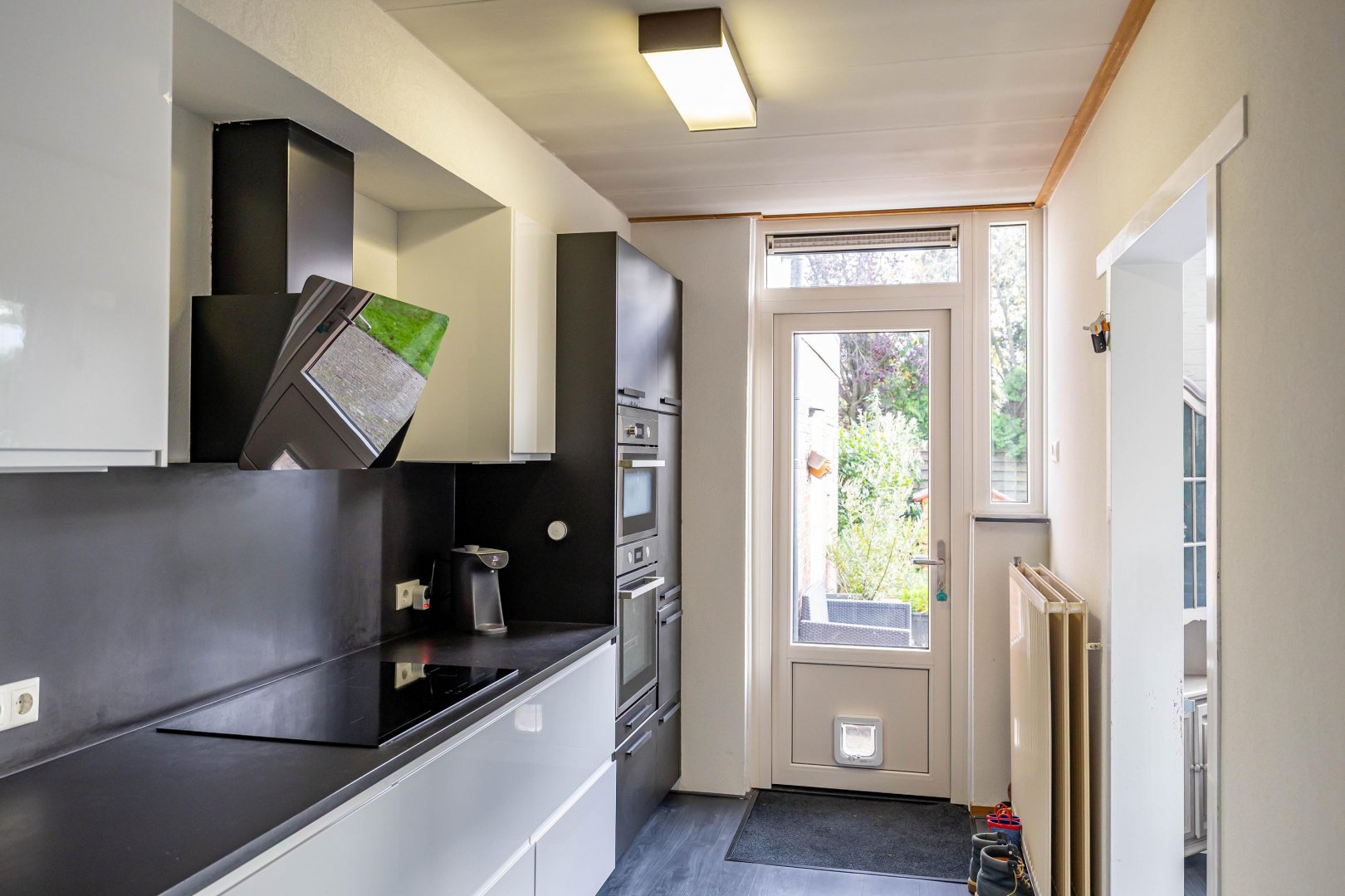 De half open keuken (2019) aan de achterzijde is voorzien van allerhande inbouwapparatuur. Hier bereidt u met plezier een maaltijd terwijl de kinderen spelen in de tuin.