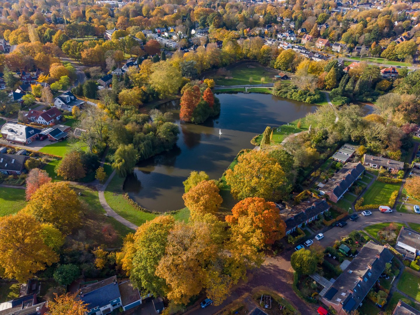 - Autoluw straatje in een centrale, groene omgeving