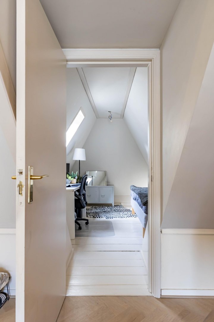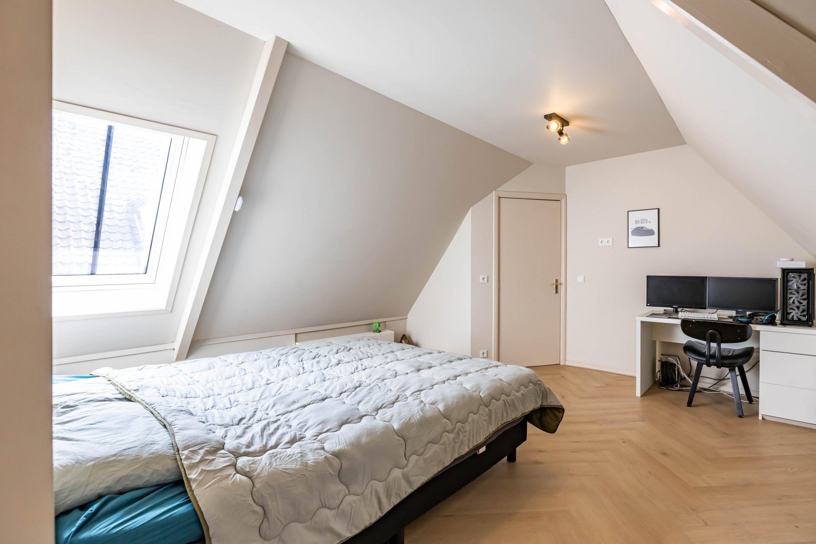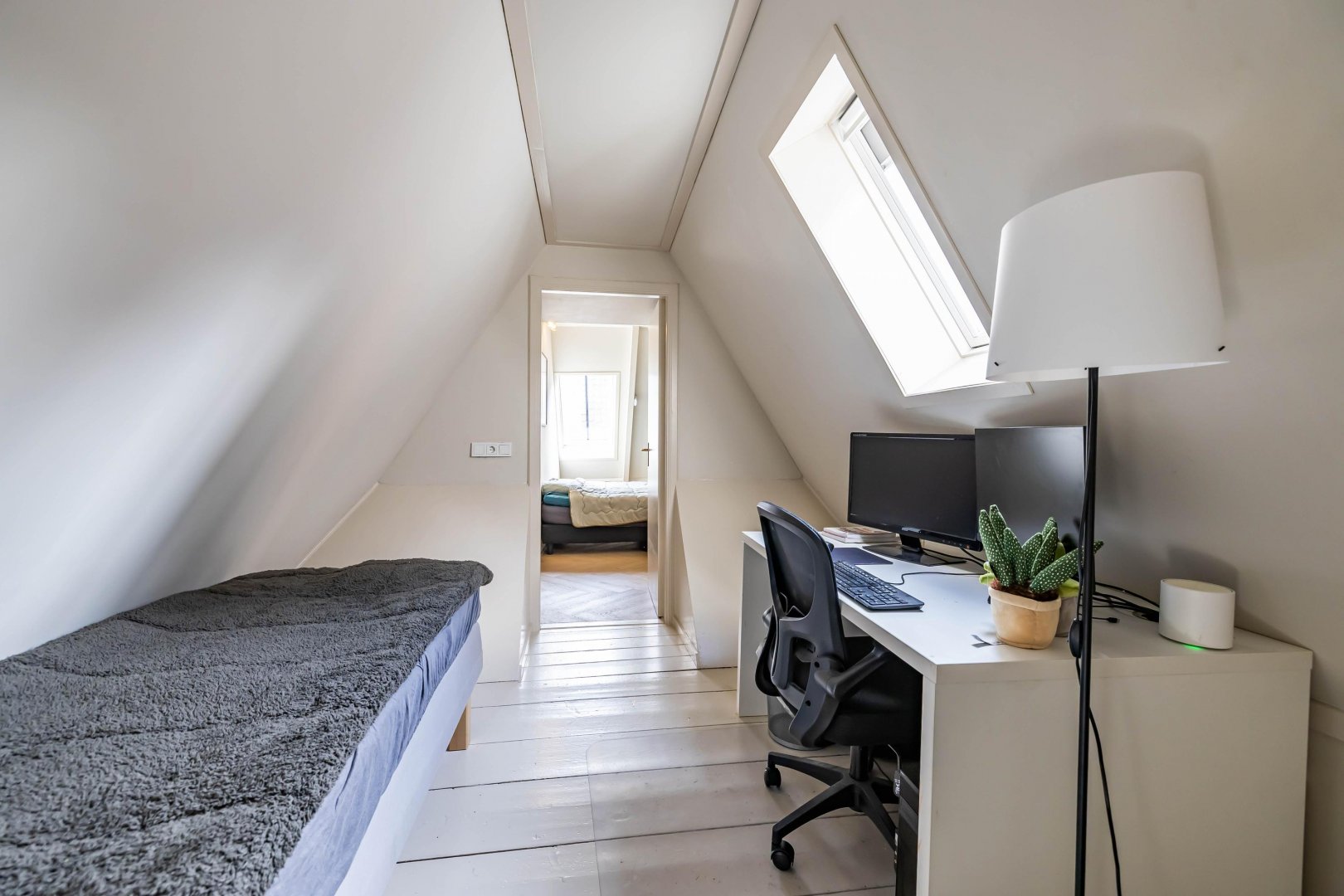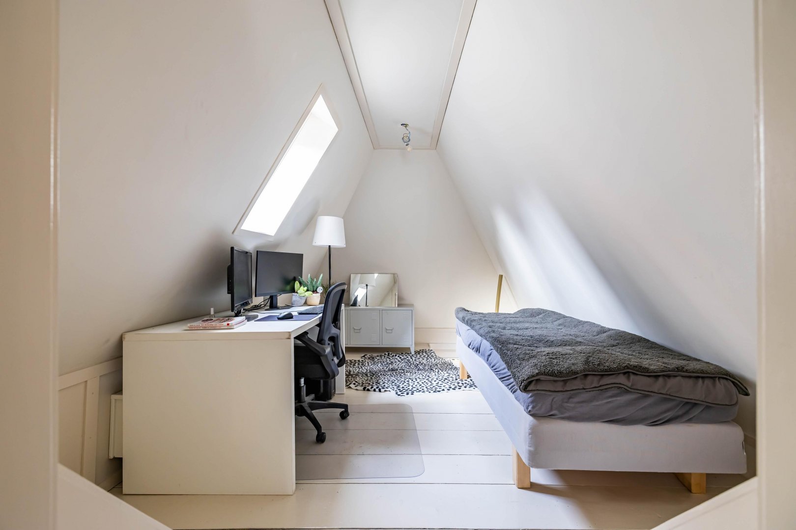Op de eerste verdieping zijn er diverse vaste kasten op de overloop, drie slaapkamers, een badkamer én een werkkamer welke bereikbaar is vanuit de slaapkamer en de ondergelegen tv kamer.