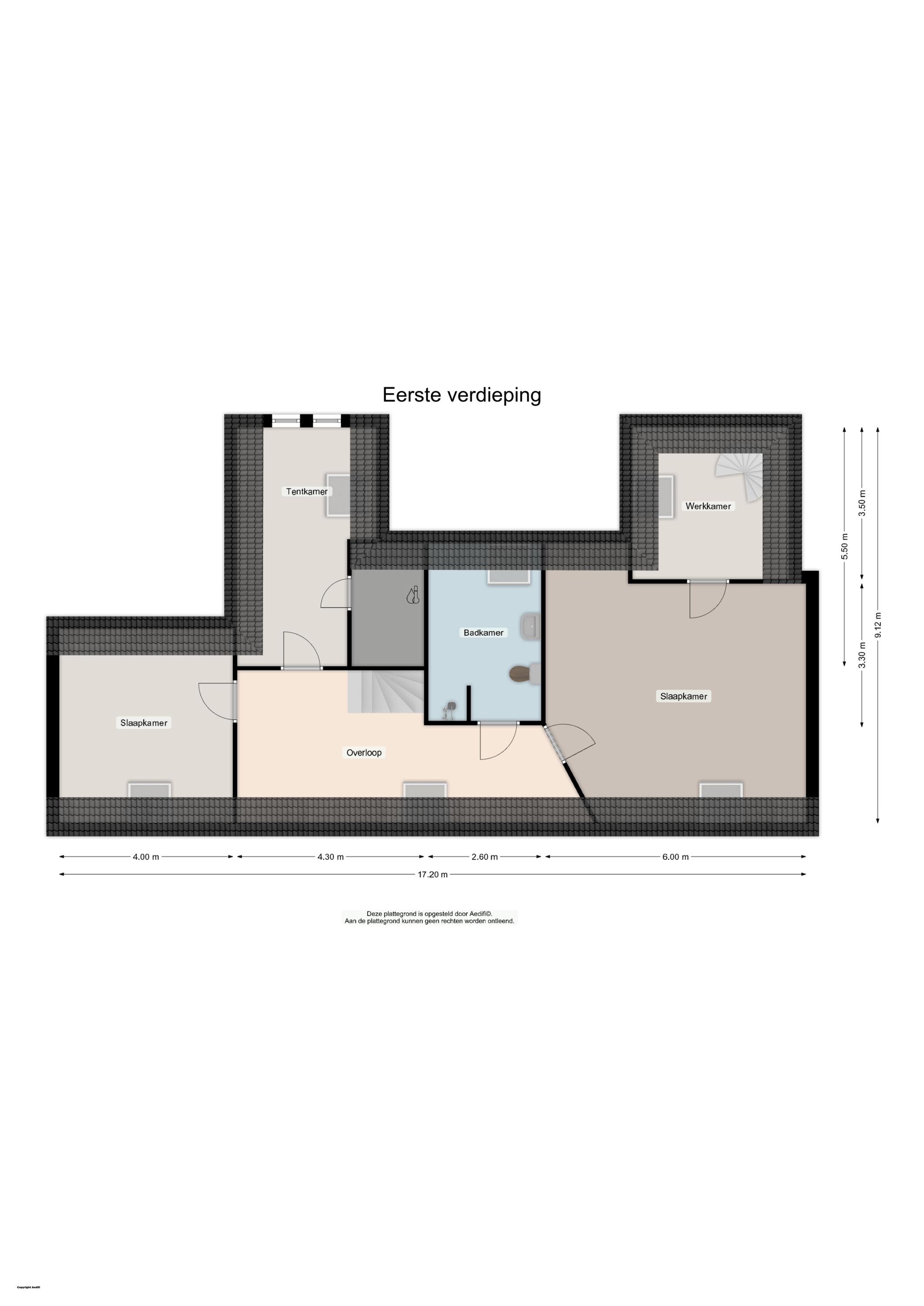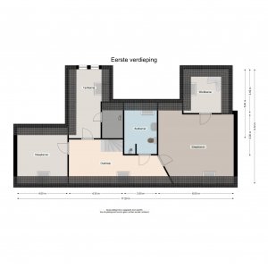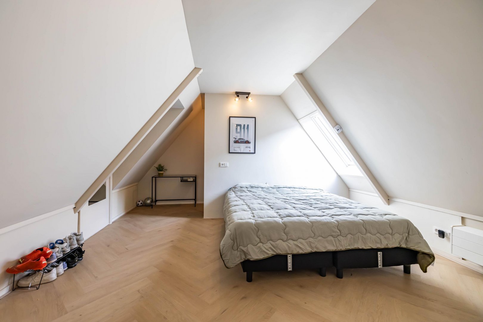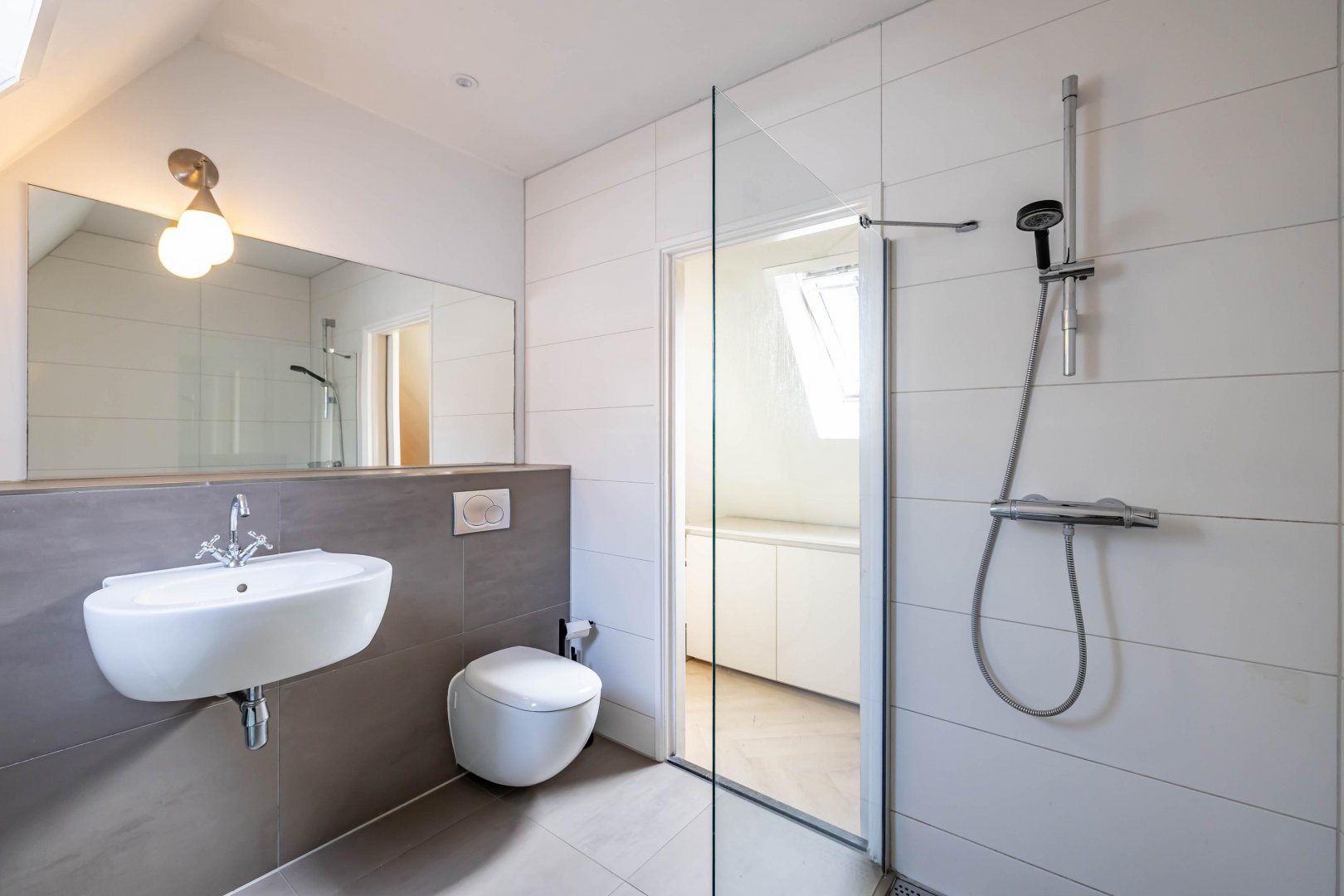 Op de eerste verdieping zijn er diverse vaste kasten op de overloop, drie slaapkamers, een badkamer én een werkkamer welke bereikbaar is vanuit de slaapkamer en de ondergelegen tv kamer.