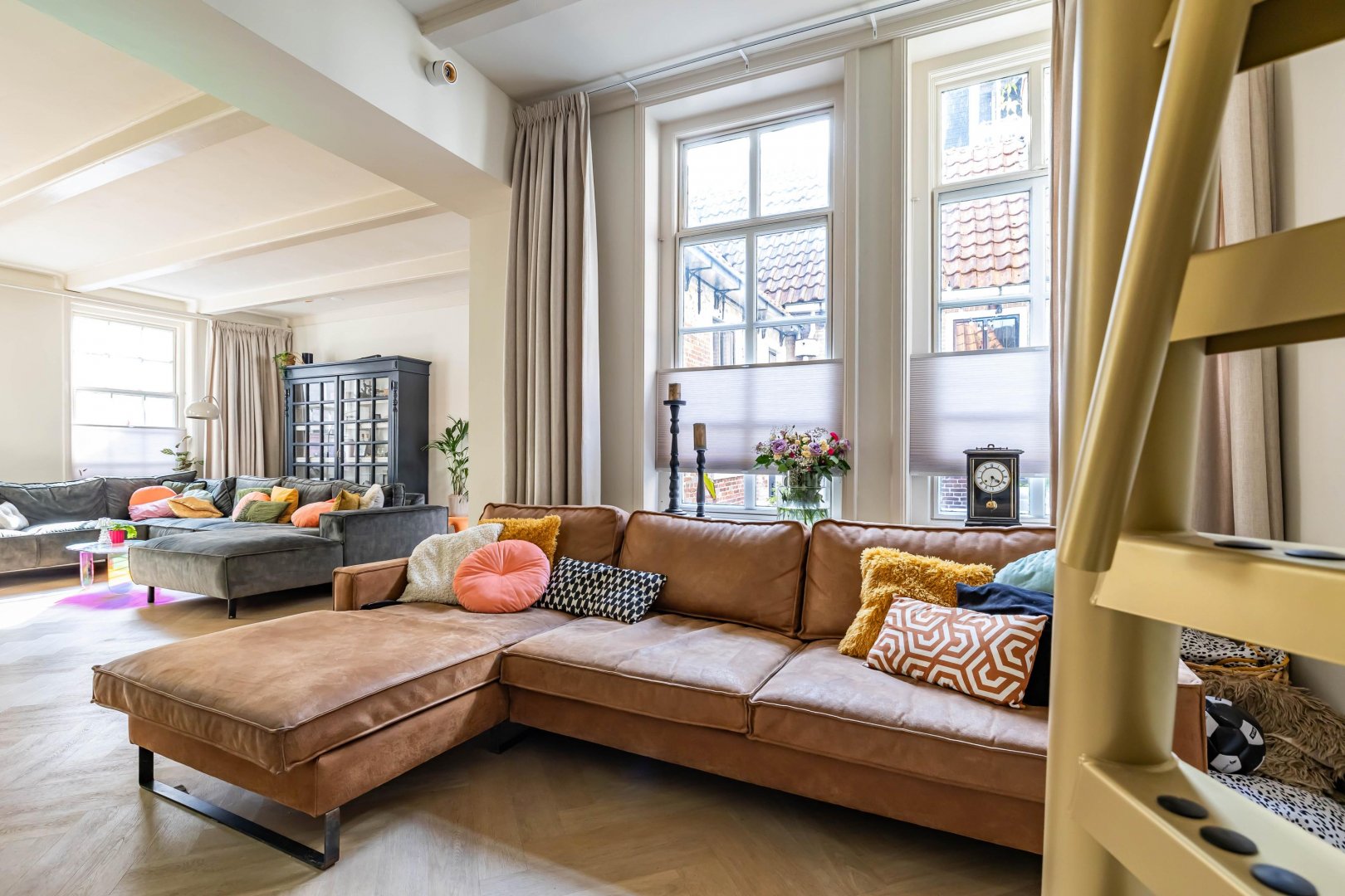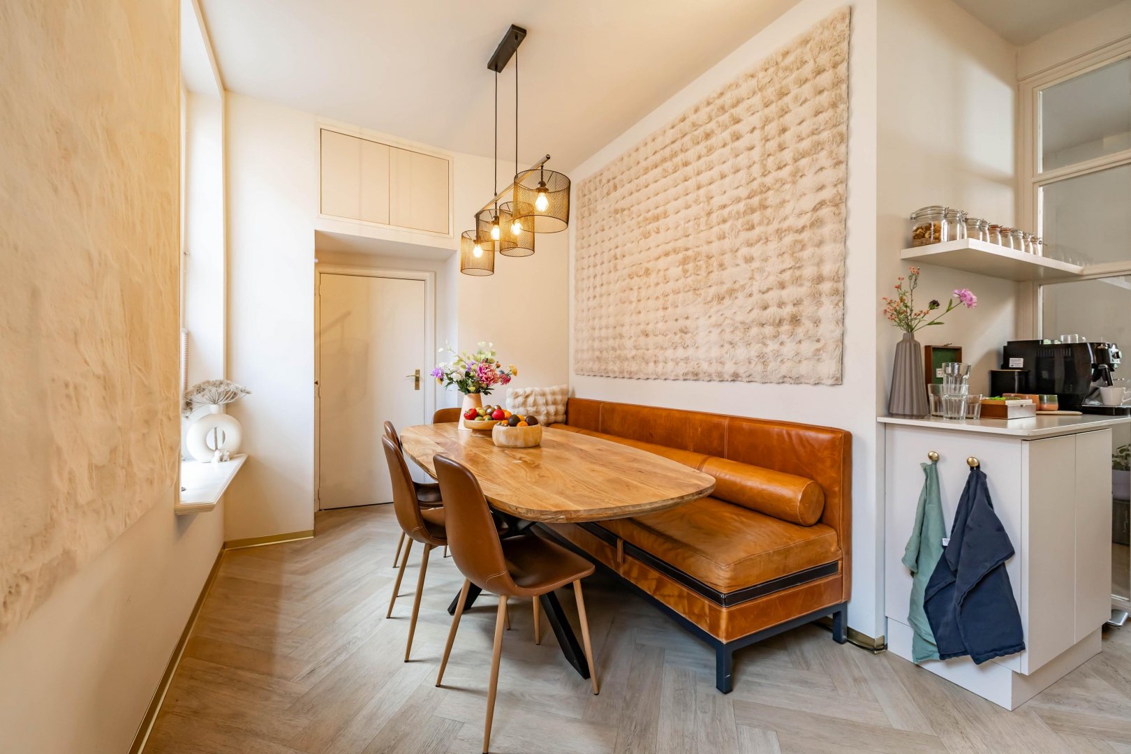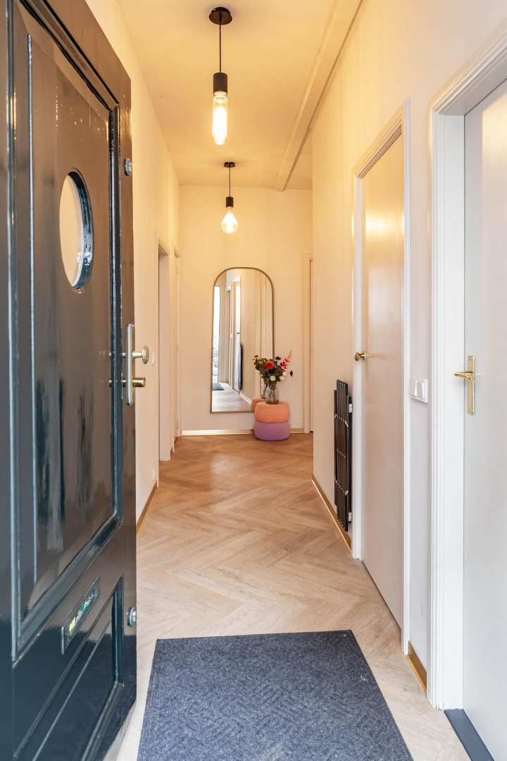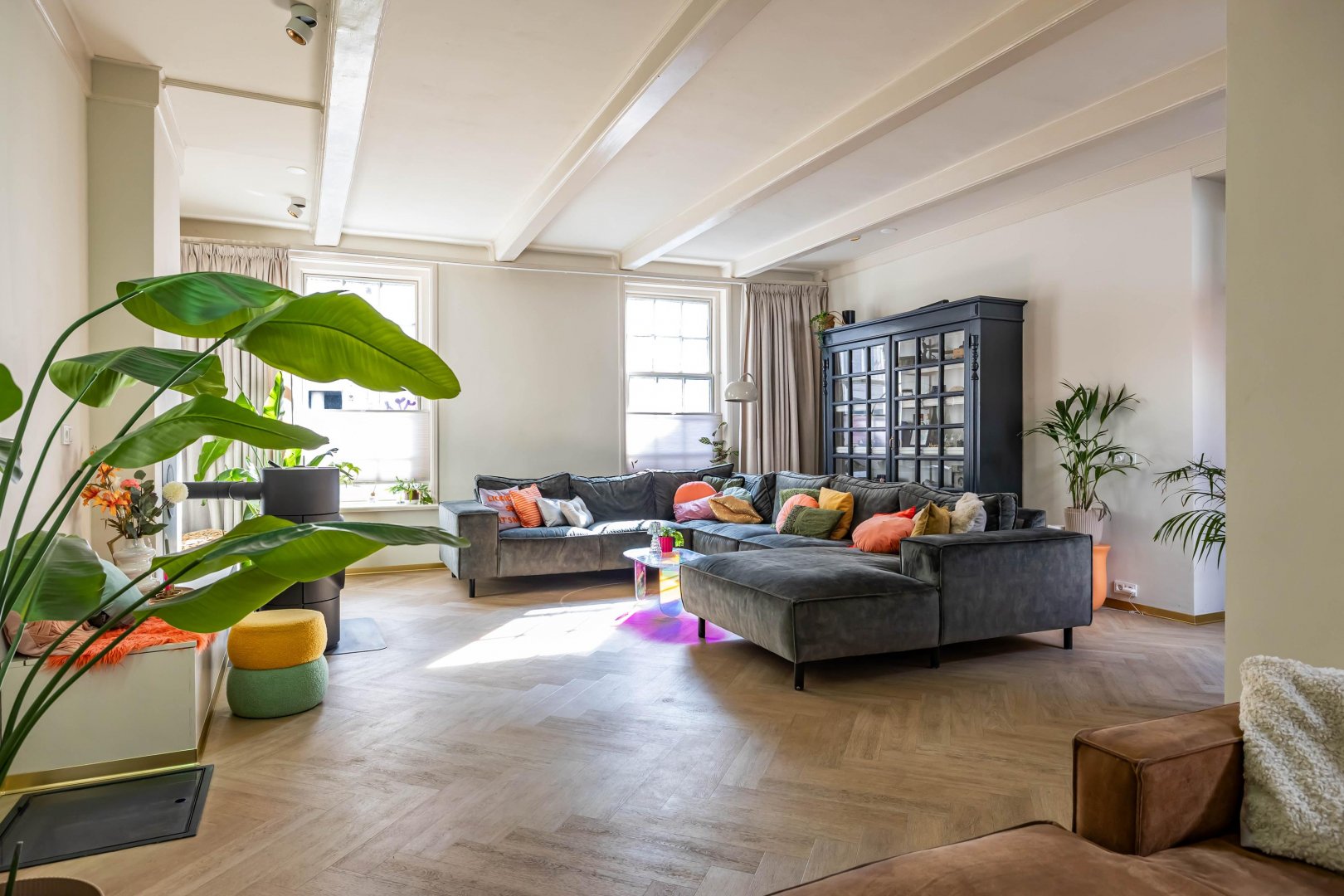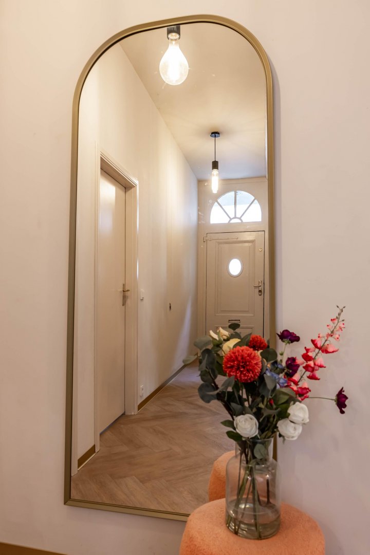 De neutrale visgraat PVC-vloer, de op maat gemaakte kasten, messing plinten & deurbeslag en de traditionele indeling maken het een waar stadsjuweel. De ruime woonkamer met hoge plafonds met monumentale balken heeft een fraaie zithoek rondom de pellet kachel en een glazen luik naar de wijnkelder. De luxe woonkeuken is voorzien inbouwapparatuur, een vaste bergkast en een royale eethoek.