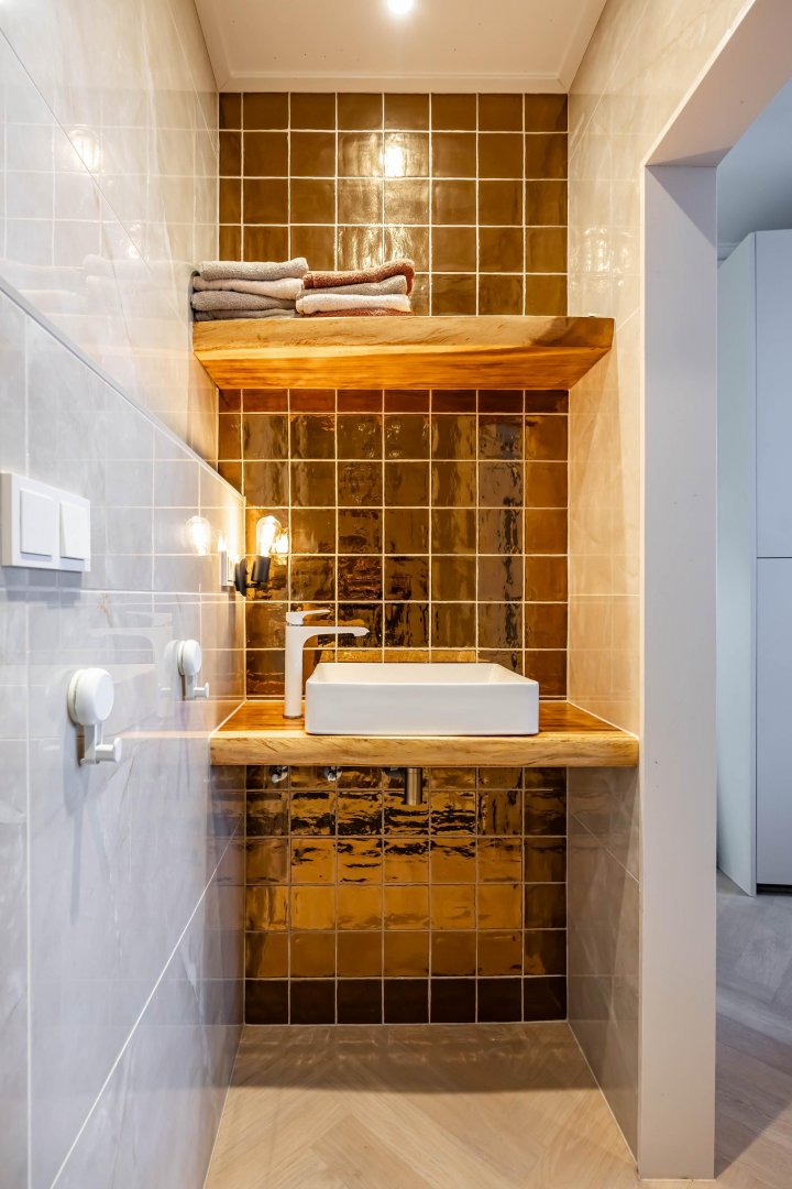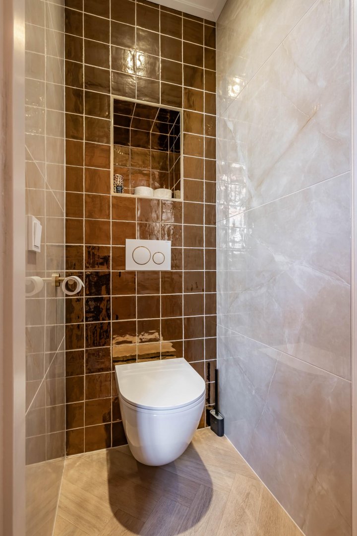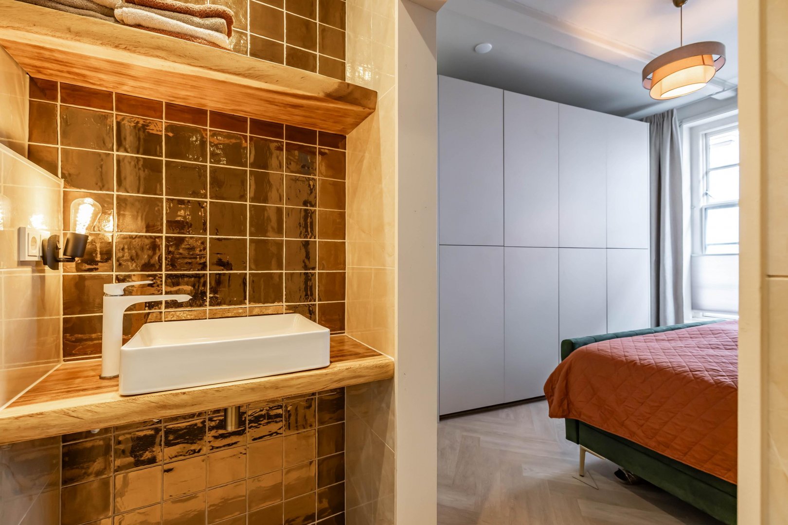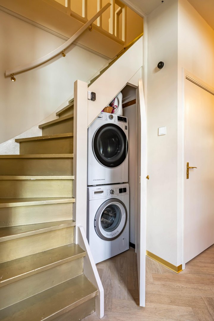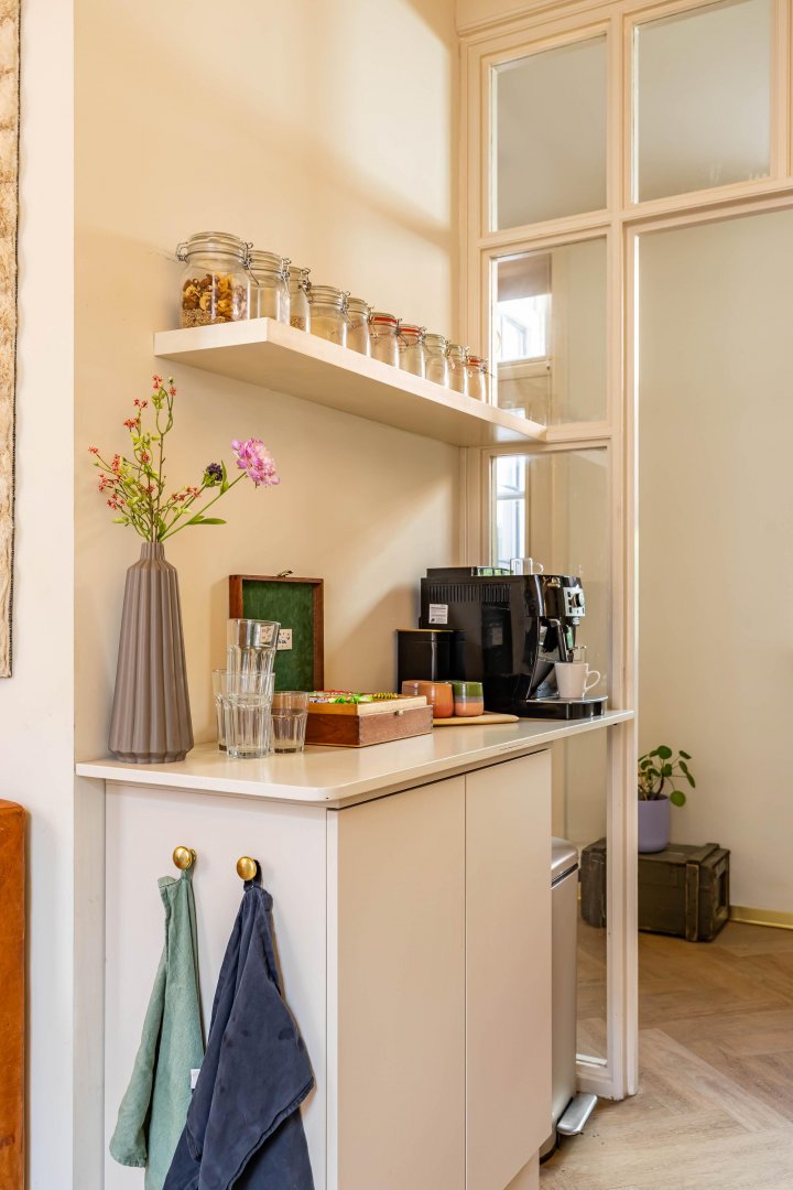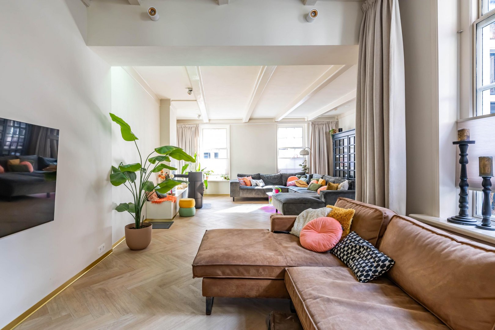 De neutrale visgraat PVC-vloer, de op maat gemaakte kasten, messing plinten & deurbeslag en de traditionele indeling maken het een waar stadsjuweel. De ruime woonkamer met hoge plafonds met monumentale balken heeft een fraaie zithoek rondom de pellet kachel en een glazen luik naar de wijnkelder. De luxe woonkeuken is voorzien inbouwapparatuur, een vaste bergkast en een royale eethoek.