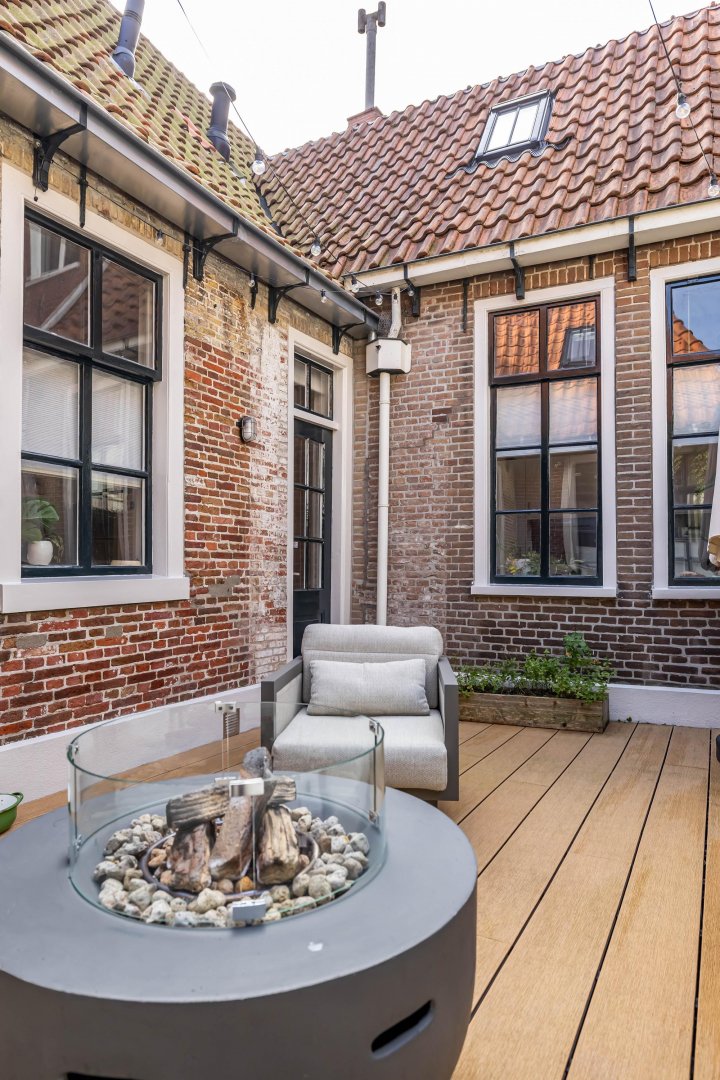 De gezellige patio biedt een beschutte, sfeervolle buitenruimte. Midden in de stad en toch erg privé. Gelegen in de bruisende binnenstad van Groningen, op loopafstand van de Grote Markt, Rijksuniversiteit, openbaar vervoer, winkels, restaurants en alle overige denkbare voorzieningen.