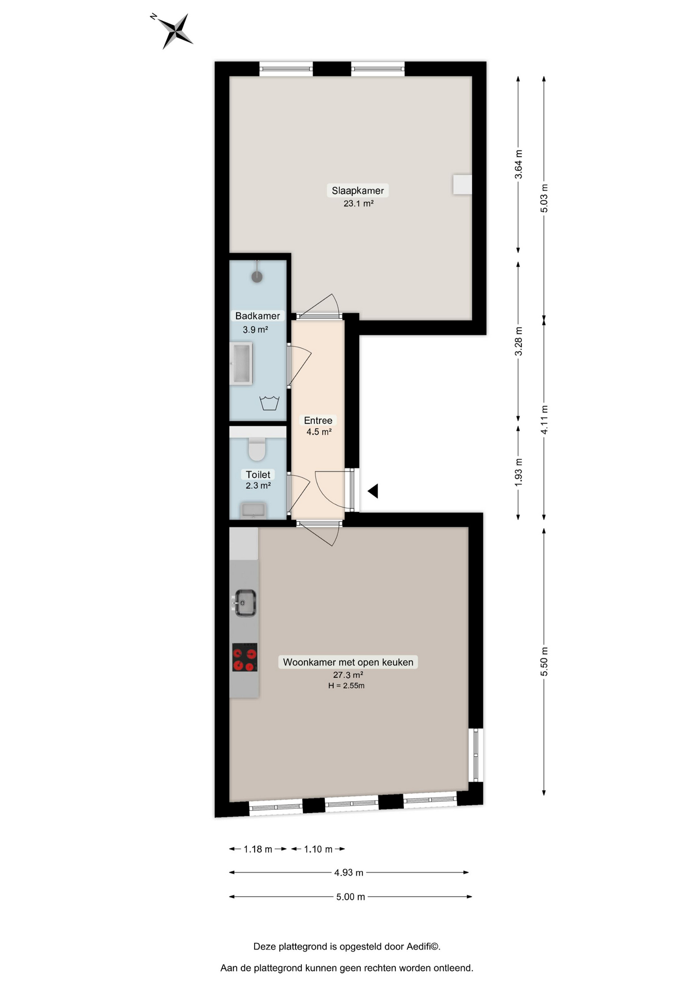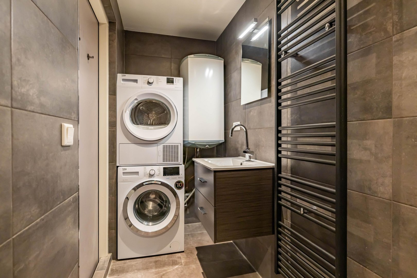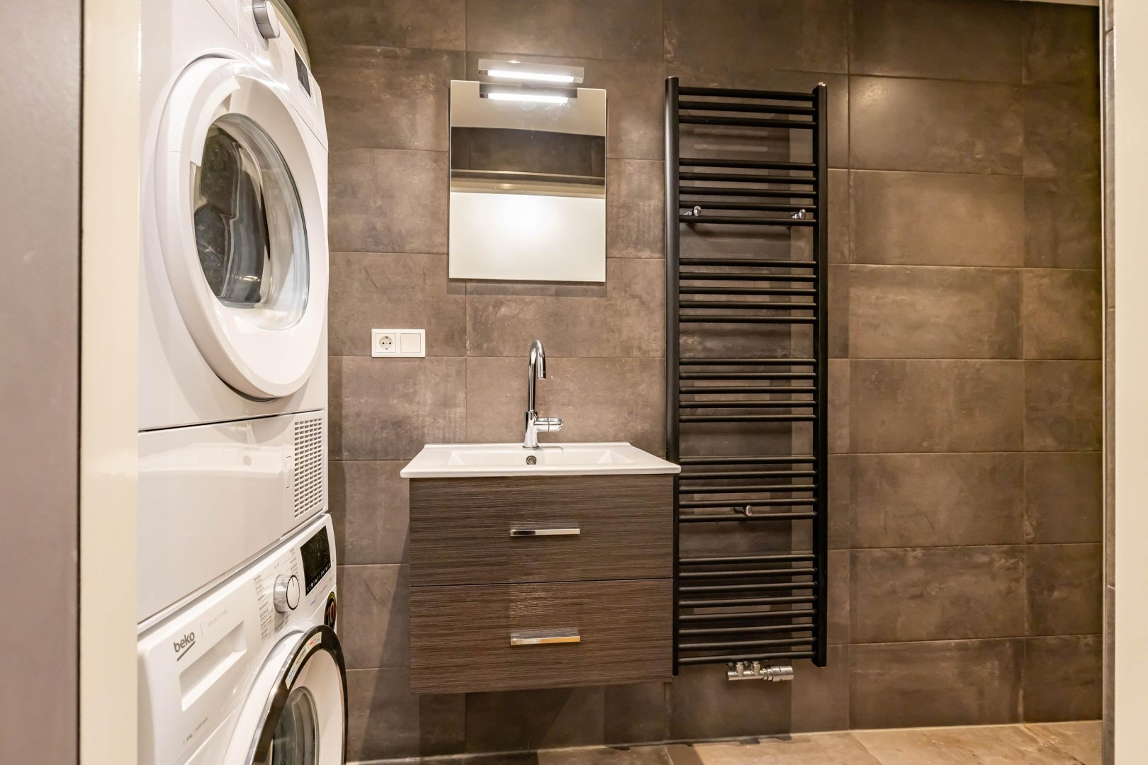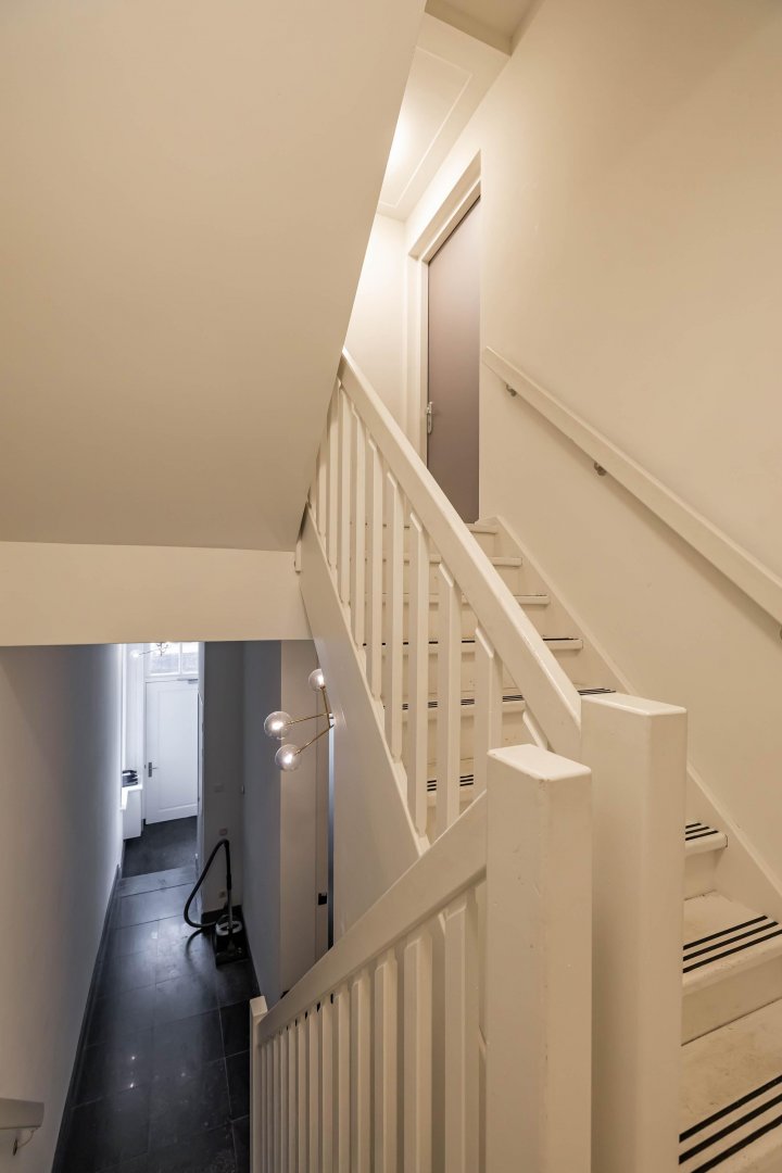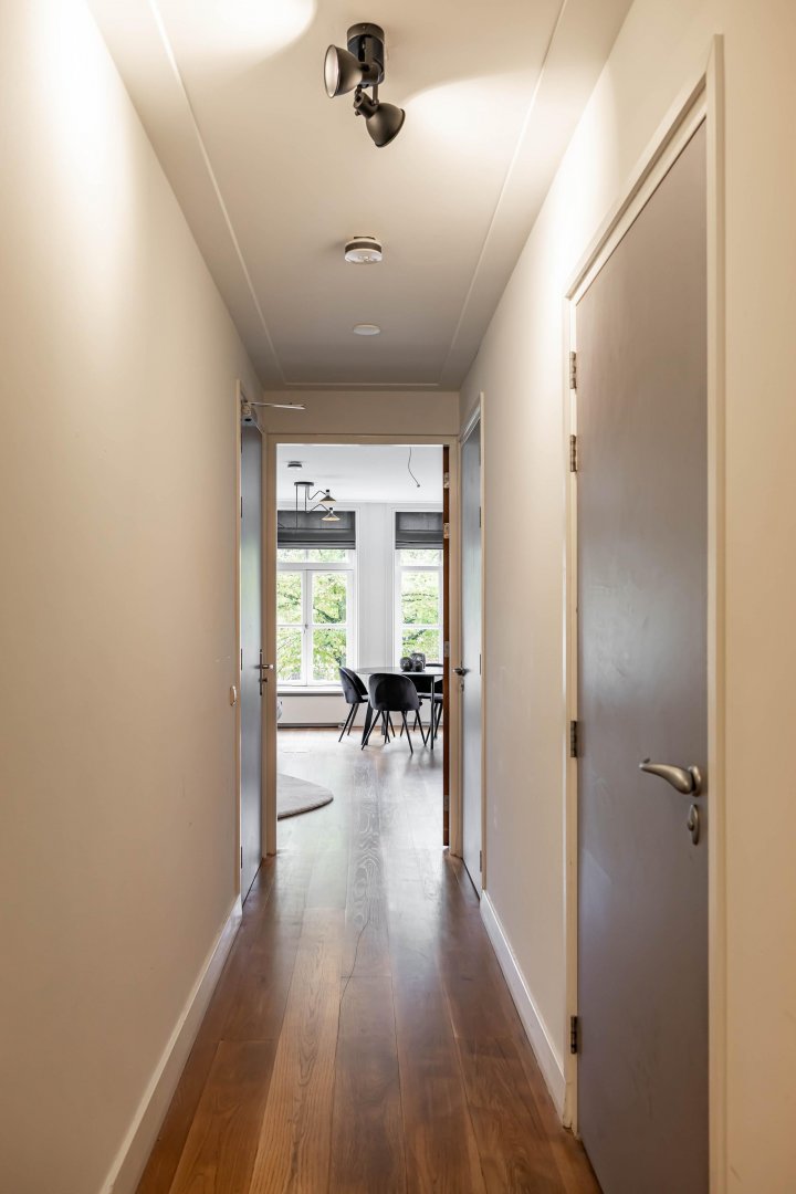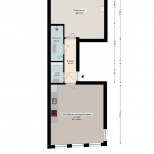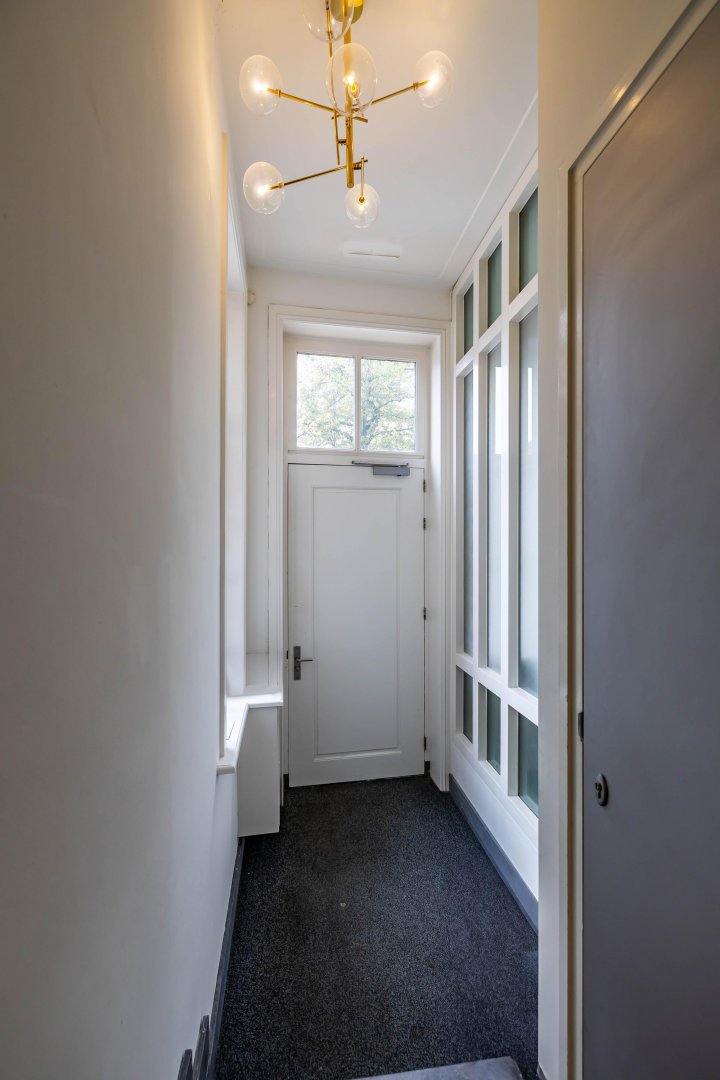 Het appartement beschikt over een gezamenlijke entree op de begane grond met trapopgang naar de verdieping. Vanuit de hal bereik je de living van 27 m2 met fraai uitzicht en moderne keuken. In de hal is een separaat toilet en een badkamer met inloopdouche, wastafel en aansluitingen voor de wasmachine – droger. Op de achterzijde is een zeer riante slaapkamer van 23 m2.