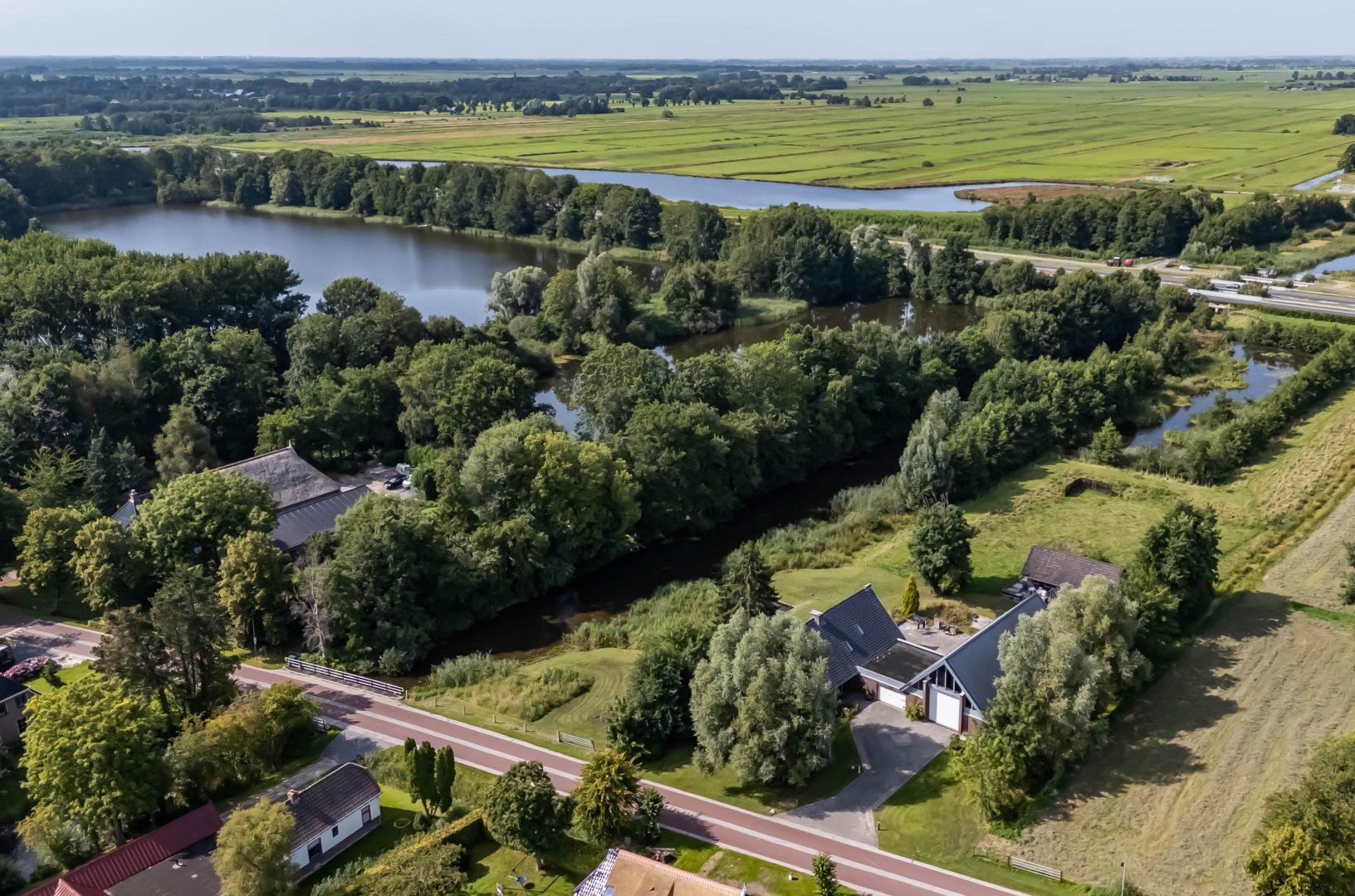 De omgeving biedt volop recreatieve voorzieningen, op het perceel is een eigen insteek haventje voor een boot met de mogelijkheid om naar het Leekstermeer te gaan met al het vertier rondom het meer. Uitvalswegen en zowel Groningen als Leek zijn op korte afstand met de auto te bereiken.