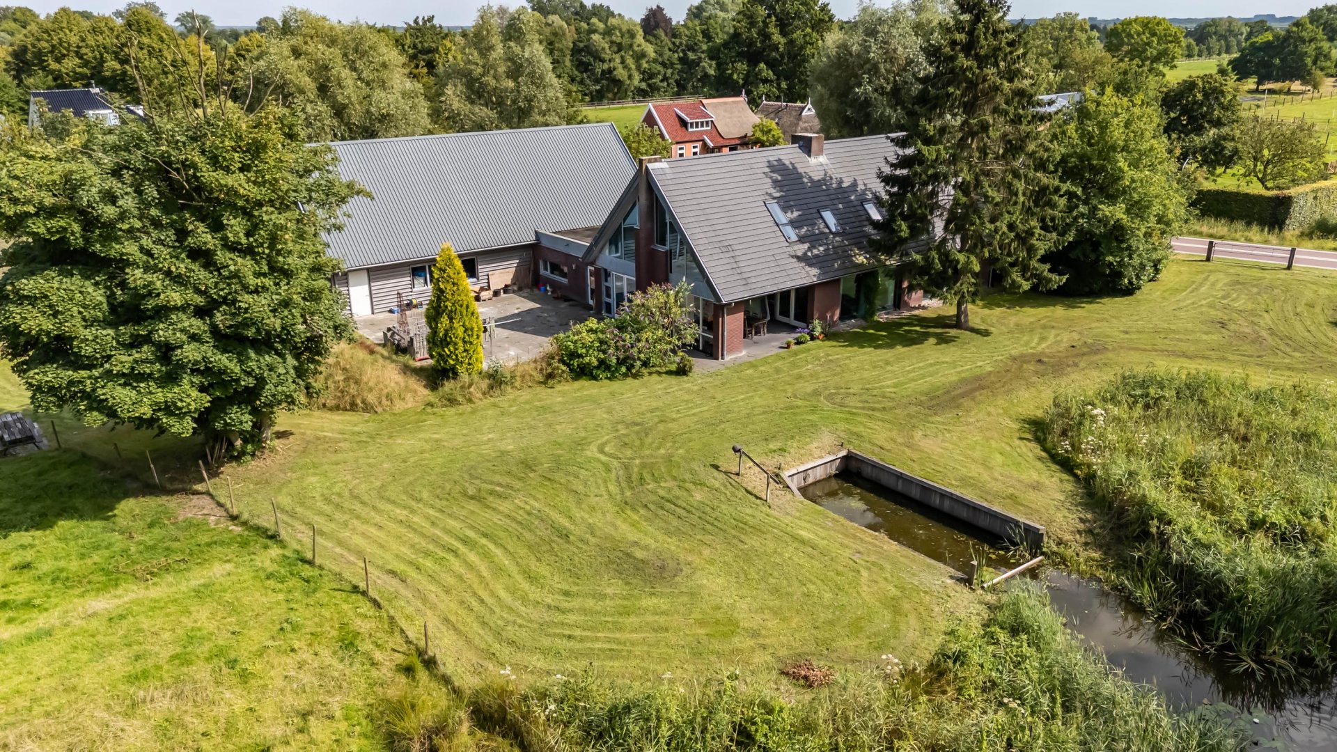 Op een unieke plek, direct aan het Lettelberterdiep met toegang tot het Leekstermeer, staat dit moderne huis met zeer ruime aangebouwde schuur. Het geheel is gelegen op een bijzonder perceel van ruim 14.931 m2 waarbij ruim 1 hectare als natuurgrond is aangemerkt met water.