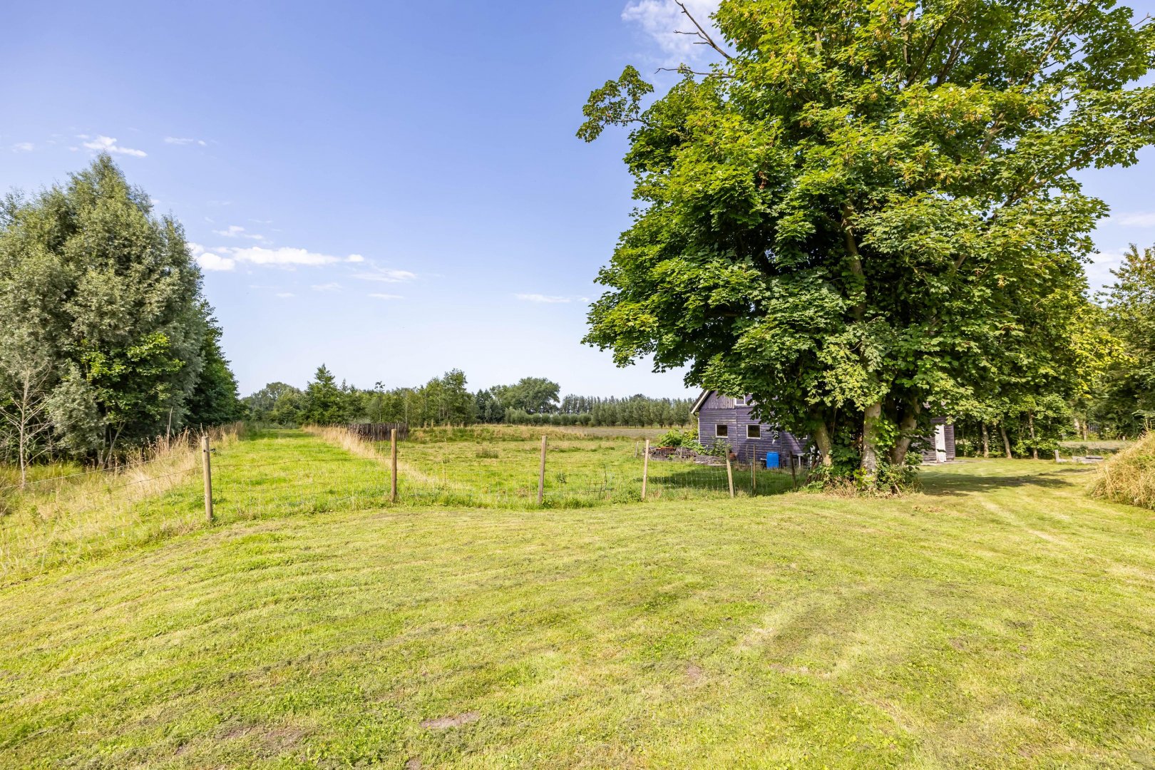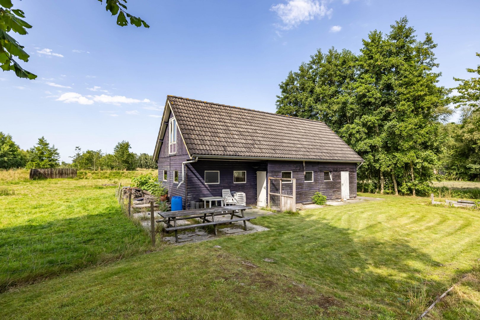 Het perceel van ruim 1,4 hectare bestaat voor een deel uit natuurgronden met water, daarnaast blijft er nog voldoende ruimte over voor het houden van schapen of ander kleinvee. Achter het huis staat nog een houten vrijstaande garage – berging van ruim 60 m2 en biedt ook naar eigen keus veel gebruiksmogelijkheden.