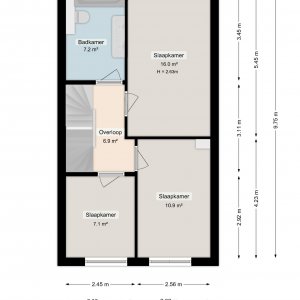 In deze kamer ook plaats voor een grote kledingkast en bergruimte achter de knieschotten.