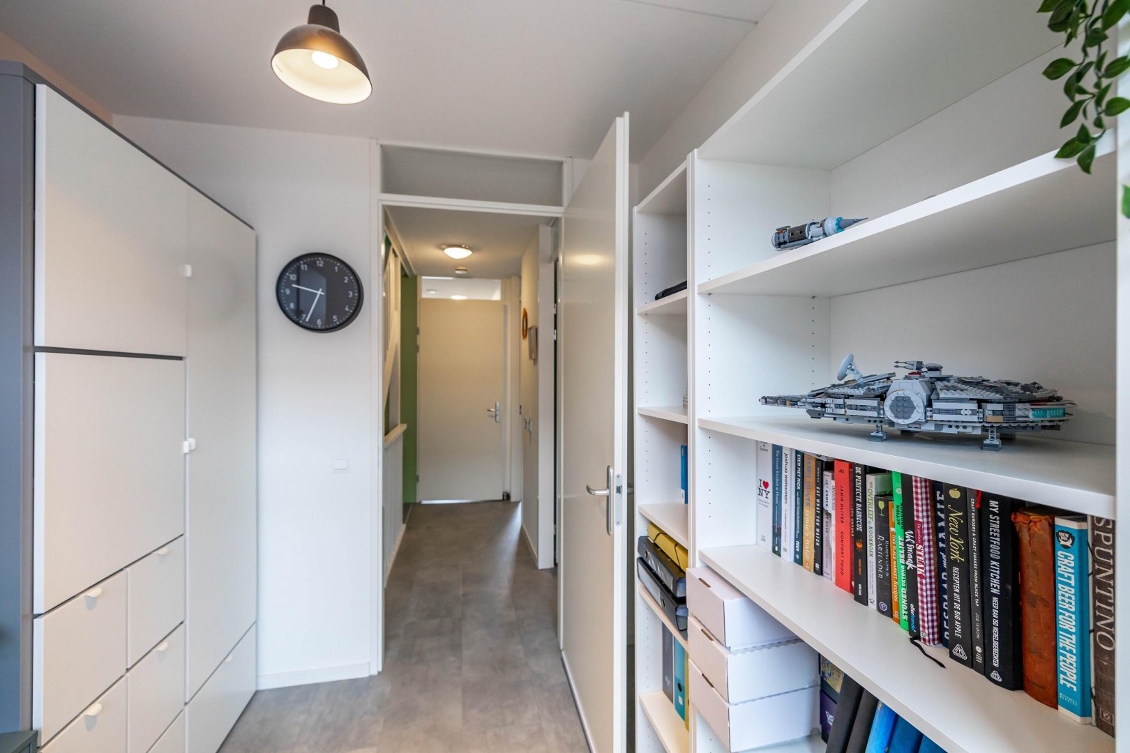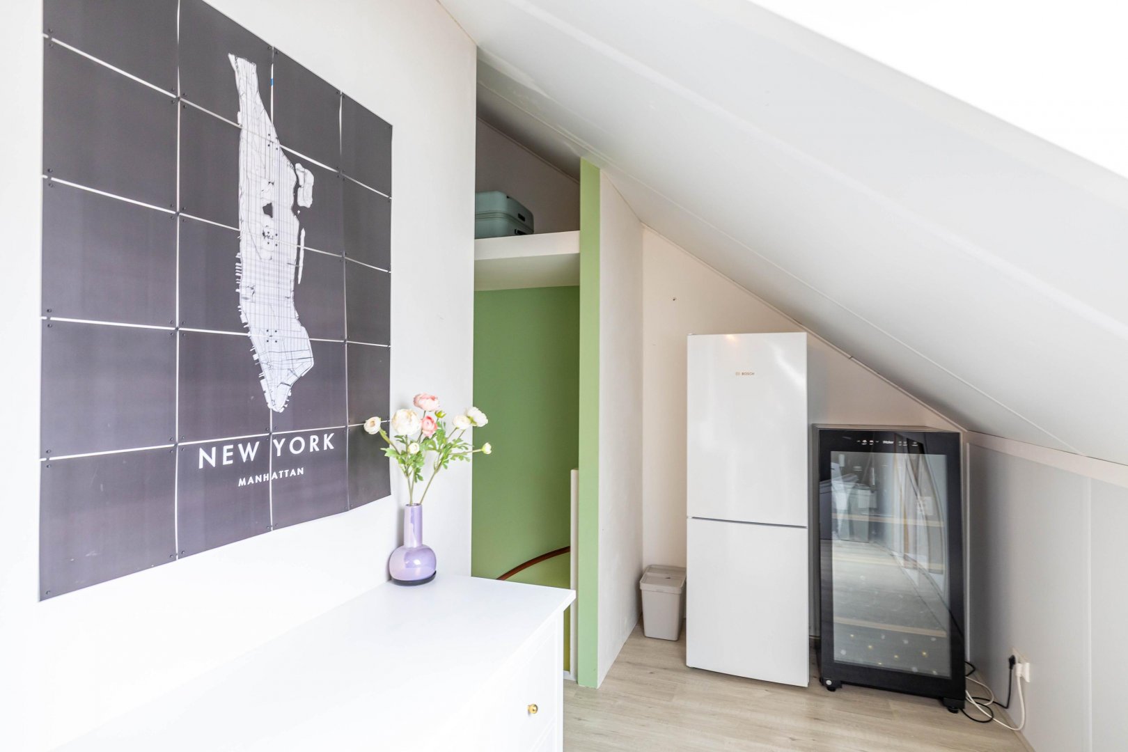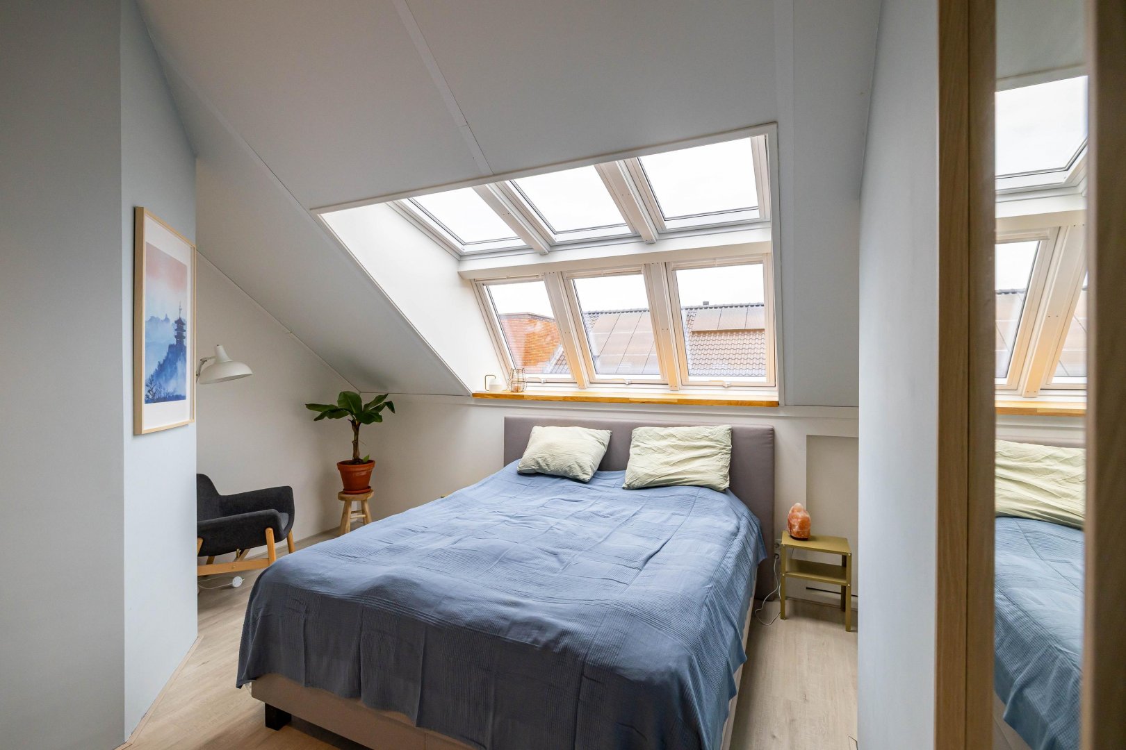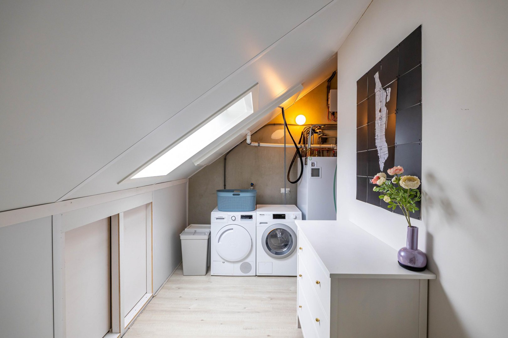 Tweede verdieping: grote overloop met wasruimte (plaats voor wasmachine en droger), bergruimte en cv-opstelling (warmtepomp). Vierde sfeervolle slaapkamer met prachtige 'dakserre' voorzien van 6 dakramen (kunststof, tripleglas, verduisteringsgordijnen en elektrisch bedienbaar). Vanuit je bed de sterrenhemel zien!