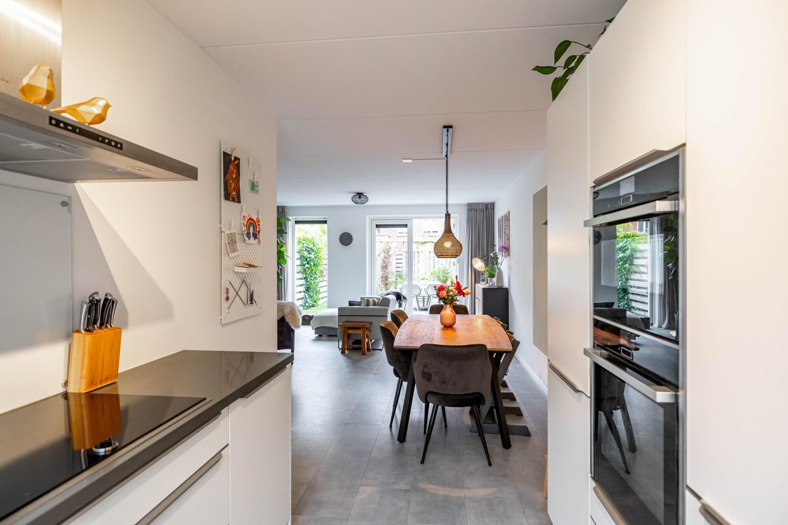 Entree, hal, modern toilet +wastafeltje, meterkast (incl. waterontharder en glasvezel). L-vormige woonkamer (tuingericht) met pvc-vloer, vloerverwarming en openslaande deuren naar de tuin. Bergkast onder de trap, moderne luxe keuken (straatgericht) in U-vormige opstelling met Neff inbouwapparatuur. O.a. oven, combi-oven, inductiekookplaat met rvs afzuiging, vaatwasser, Quooker, koelkast, vriezer en composiet werkblad.