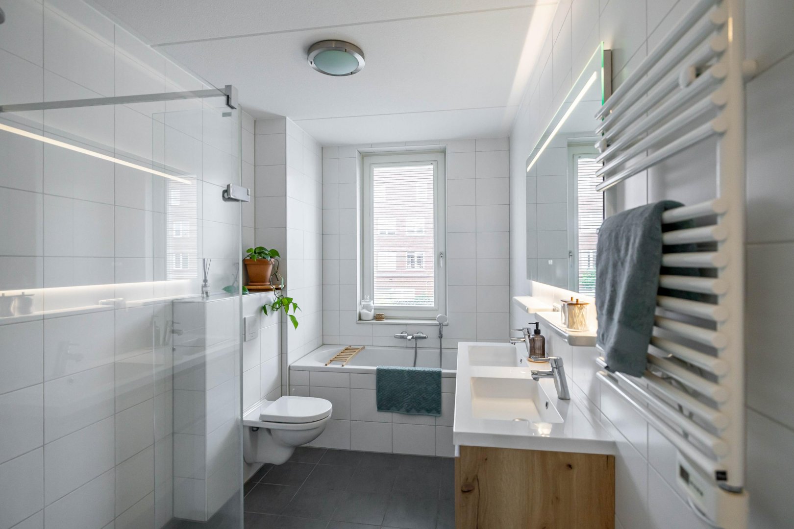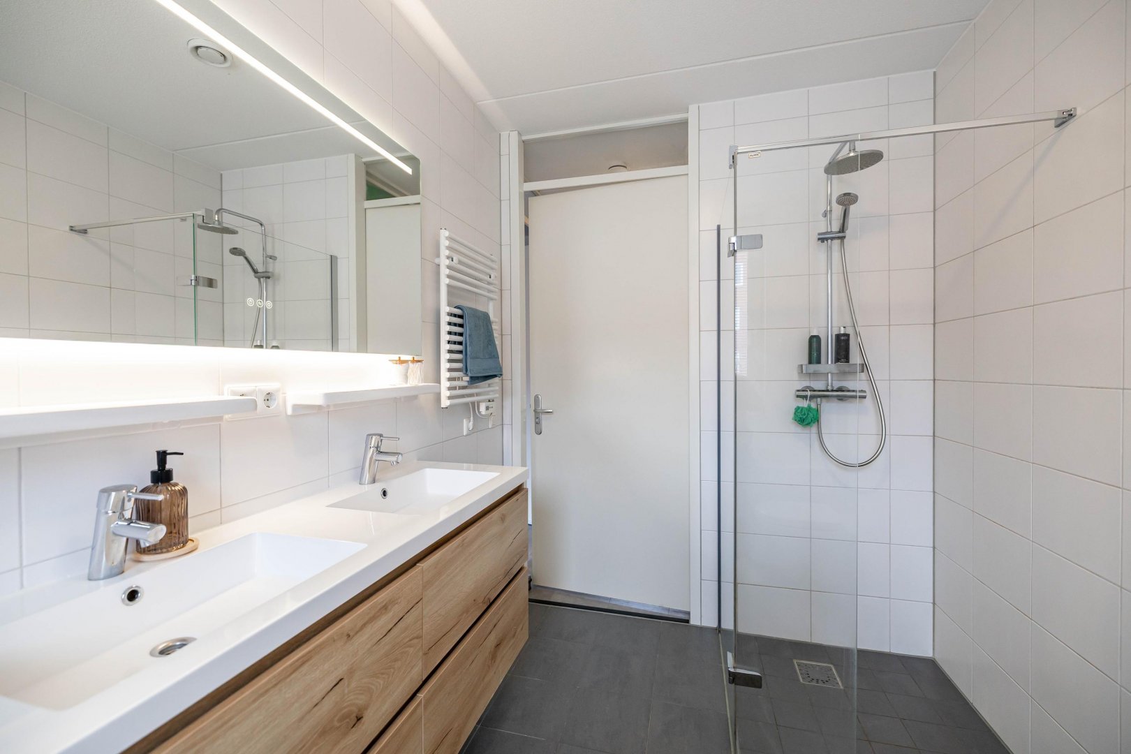 Eerste verdieping: drie slaapkamers (alle ramen die open kunnen hebben inzet horren), ruime badkamer met inloopdouche (+regendouche), dubbel wastafelmeubel, ligbad, tweede toilet en handdoekradiator.