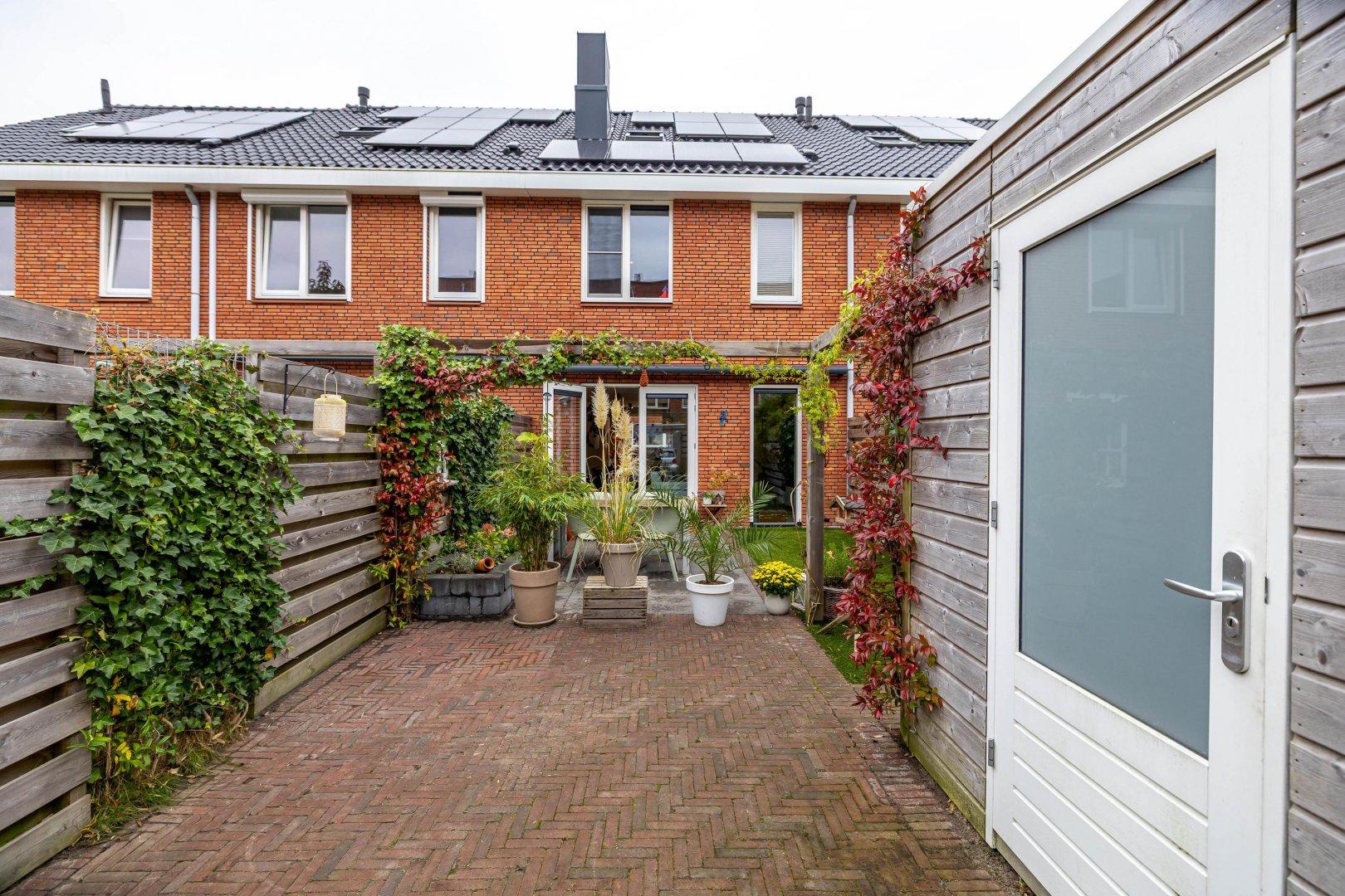 - achtertuin op het Zuidwesten met buitenkraan, houten tuinberging met elektra, elektrisch zonnescherm aan de achtergevel;