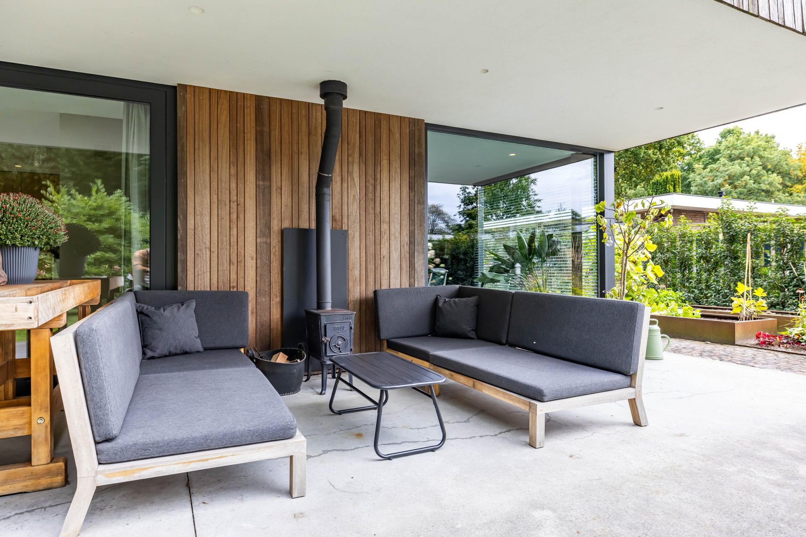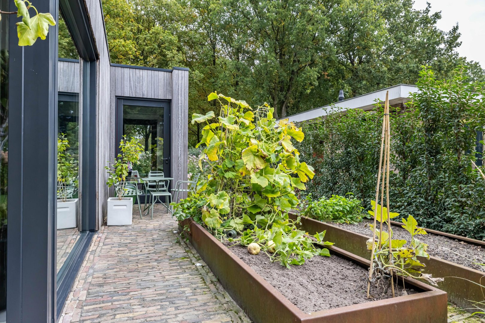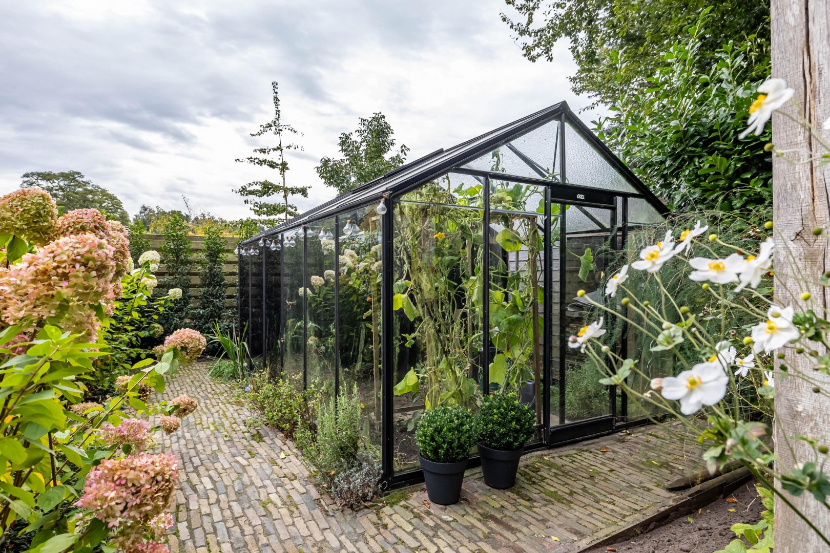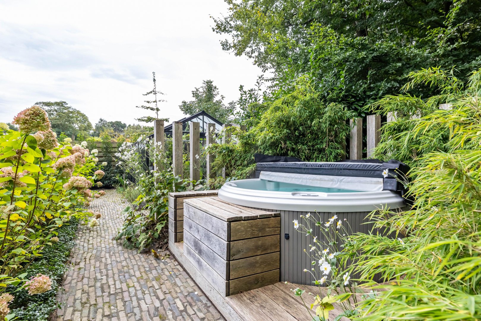 Buiten is het minstens zo bijzonder. De fraai aangelegde tuin biedt veel rust en privacy en biedt alles voor een prettig buitenleven op niveau: een jacuzzi, buitendouche, ruim terras met houtkachel en mogelijkheid voor buitenkeuken onder de overstek voor lange zomeravonden. De tuin is fraai aangelegd en biedt naast veel groen ook een moestuin en een kas.