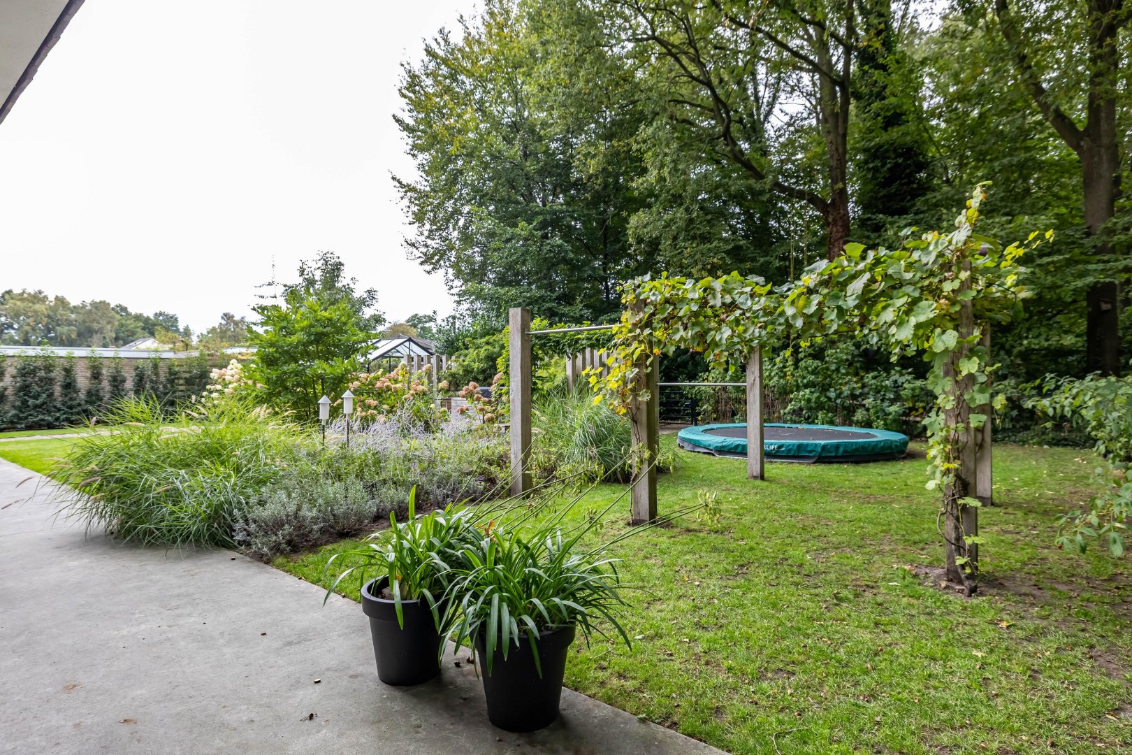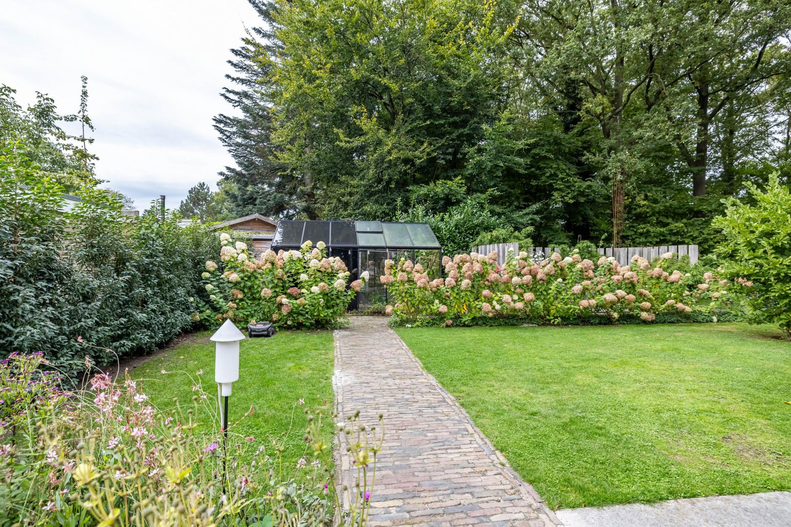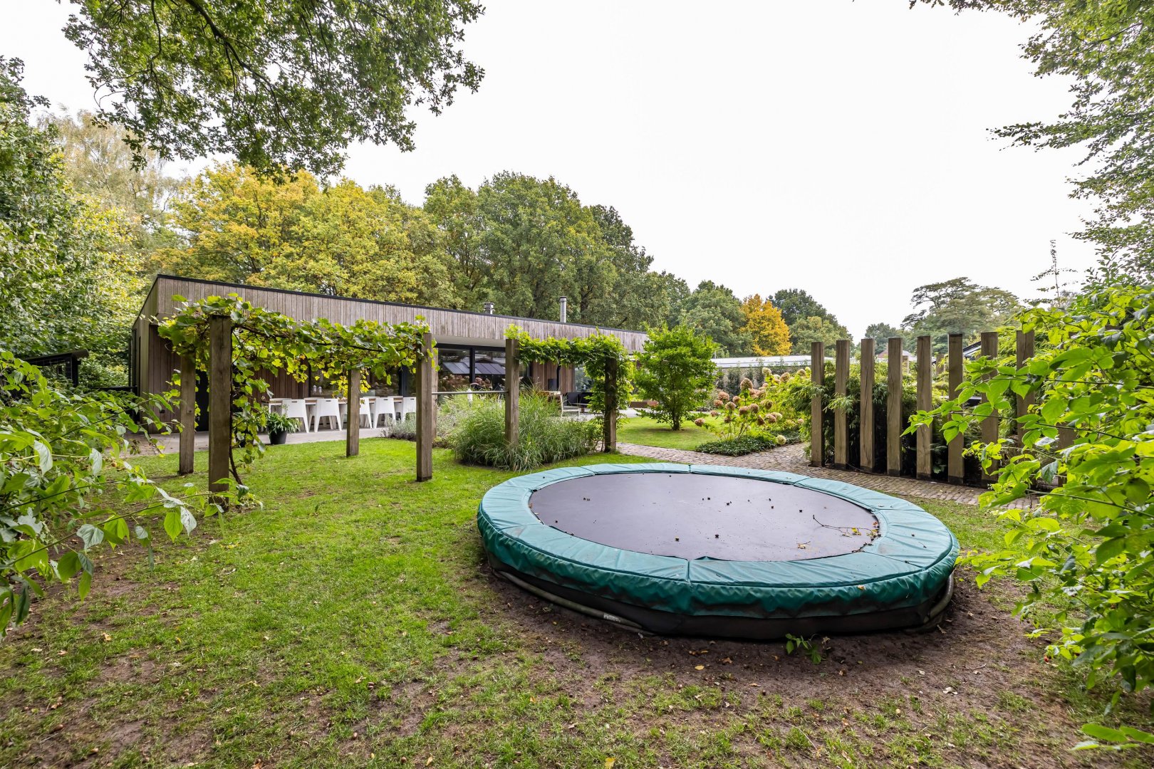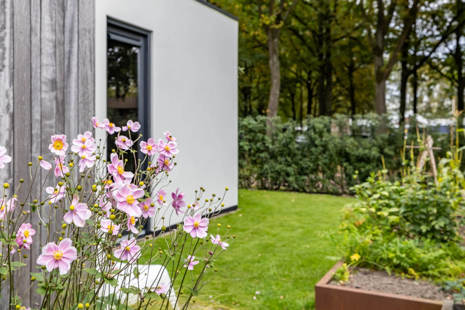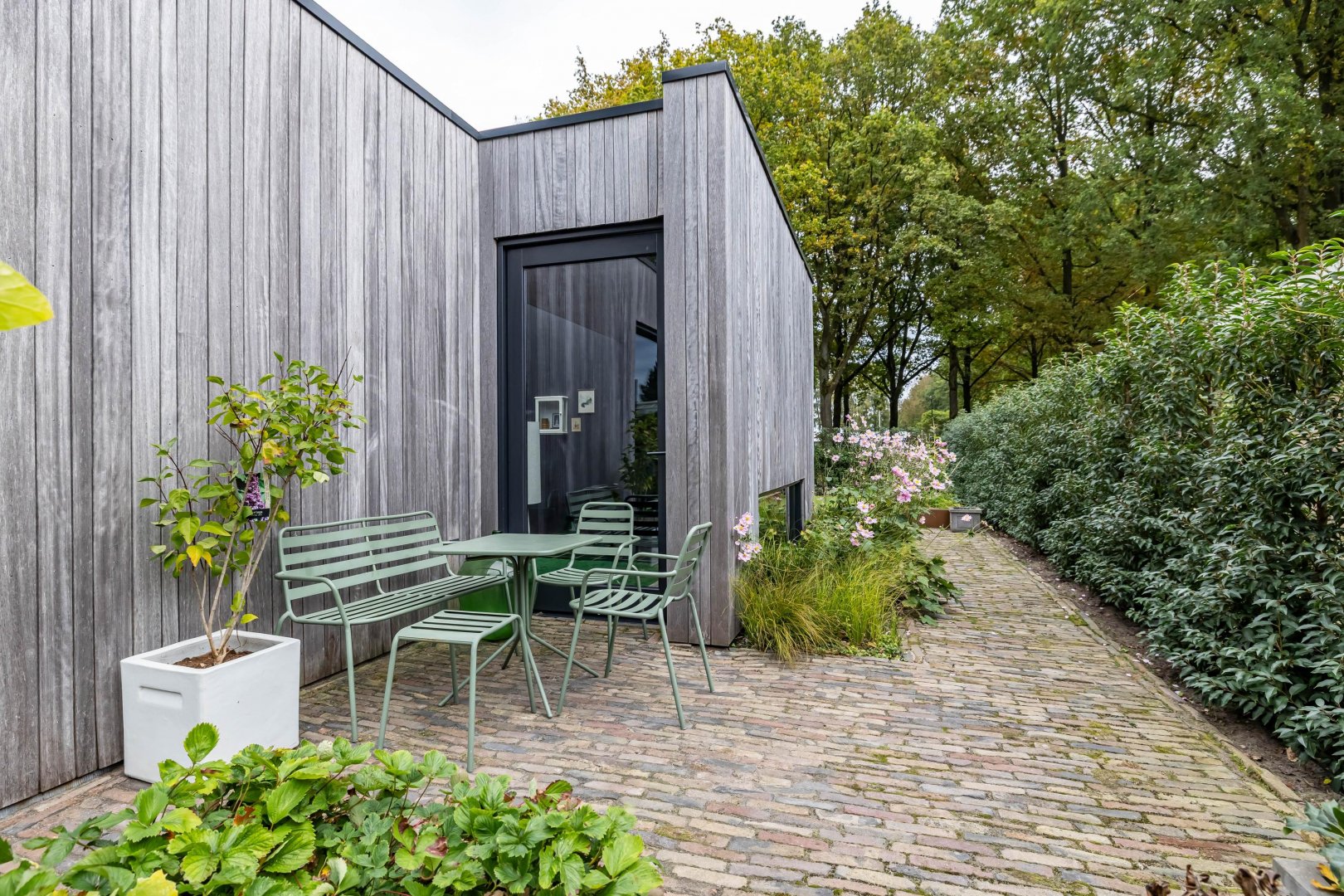 Buiten is het minstens zo bijzonder. De fraai aangelegde tuin biedt veel rust en privacy en biedt alles voor een prettig buitenleven op niveau: een jacuzzi, buitendouche, ruim terras met houtkachel en mogelijkheid voor buitenkeuken onder de overstek voor lange zomeravonden. De tuin is fraai aangelegd en biedt naast veel groen ook een moestuin en een kas.