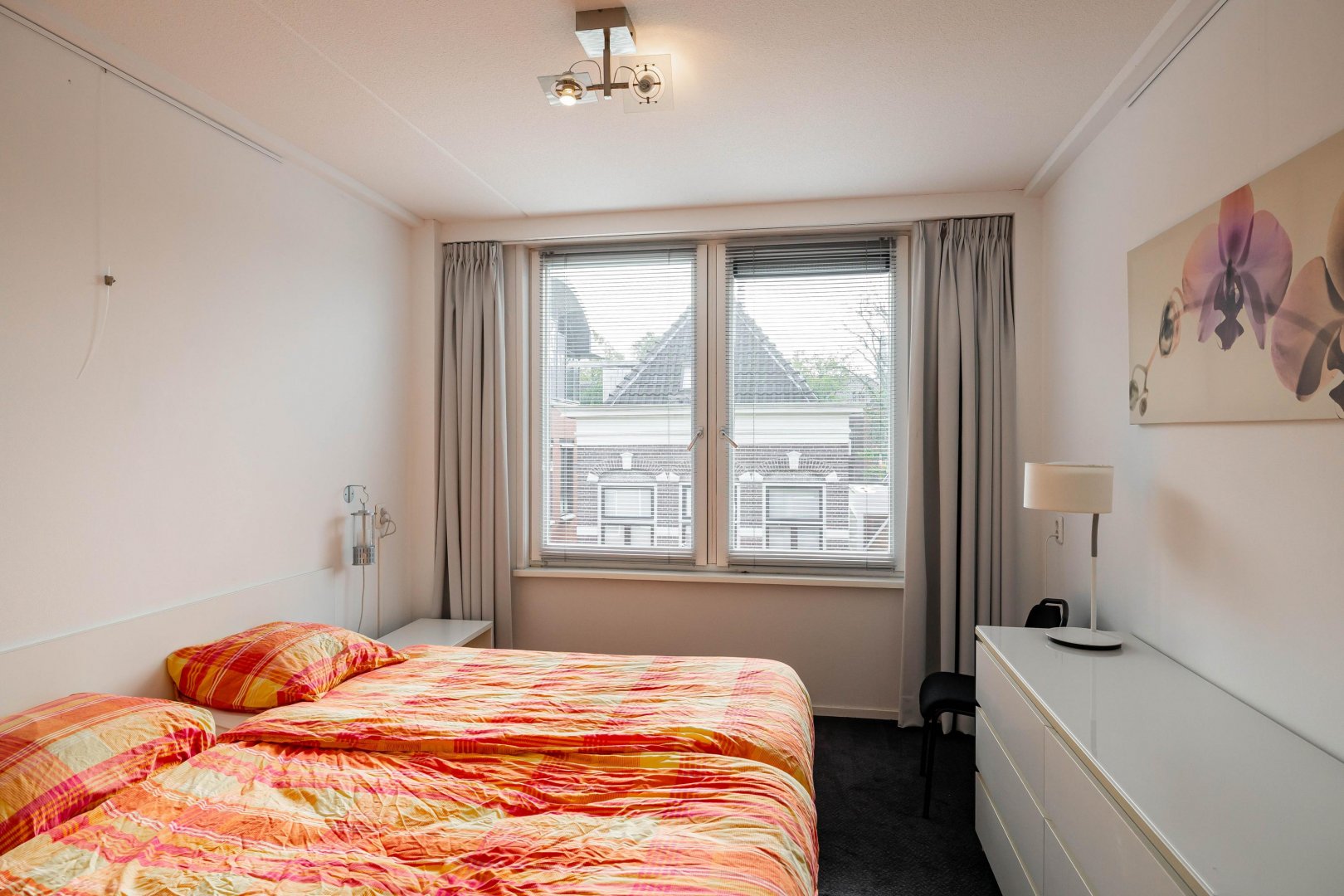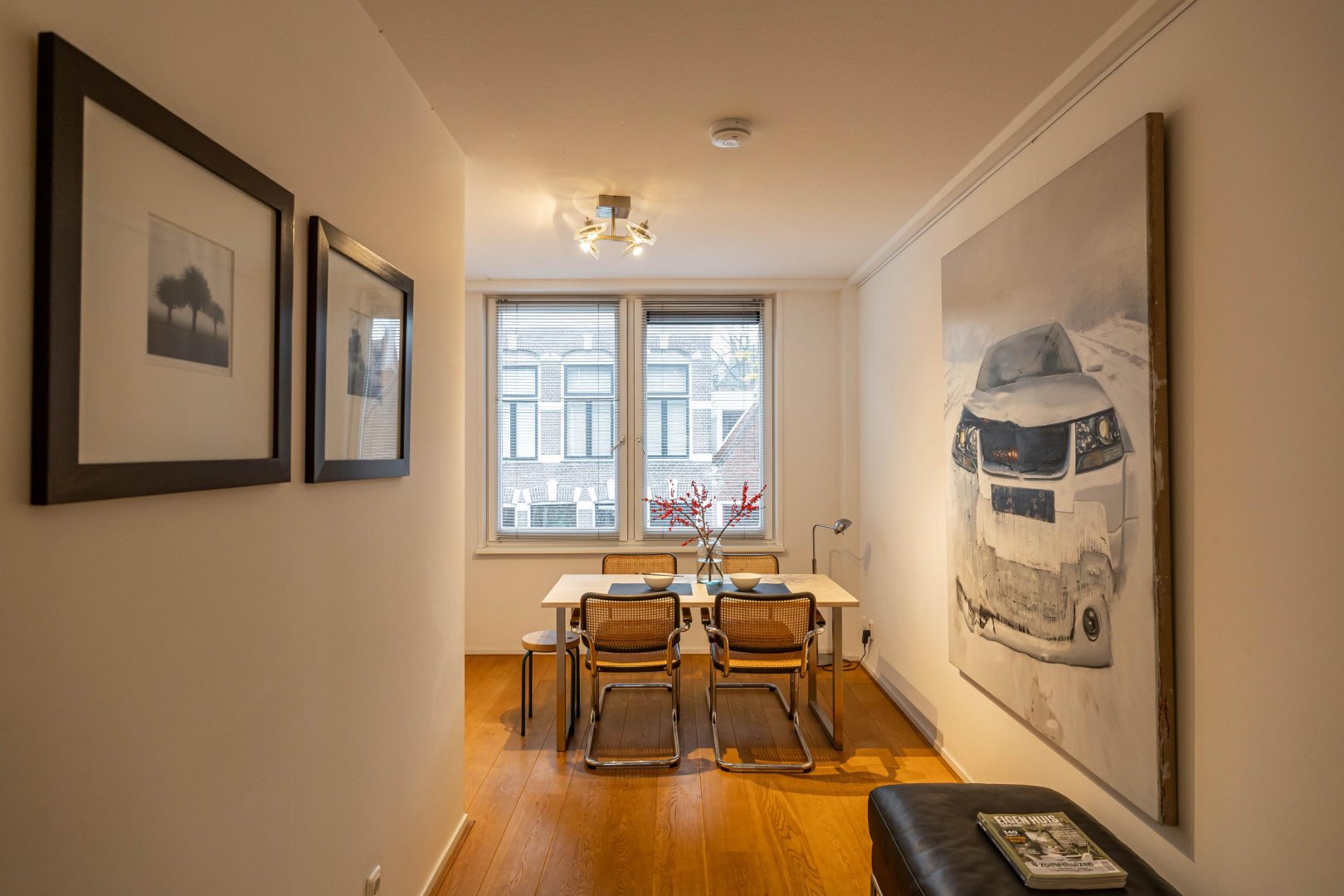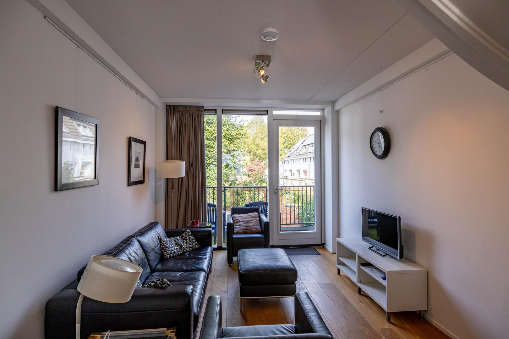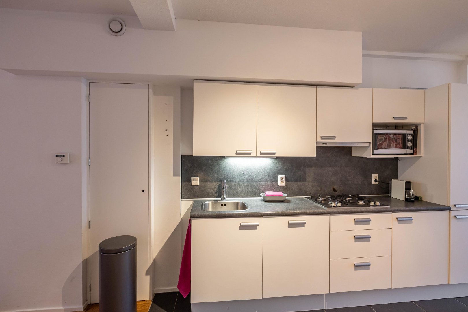 Op de 1e etage bevindt zich de speelse woonkamer met een voor- en achterkamer. De moderne keuken is in het midden van deze twee ruimtes geplaatst en is in lichte kleurstelling uitgevoerd. Aan de achterzijde van de zit- dan wel eetkeuken is er een fijn balkon dat weids uitzicht biedt op de tuin van een aangelegen hofje.