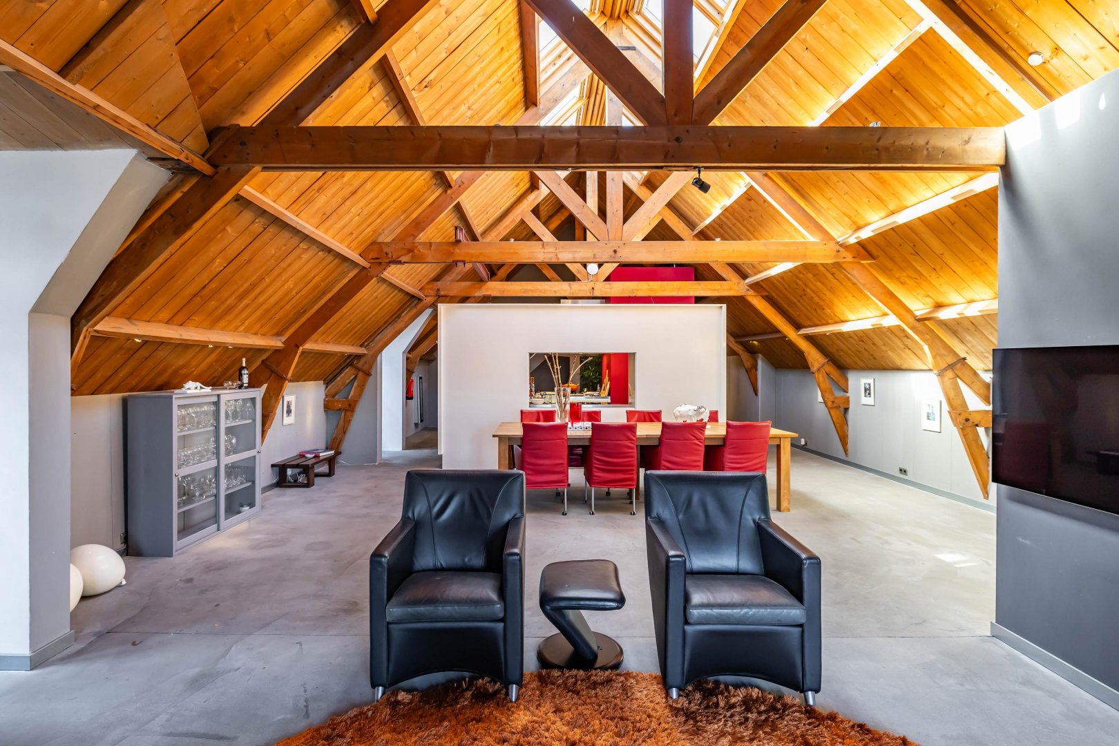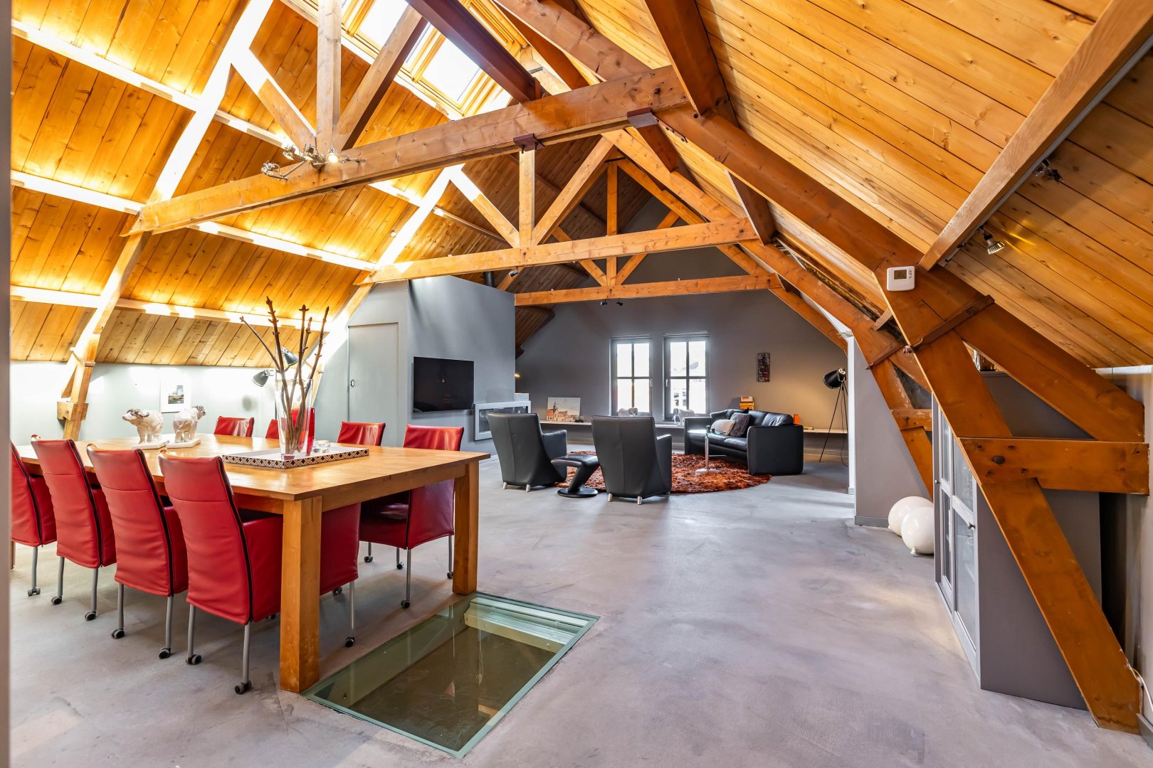 Echt een uniek aanbod met 233m2 woonoppervlak en de uitstraling van een loft onder een imposante houten kapconstructie.