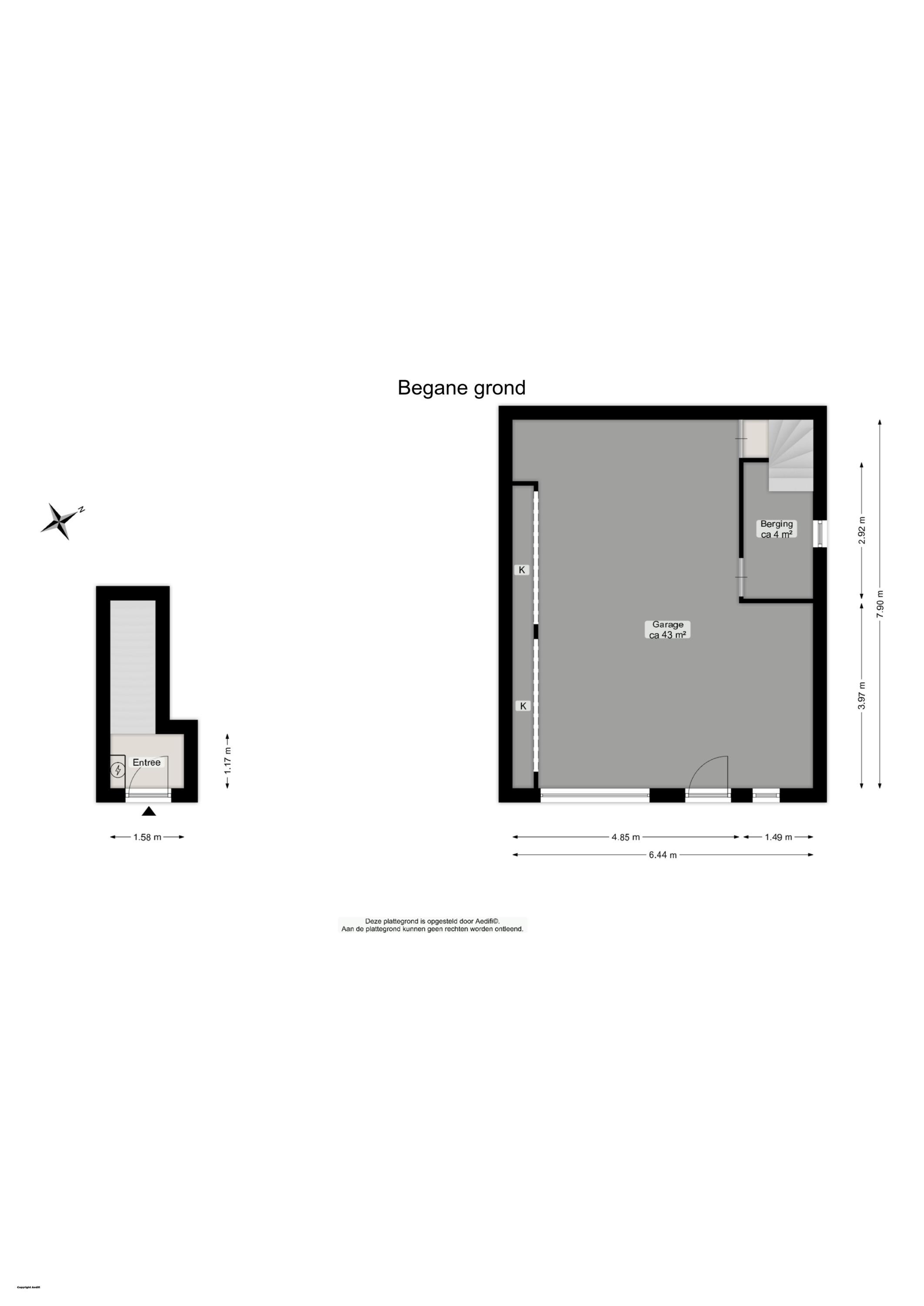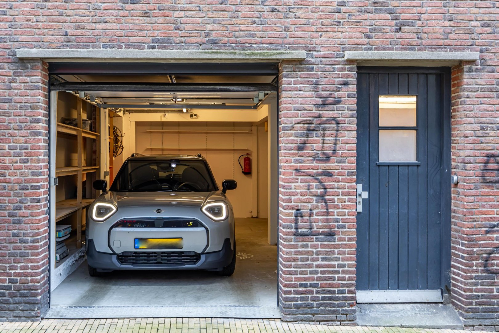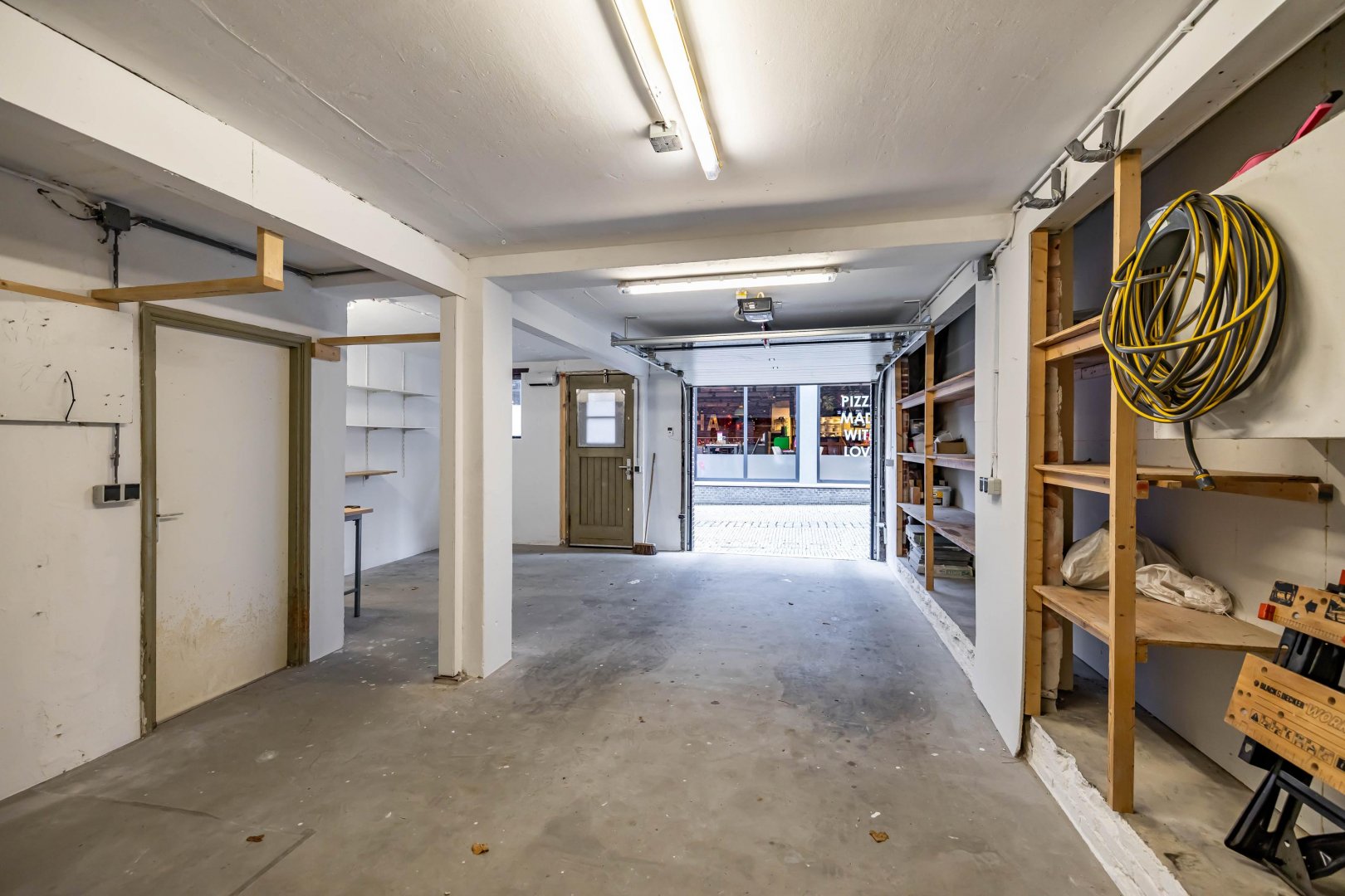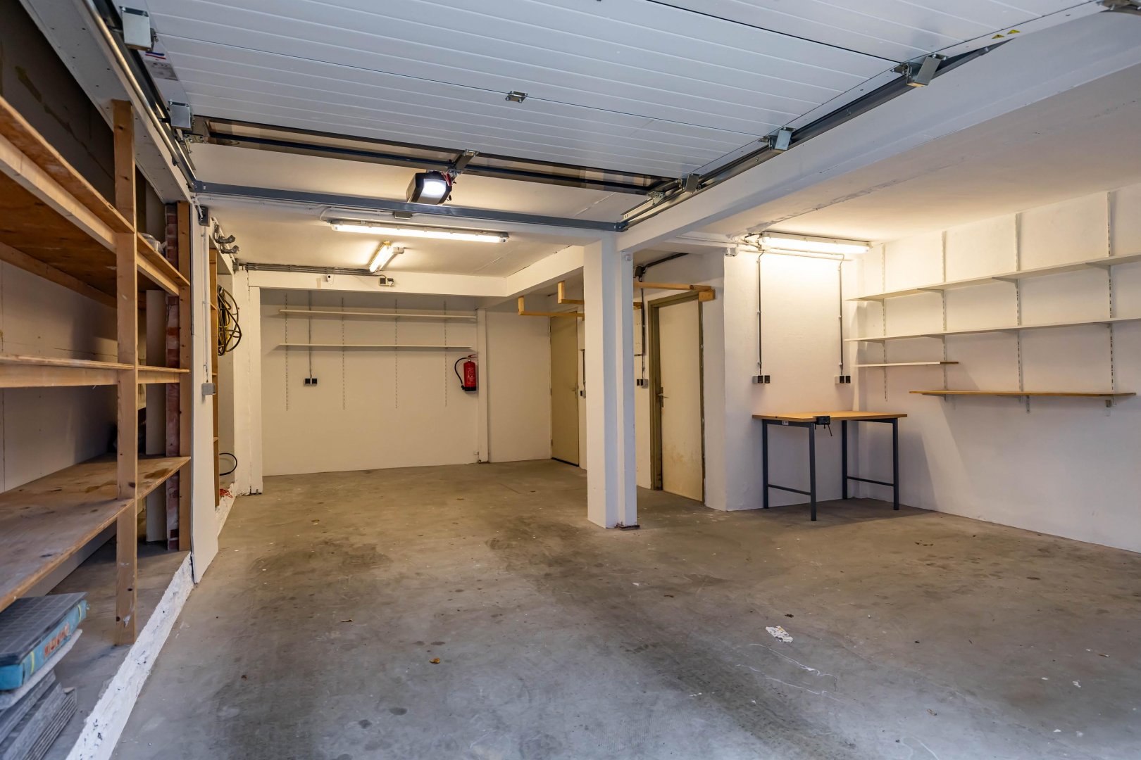 Begane grond: garage (50m2) met elektrische segmentdeur en berging, tevens trapopgang binnendoor naar het woonhuis