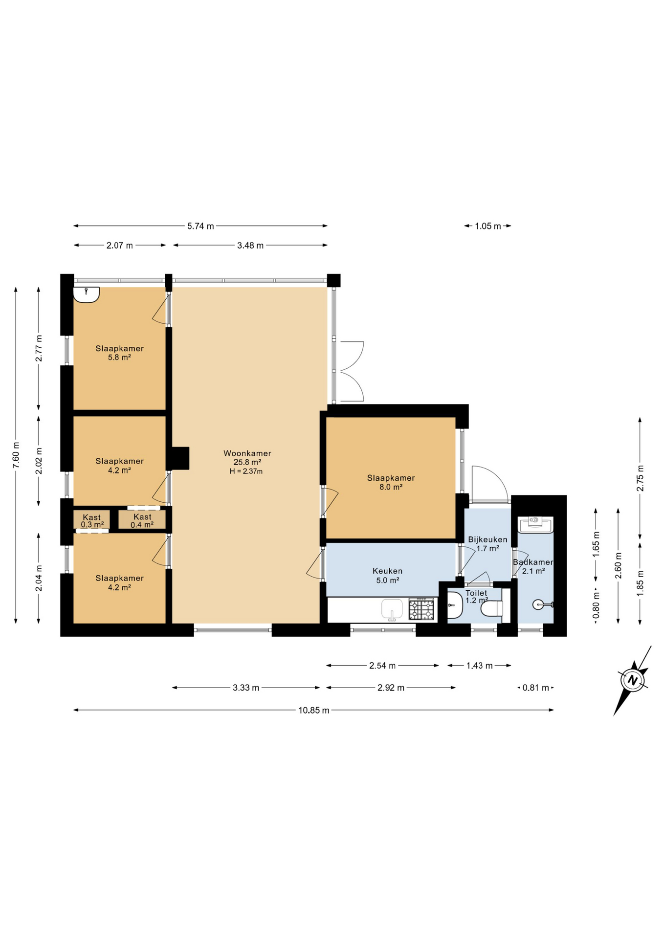 - Woonoppervlakte 63 m2, gelegen op een ruim perceel van maar liefst 820 m2